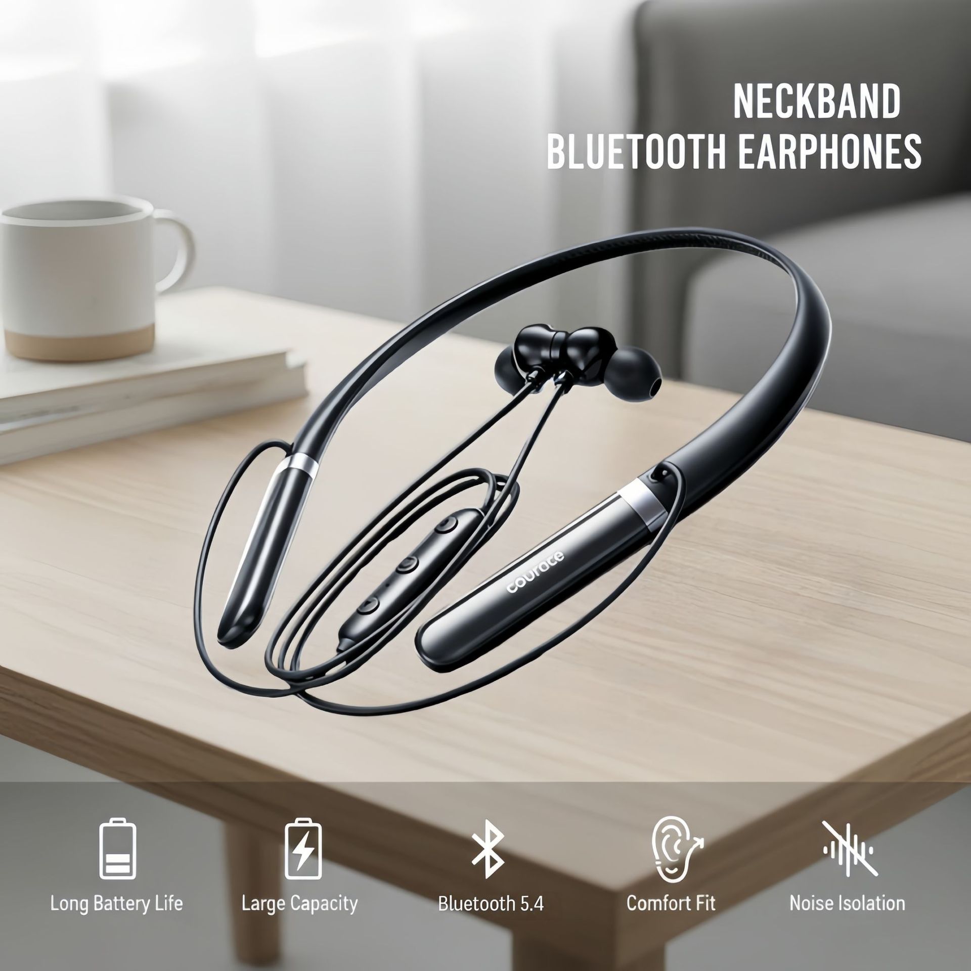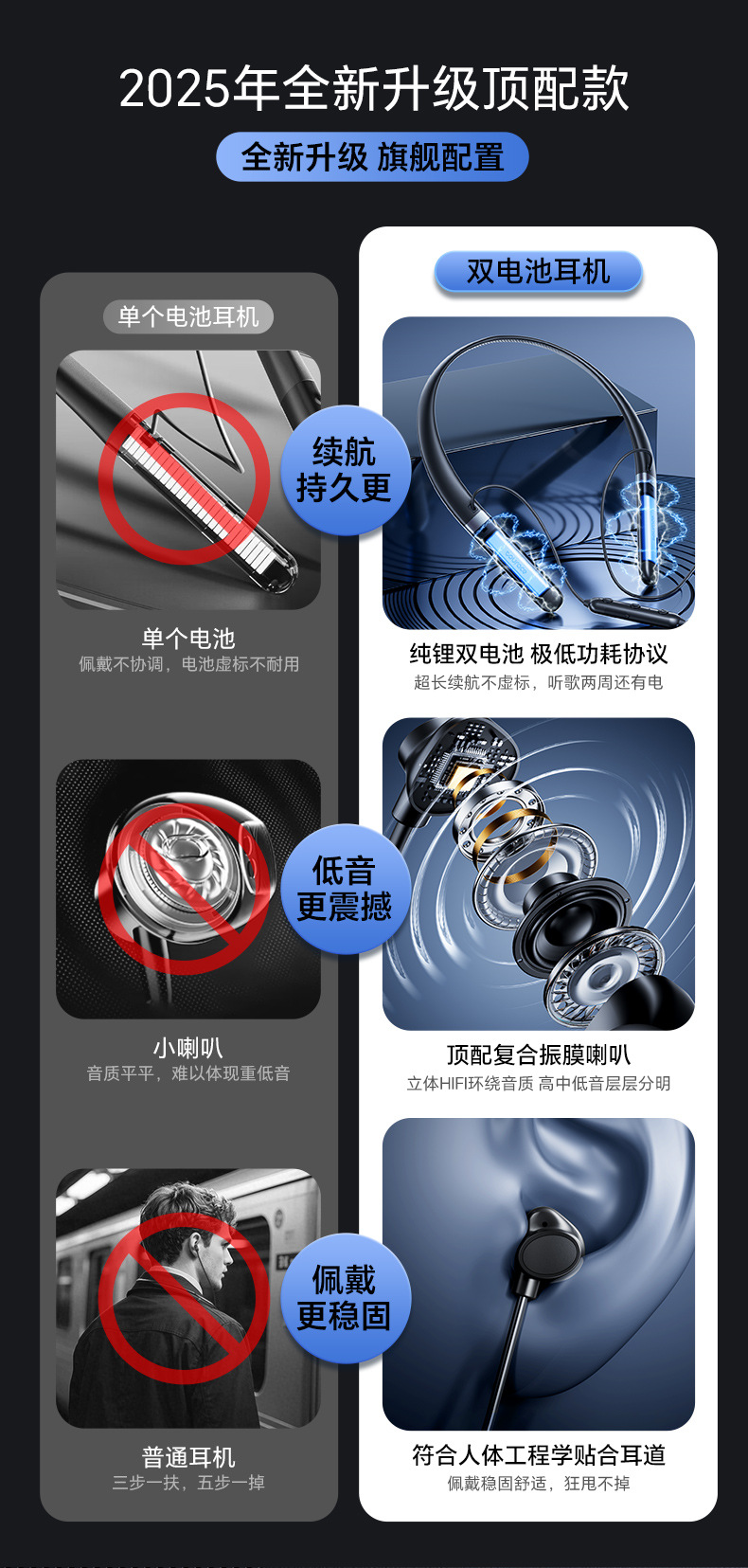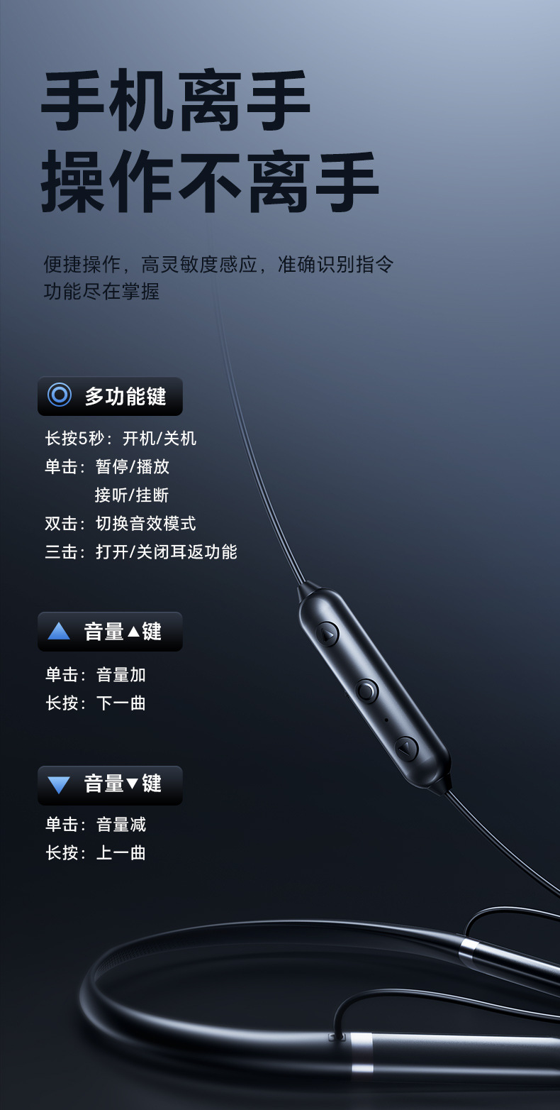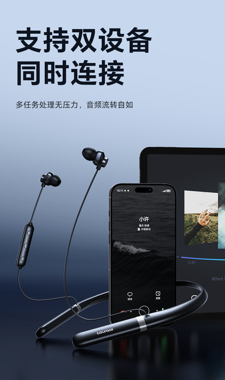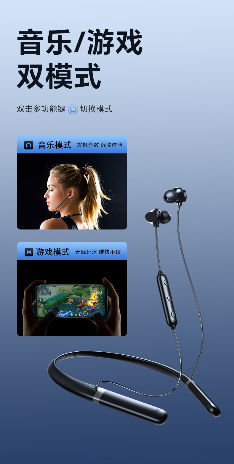 2025년 신형 목걸이형 블루투스 이어폰 스테레오 방수 스포츠 고음질 블루투스 무선 목걸이형 이어폰