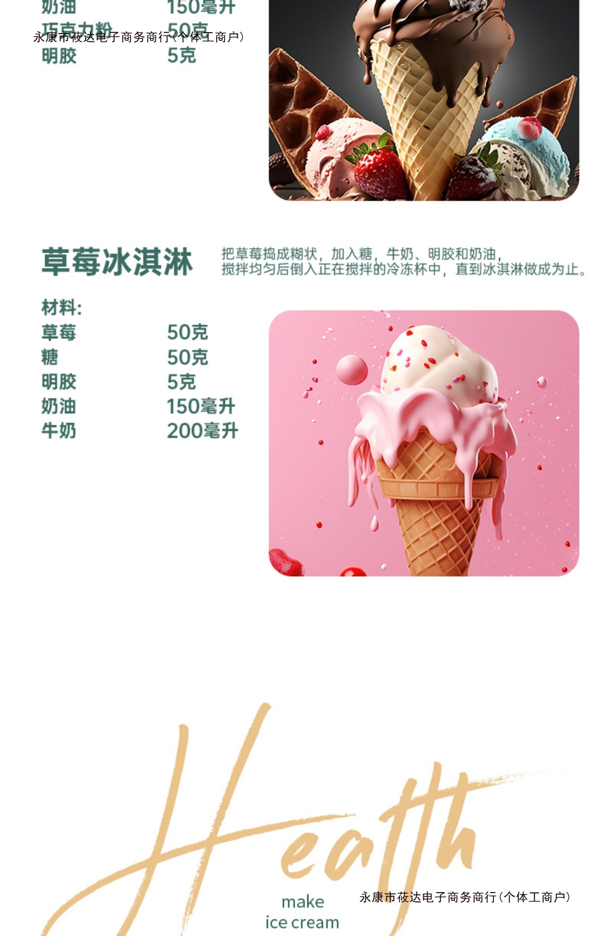 • 아이스크림 기계(패키지 3에는 아이스크림 가루 1KG가 포함되어 있으며 다양한 맛 중 하나를 선택할 수 있습니다)