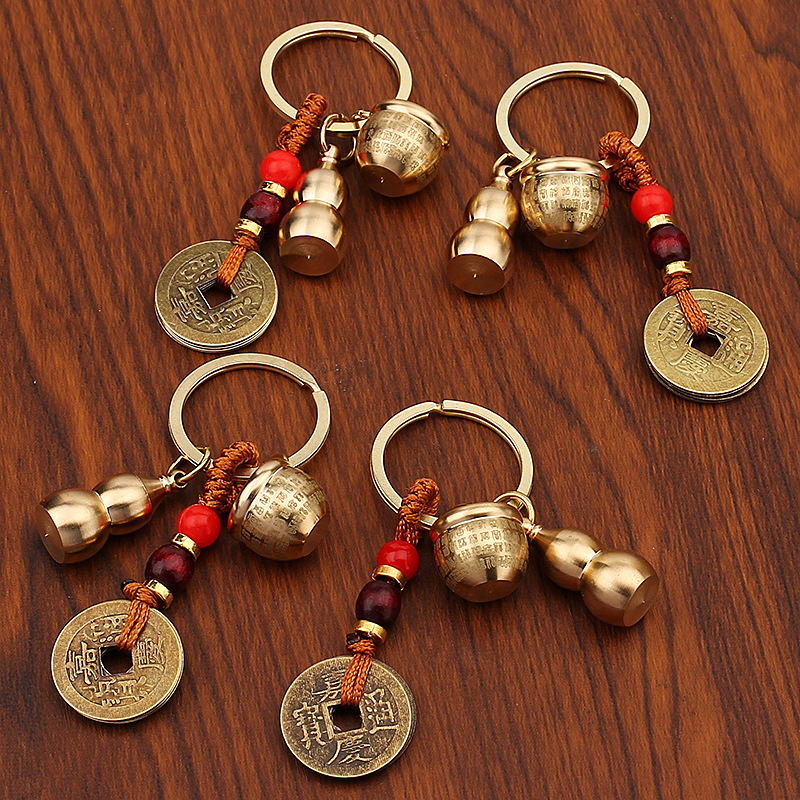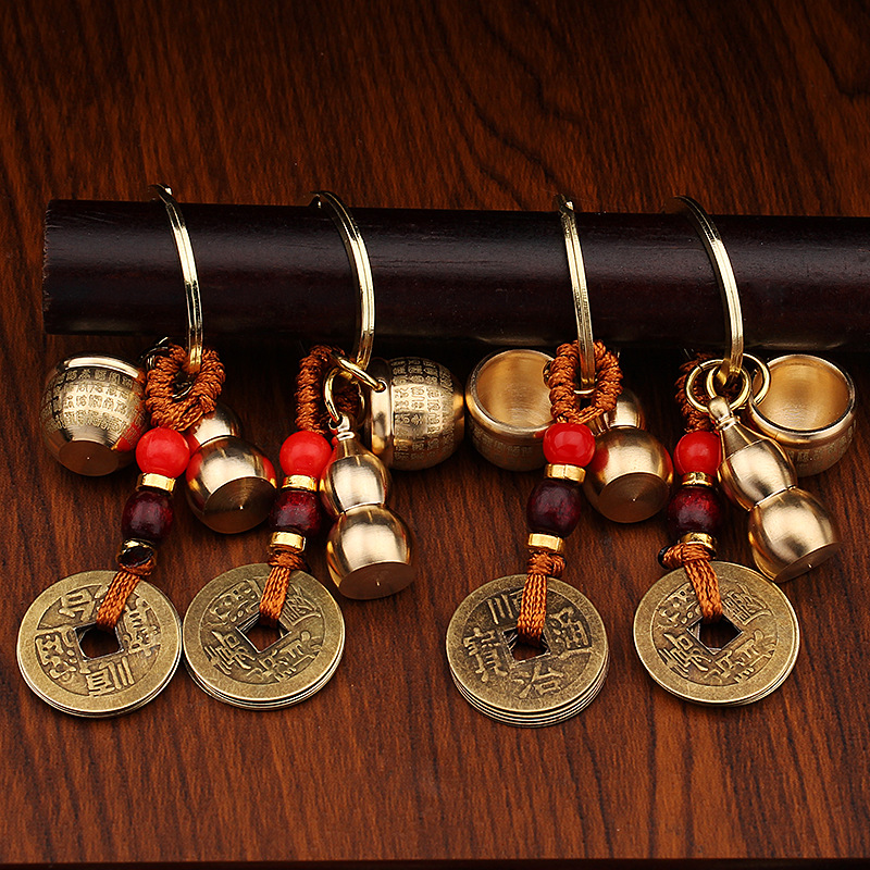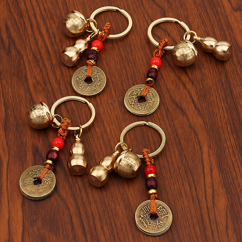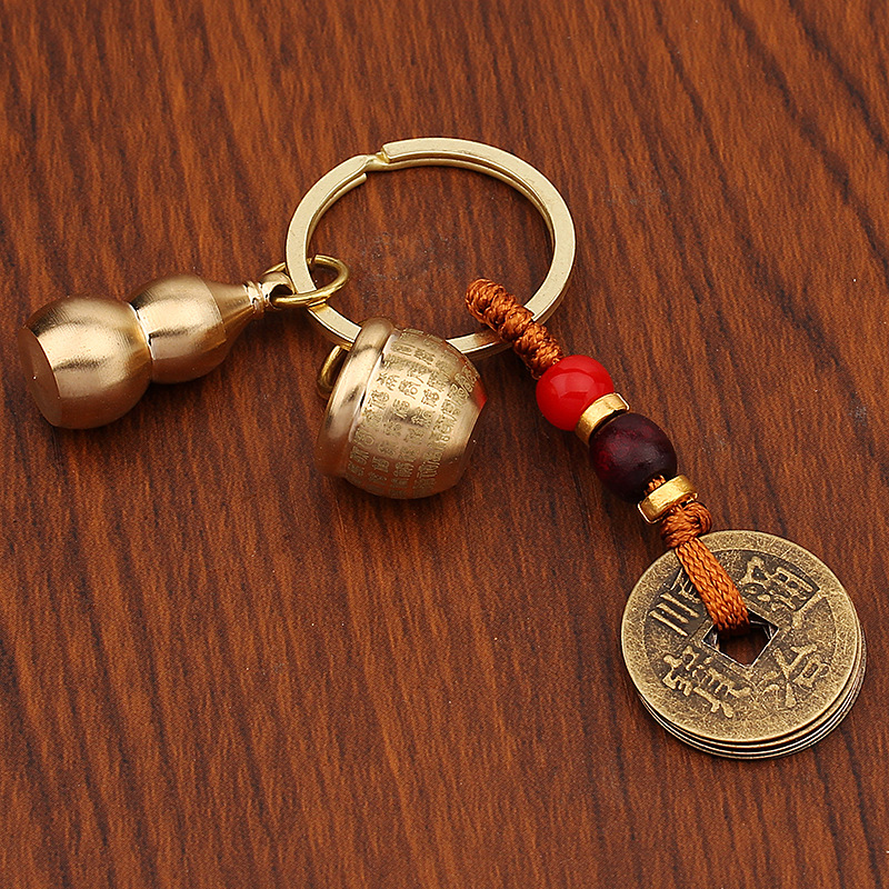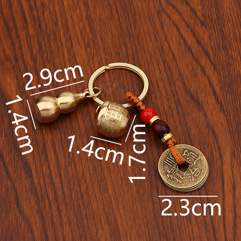 미니 파파야 실린더 황동 열쇠 고리 자동차 열쇠 펜던트 다섯 황제 돈 조롱박 풍경 명소 작은 상품 노점 도매