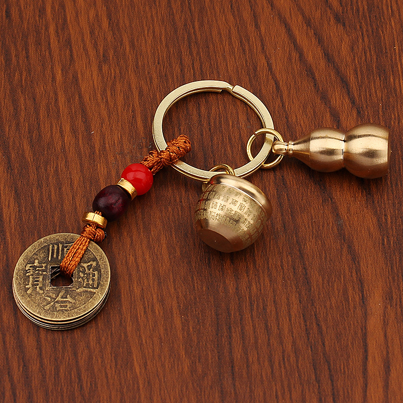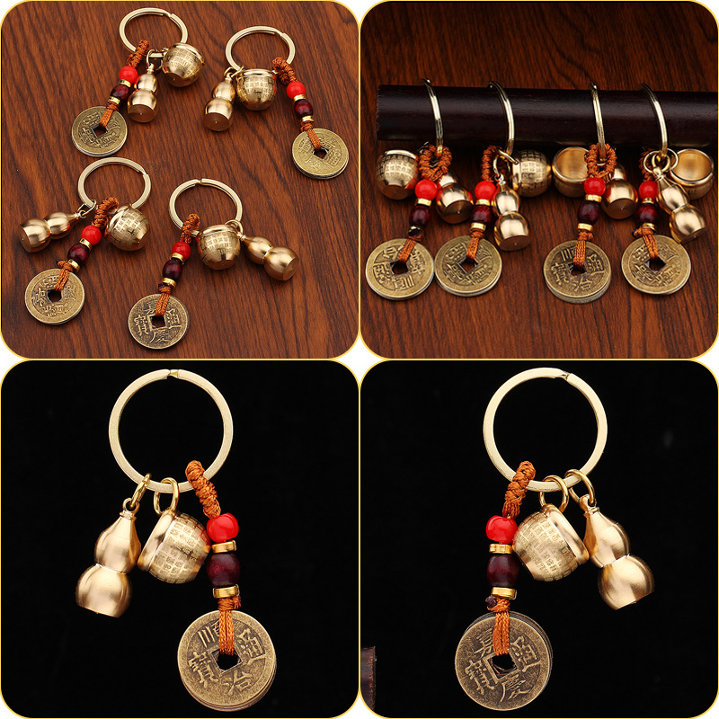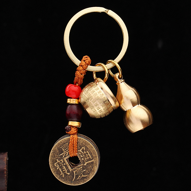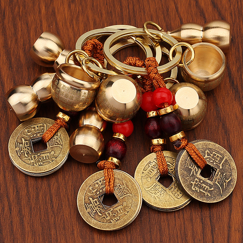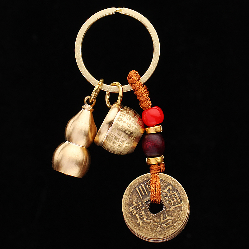 미니 파파야 실린더 황동 열쇠 고리 자동차 열쇠 펜던트 다섯 황제 돈 조롱박 풍경 명소 작은 상품 노점 도매