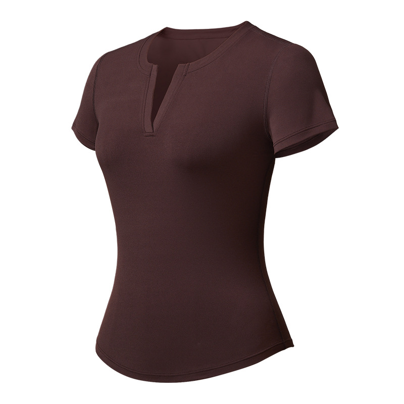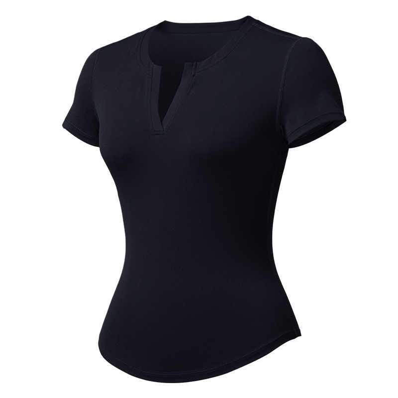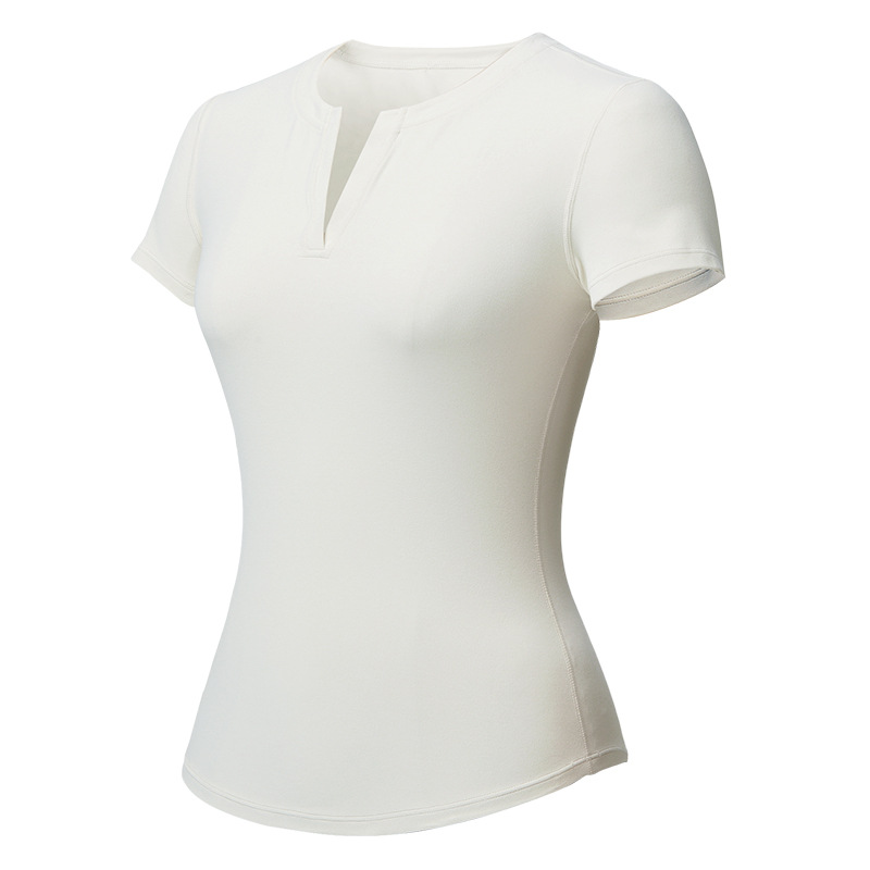스킴스 같은 스타일의 여성용 슬림핏 반팔 티셔츠, 신축성 있는 피트니스 스포츠 V넥 타이트웨어 요가복
