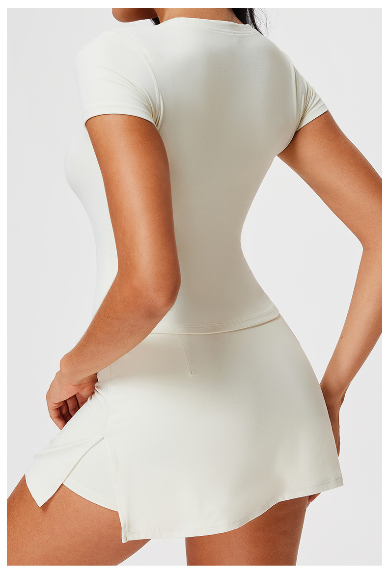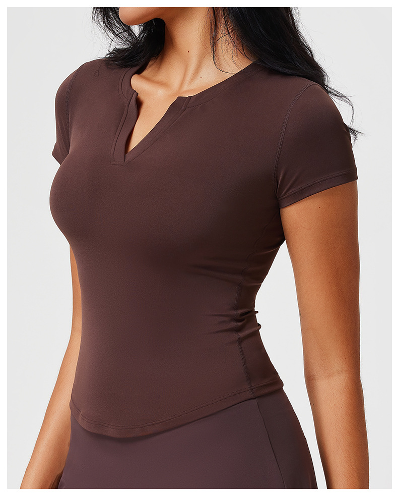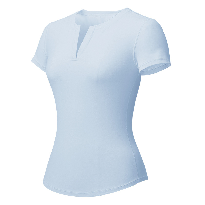 스킴스 같은 스타일의 여성용 슬림핏 반팔 티셔츠, 신축성 있는 피트니스 스포츠 V넥 타이트웨어 요가복스토어 가기