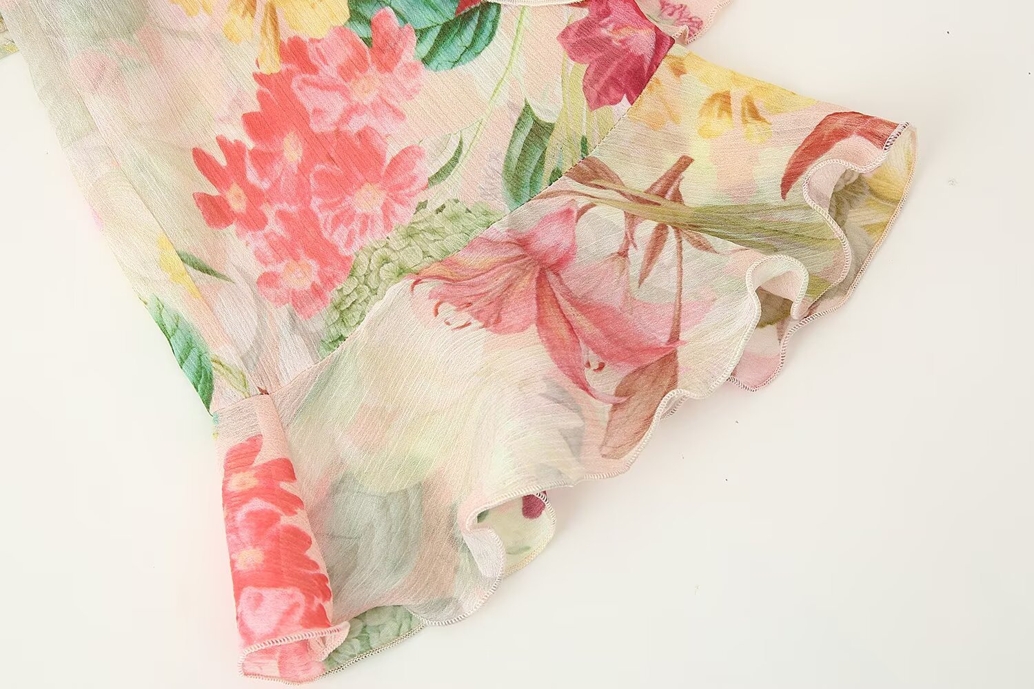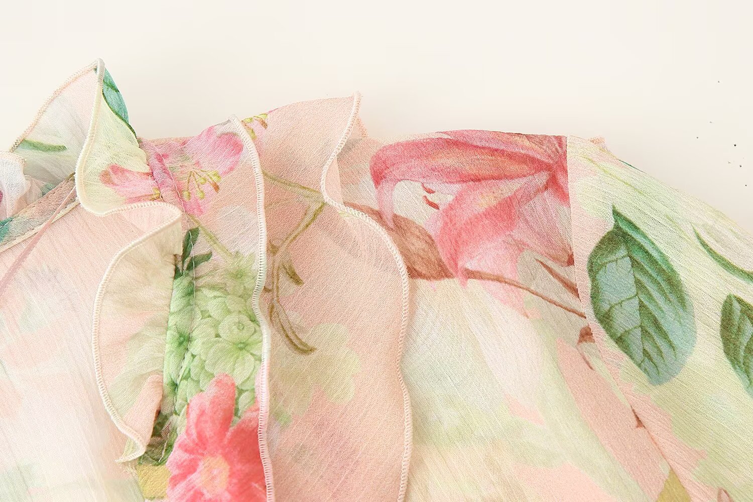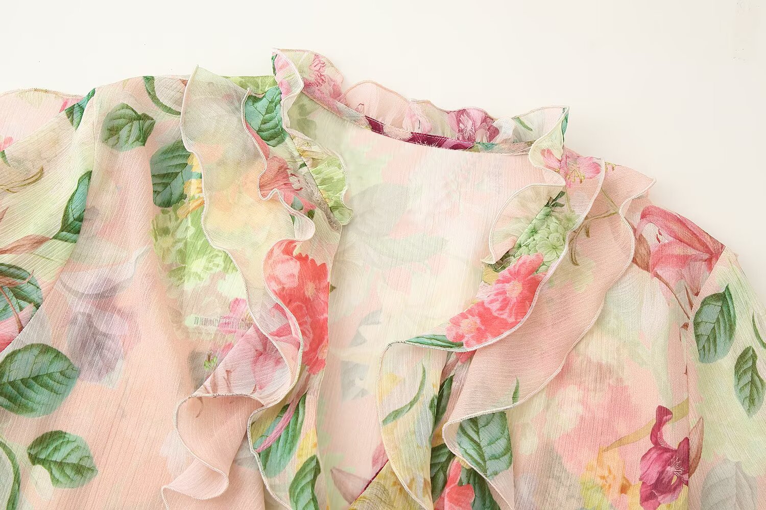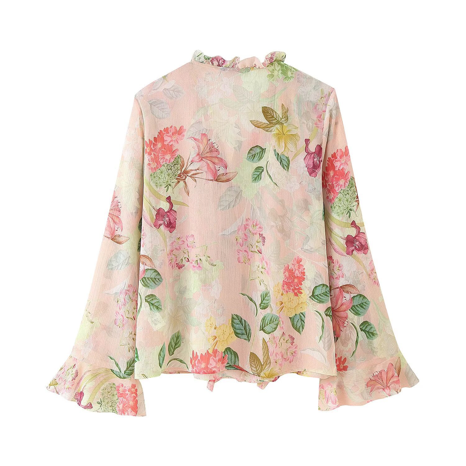 ZR 대외 무역 도매 유럽과 미국 스타일의 여성 의류 단순 꽃 인쇄 계층화 된 장식 긴팔 셔츠 3531317