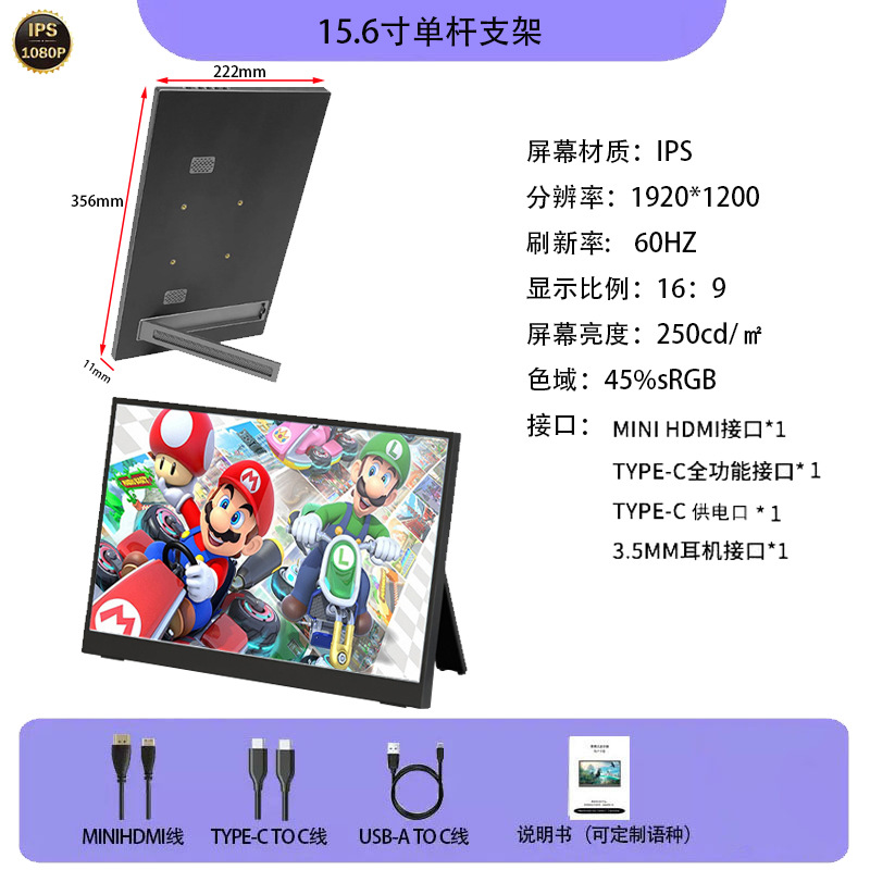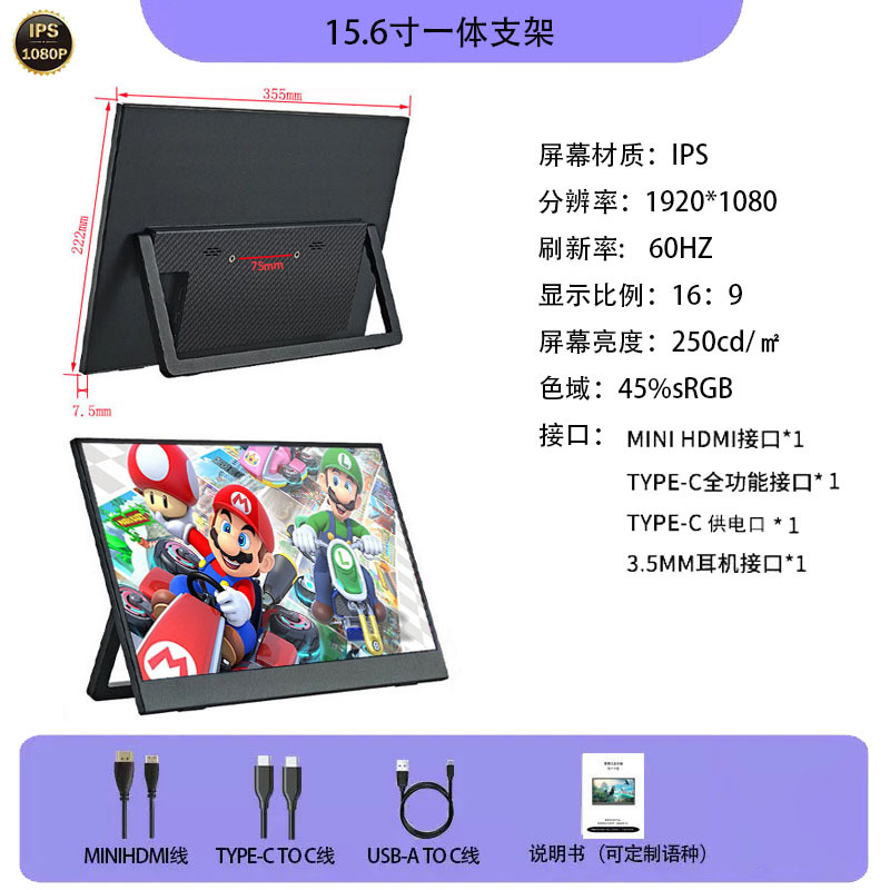 15.6inch 휴대용 모니터 안드로이드 휴대폰 PC 데스크탑 아마존 IPS 스크린 LCD