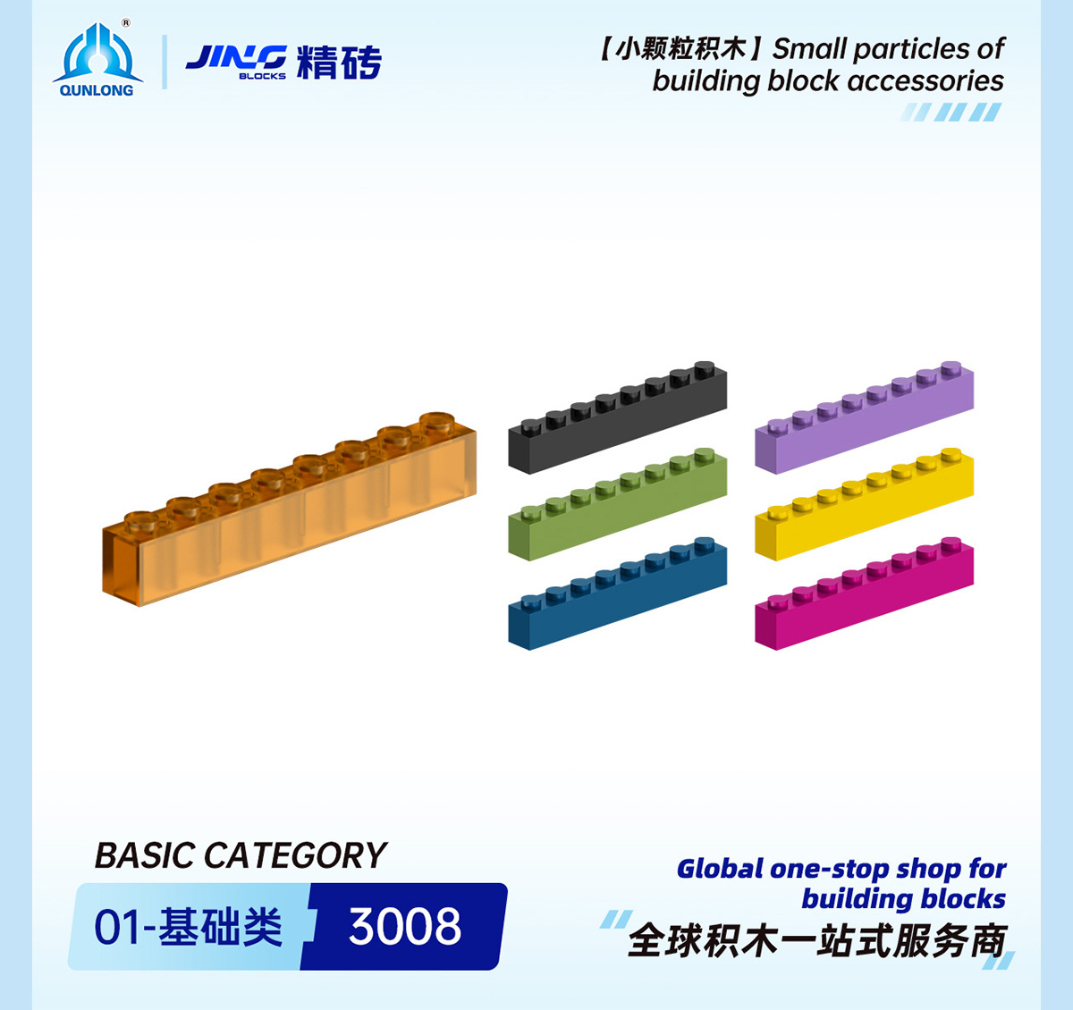 Qunlong 미세 벽돌 작은 입자 빌딩 블록 3008 국내 조립 1x8 기본 벽돌 국경 간 빌딩 블록 부품 도매스토어 가기