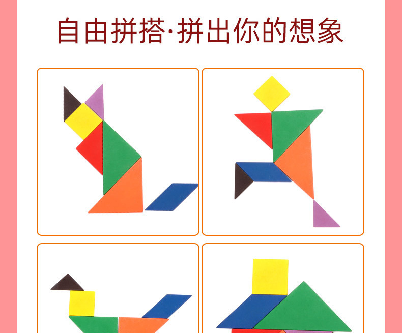 注意:几毛钱能买到的东西真的不多了!这款七巧板适合淘宝卖家做赠品使用,质量做工不完美,主要是便宜,亲们对质量不要抱过高的期望,不要买回去之后说怎么这么差!如果以没有想象中好,可以退回,运费自付!!