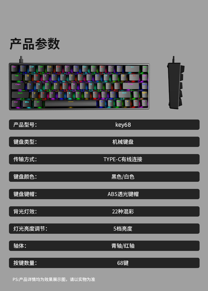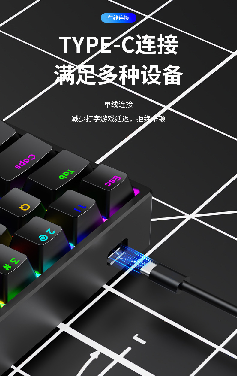 새로운 유선 플러그인 기계식 소형 키보드 녹색 및 빨간색 축 게임 사무실 비즈니스 미니 홈 휴대용스토어 가기