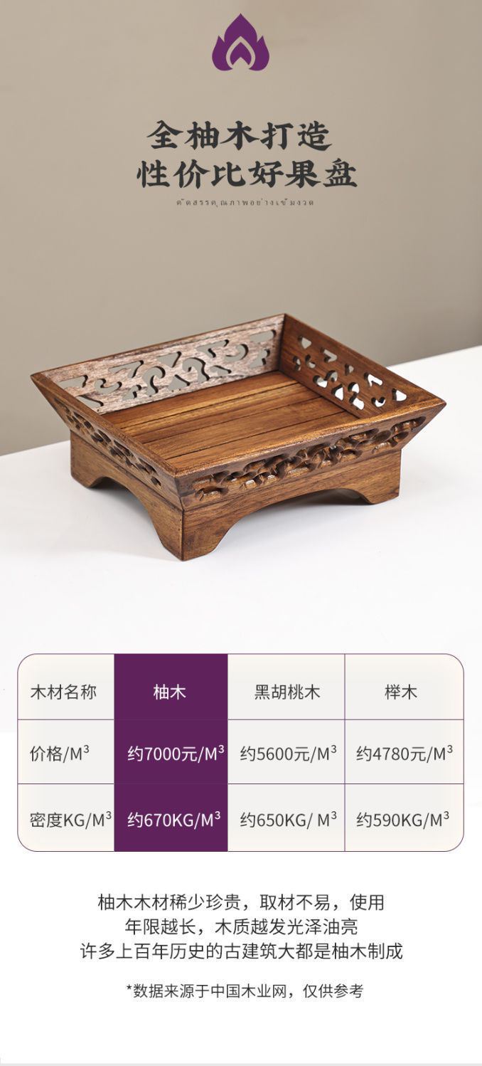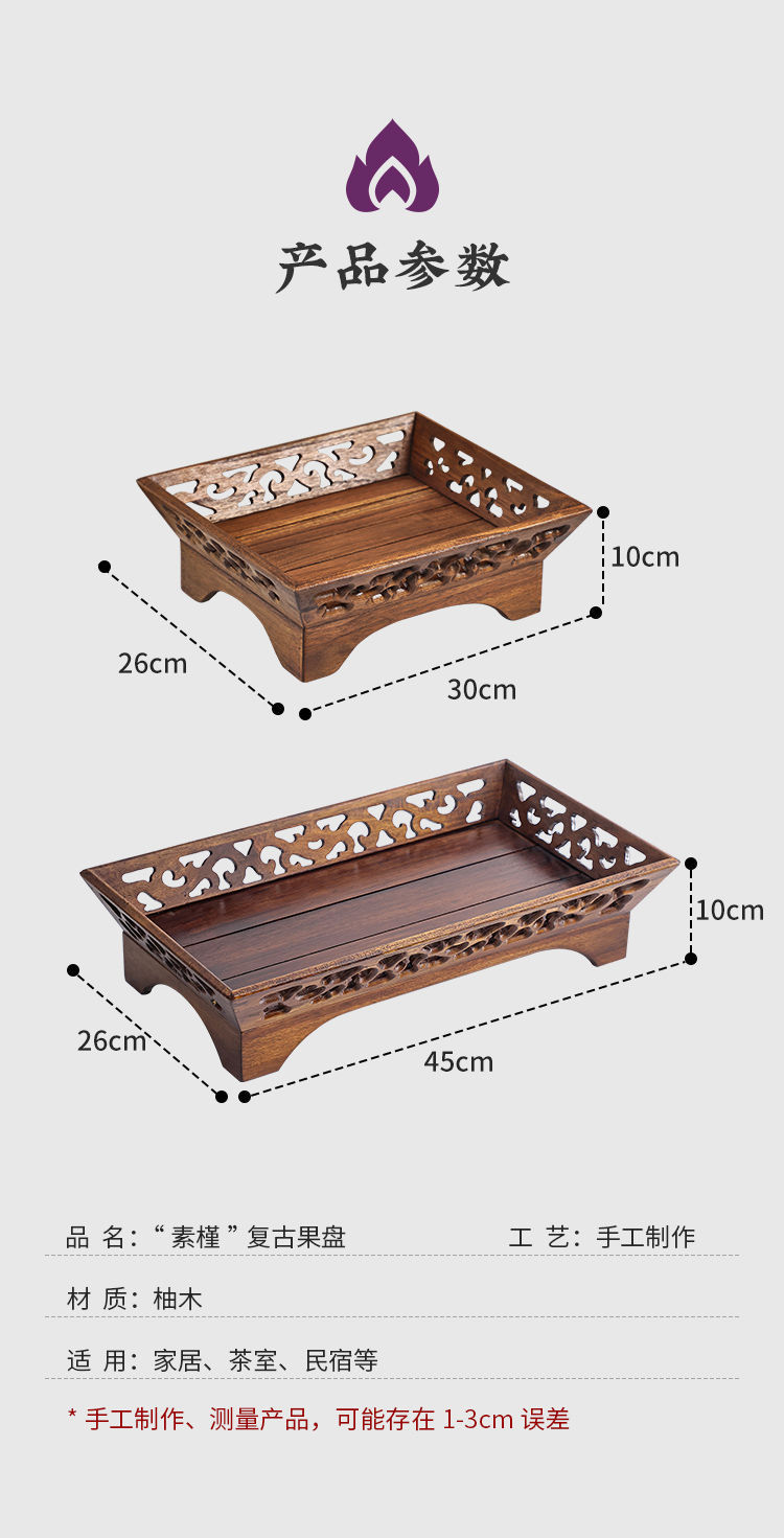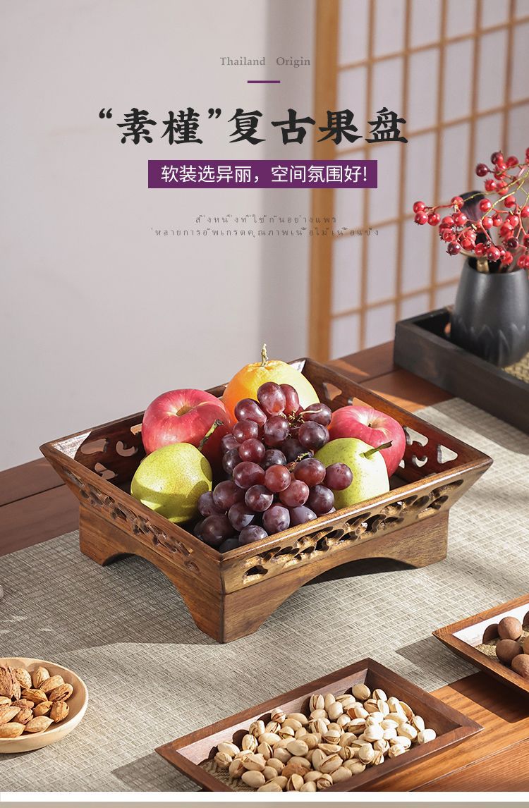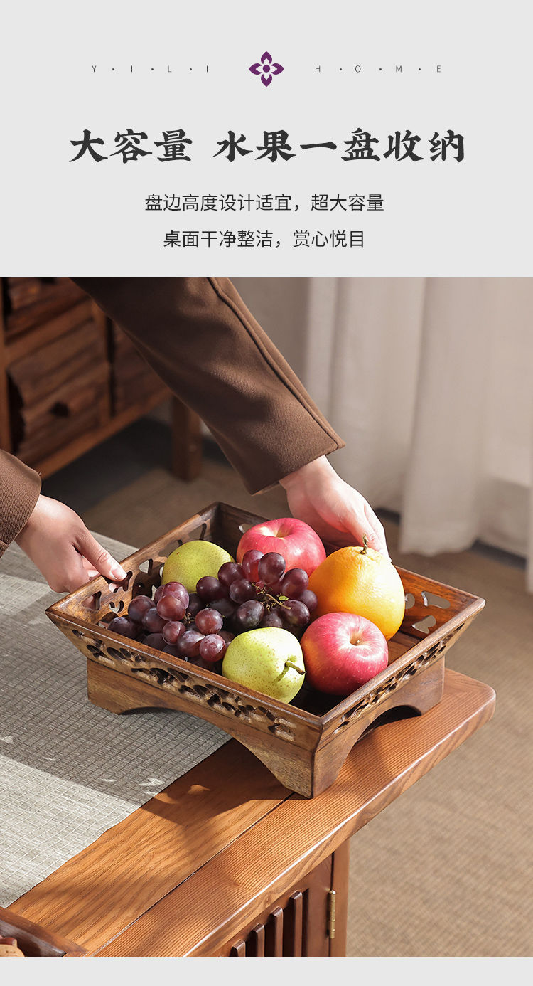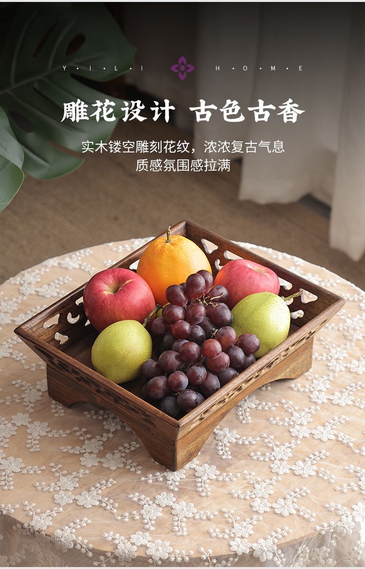Yili 홈 커피 테이블 단단한 나무 과일 냄비 중국 말린 과일 플레이트 빈티지 과일 플레이트 거실 상급 과일 바구니 트레이