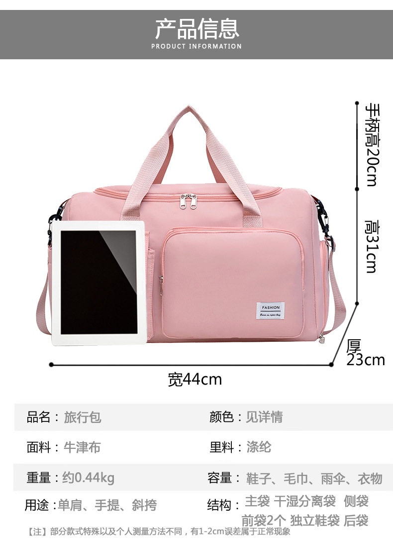 여성용 휴대용 단거리 여행 탑승 가방, 경량 대용량 출장 수납 가방, 여행 가방, 스포츠 피트니스 가방 추가