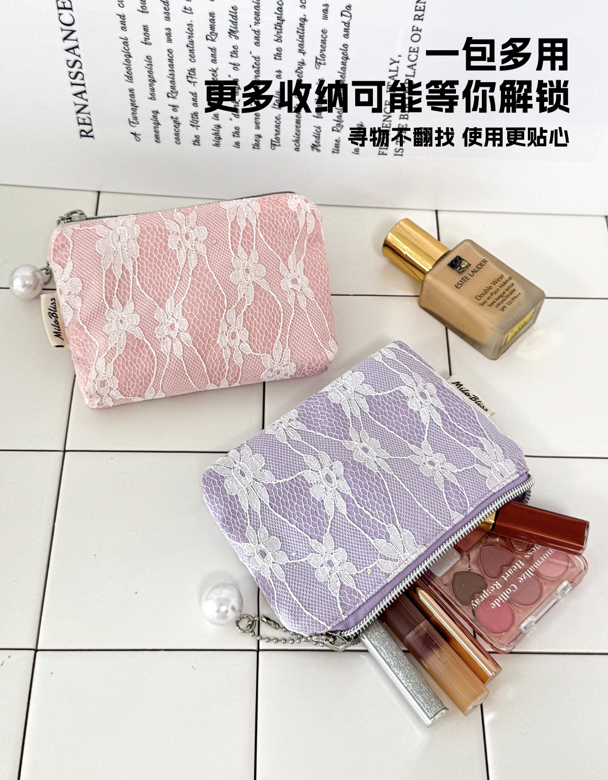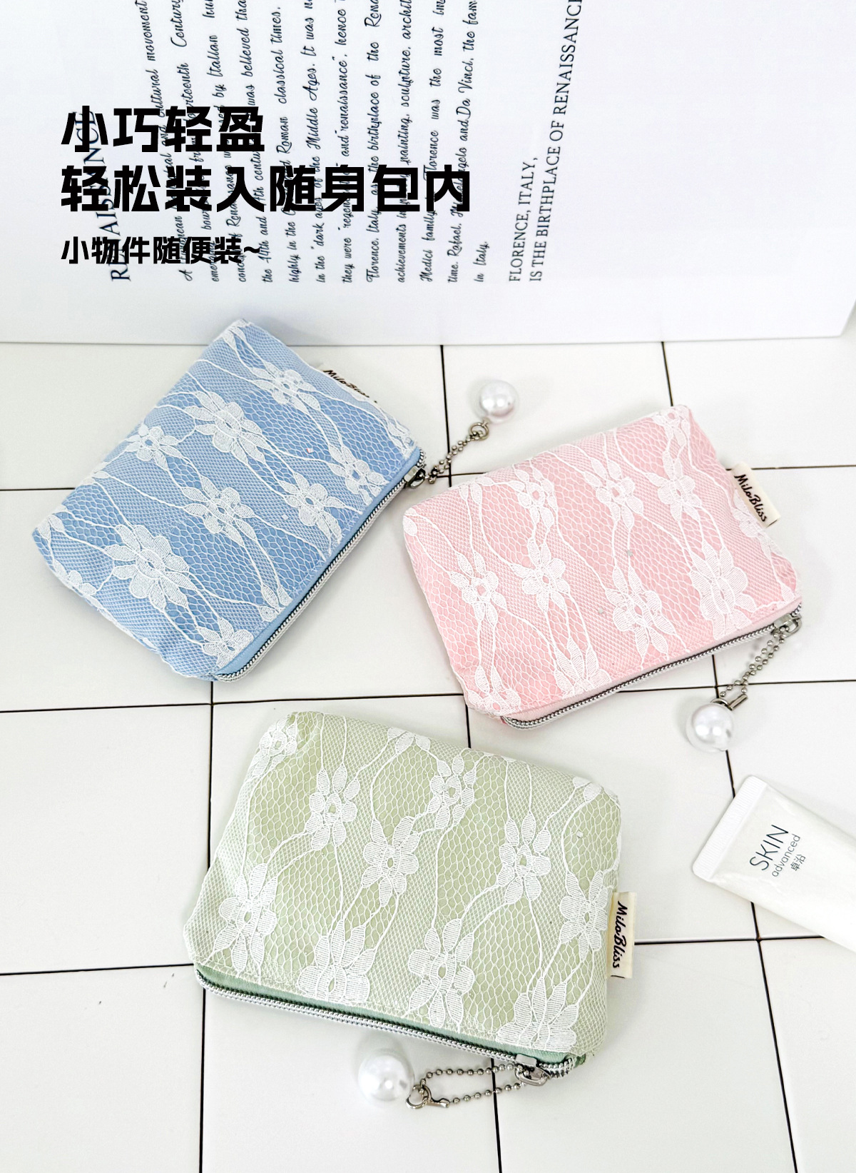 한국 스타일 우아한 자카드 레이스 동전 지갑 작은 명확한 새로운 높은 가치 여성 화장품 가방 Caux 다목적 저장 가방스토어 가기