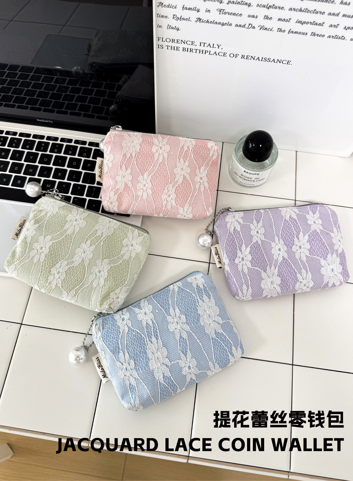 한국 스타일 우아한 자카드 레이스 동전 지갑 작은 명확한 새로운 높은 가치 여성 화장품 가방 Caux 다목적 저장 가방