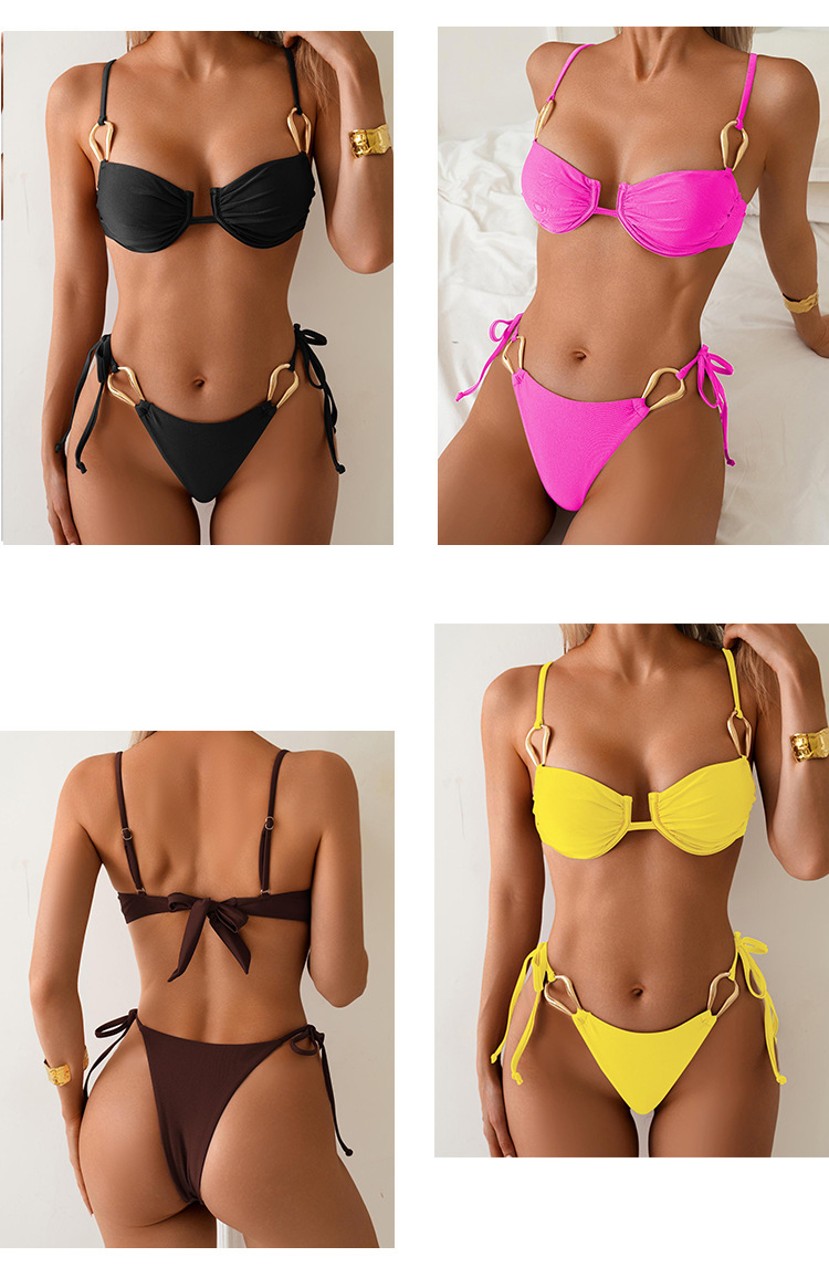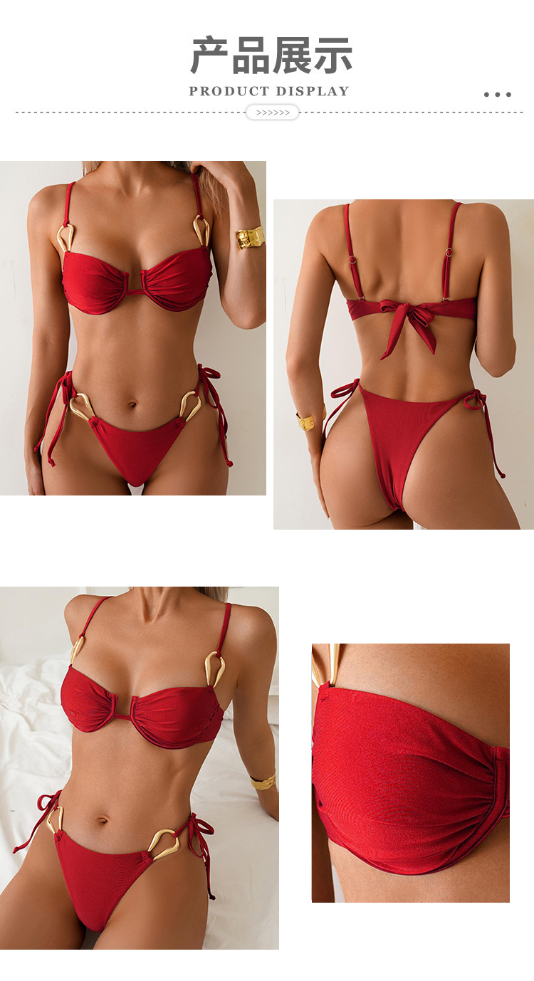 2026년 신상 솔리드 컬러 섹시 유럽 및 미국 스타일 해외 무역 주름 디자인 분리형 비키니 수영복 세트 여성용스토어 가기