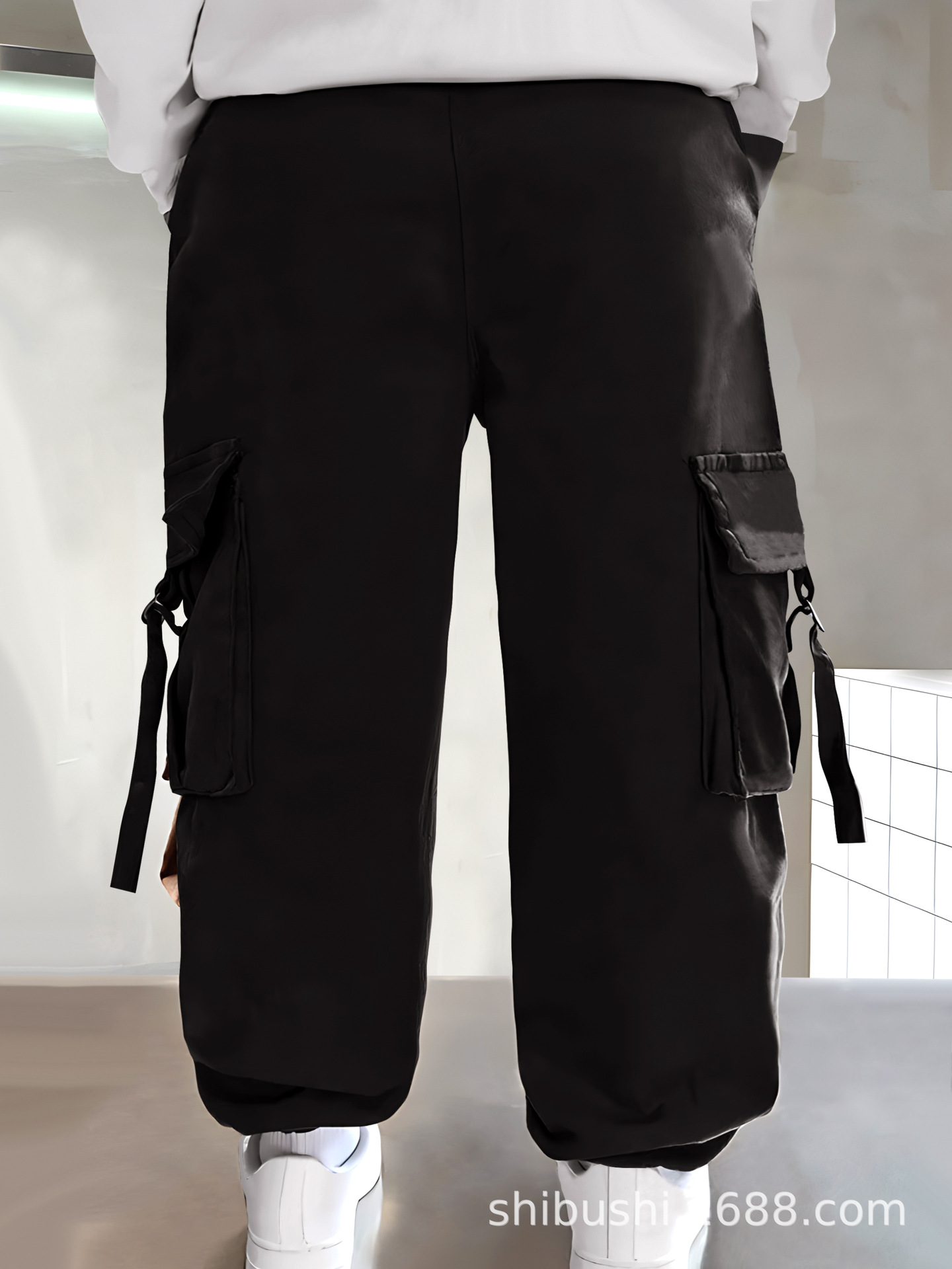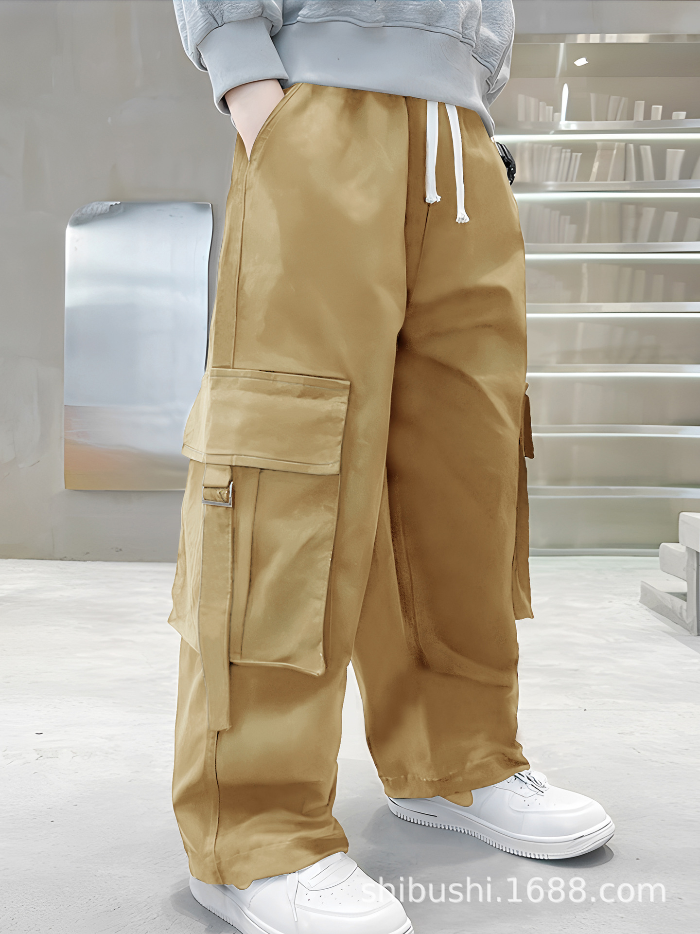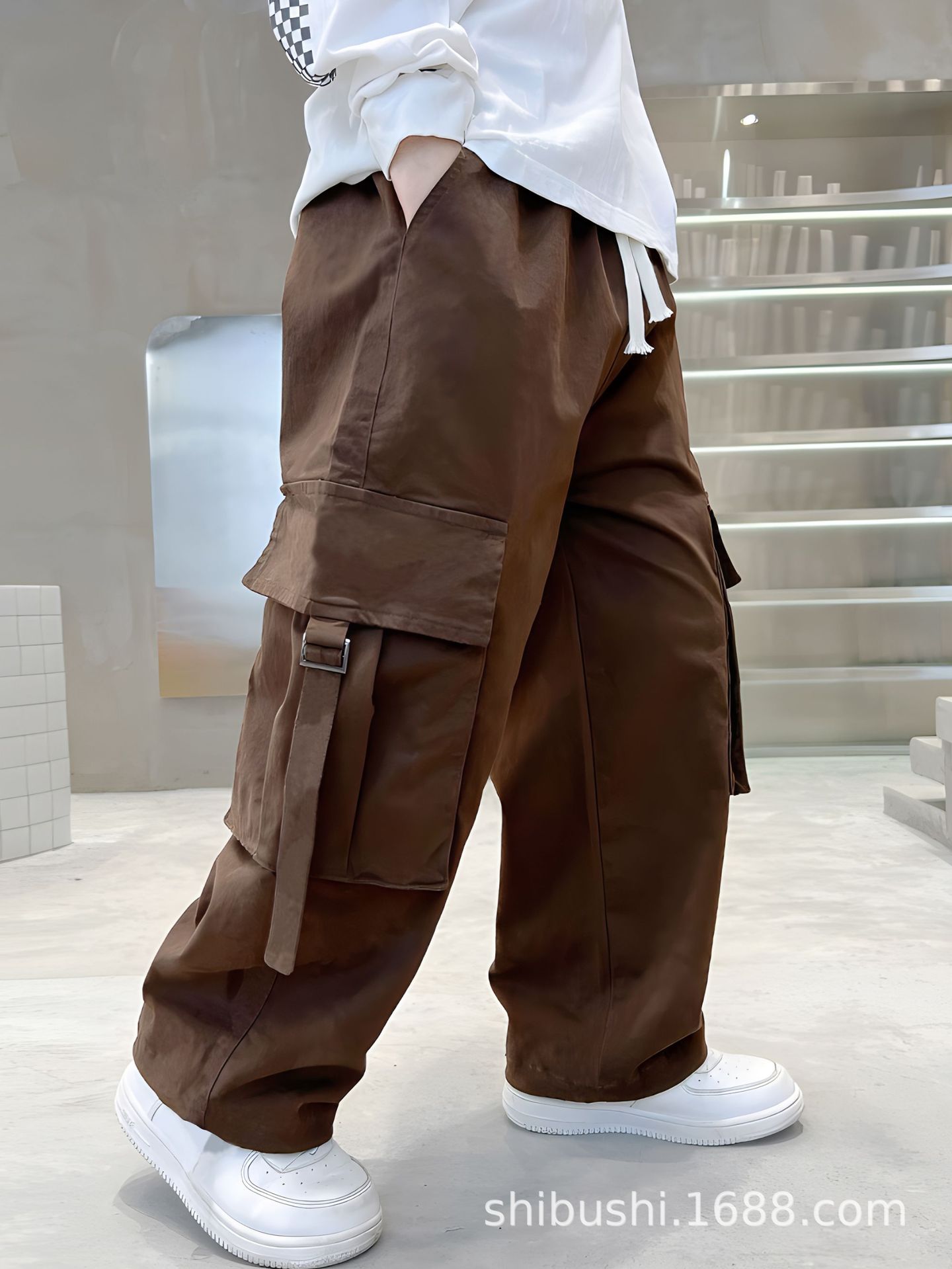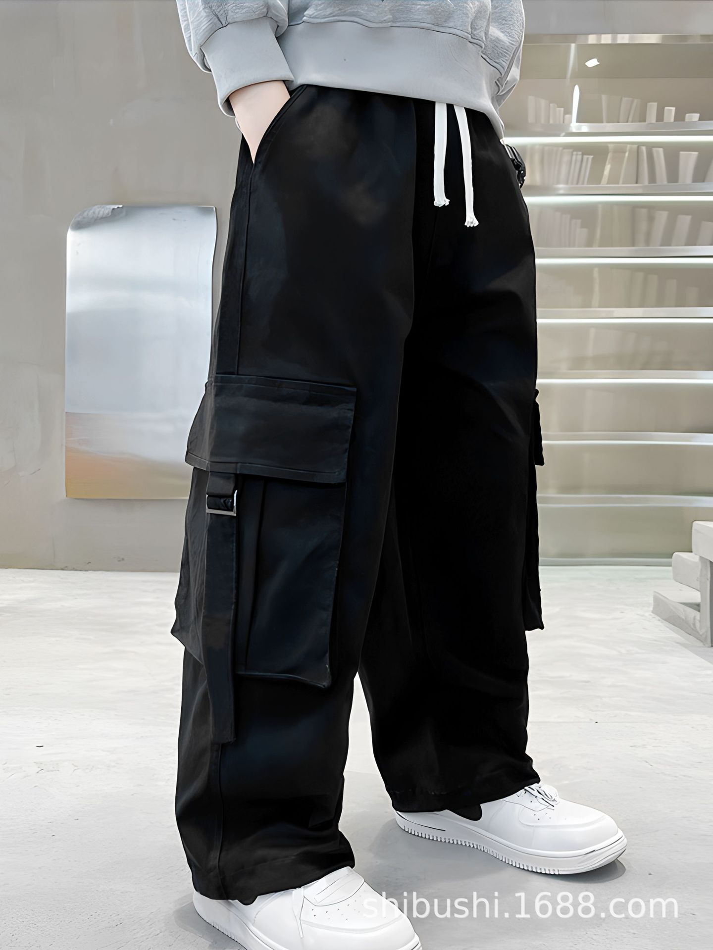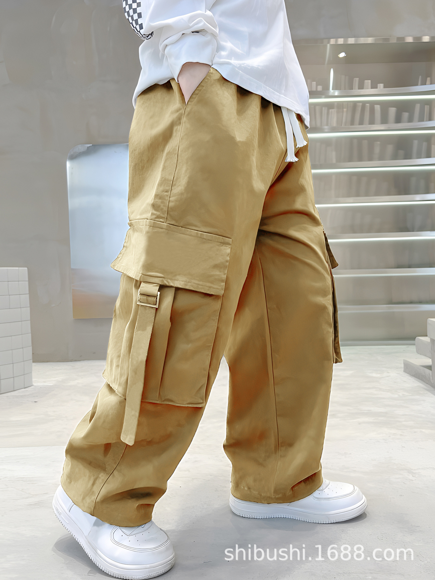 남아용 작업복/바지, 루즈핏, 중대형 아동용 바지, 벨트 포켓, 신축성 있는 허리