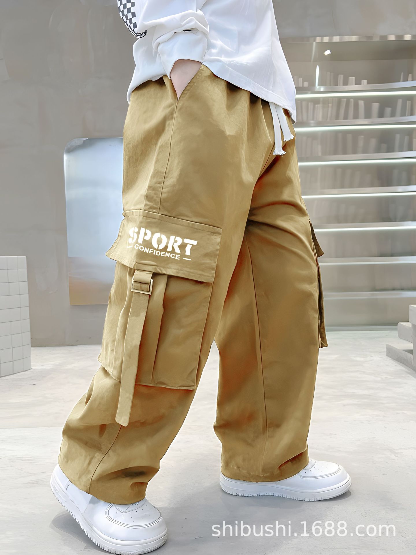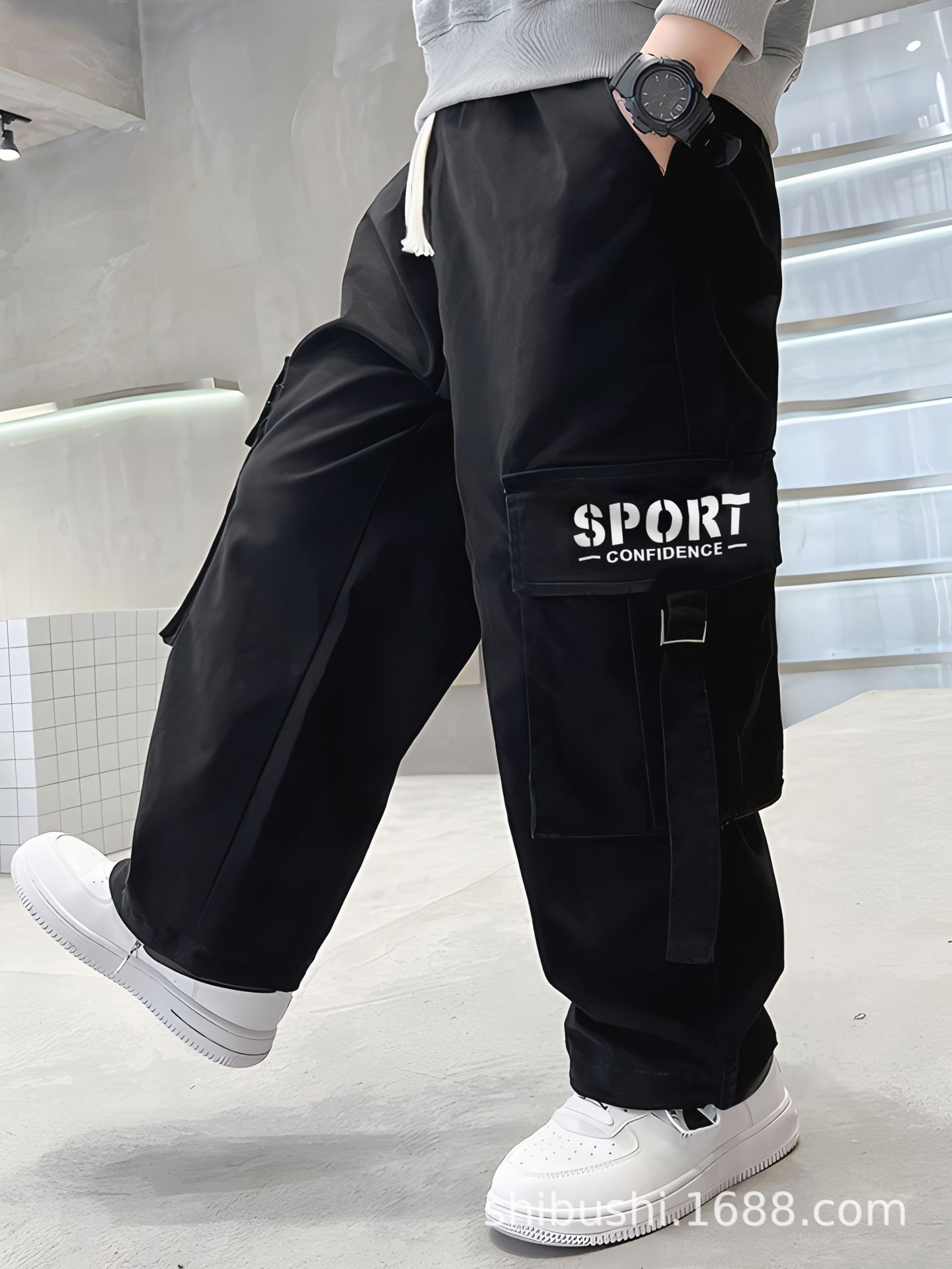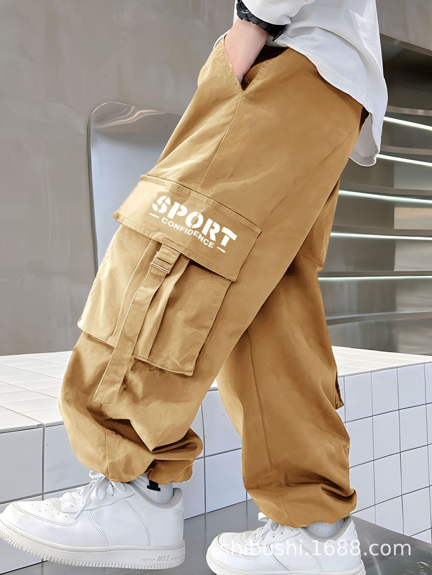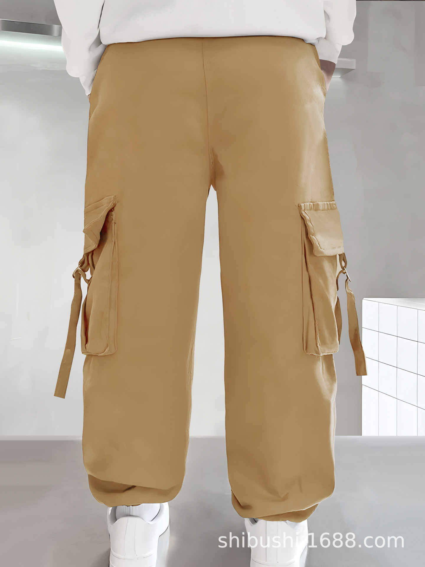 남아용 작업복/바지, 루즈핏, 중대형 아동용 바지, 벨트 포켓, 신축성 있는 허리