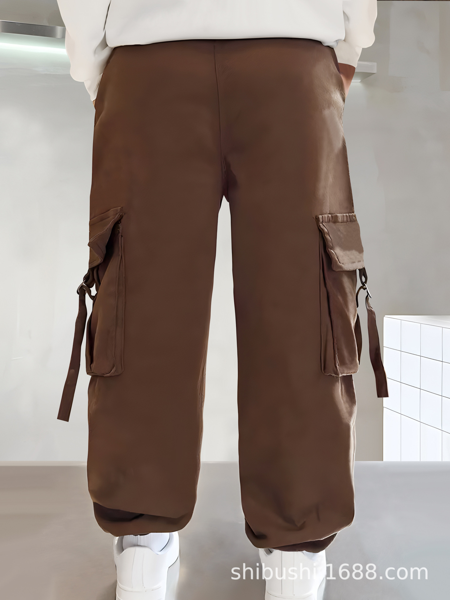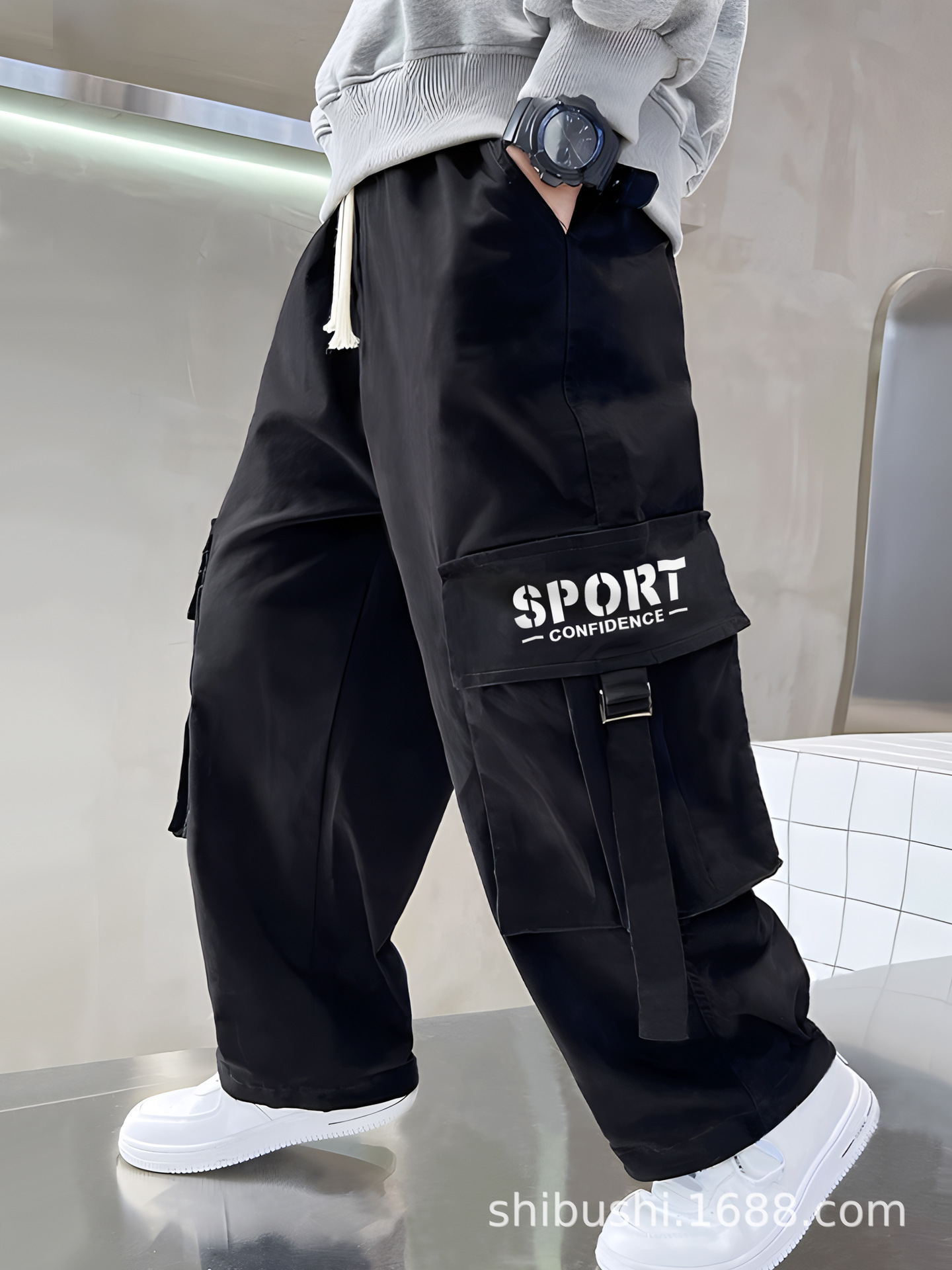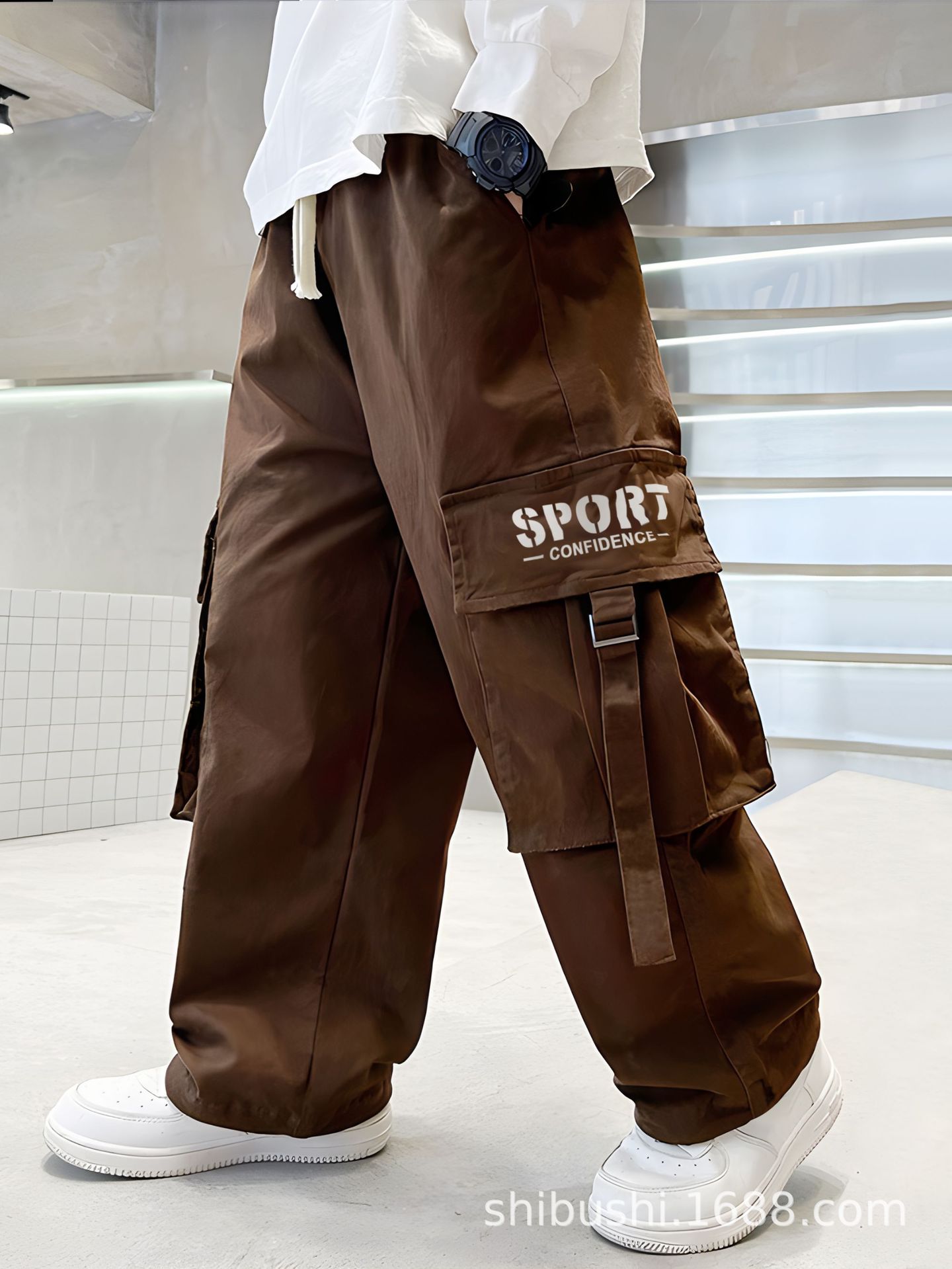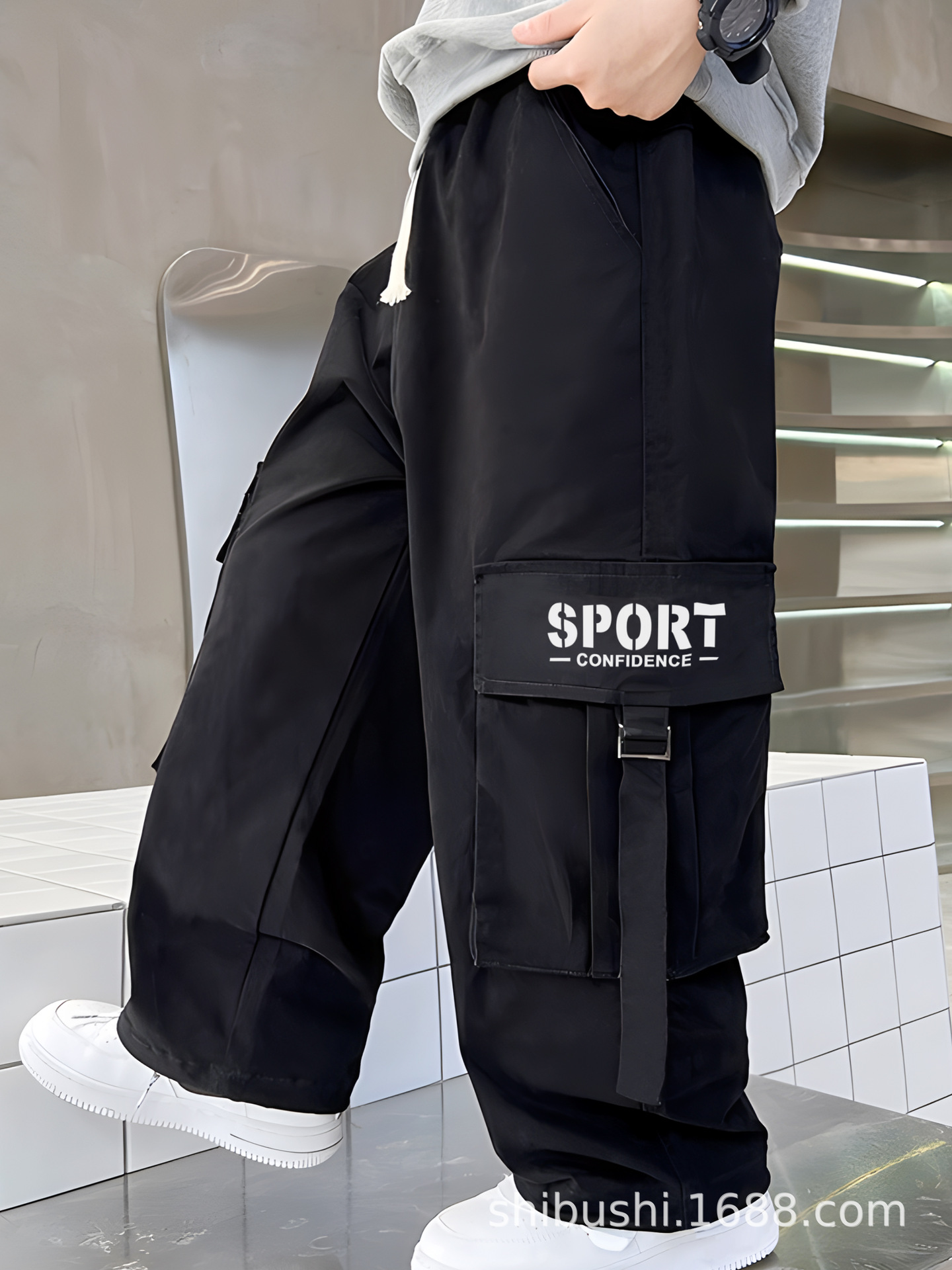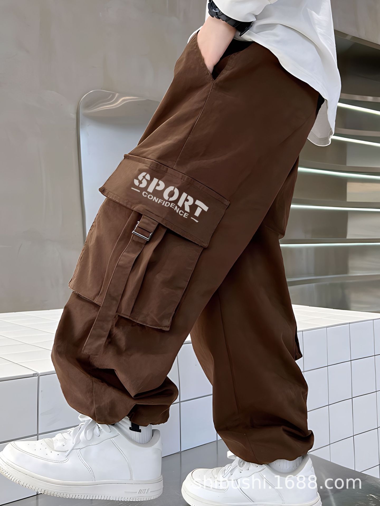 남아용 작업복/바지, 루즈핏, 중대형 아동용 바지, 벨트 포켓, 신축성 있는 허리