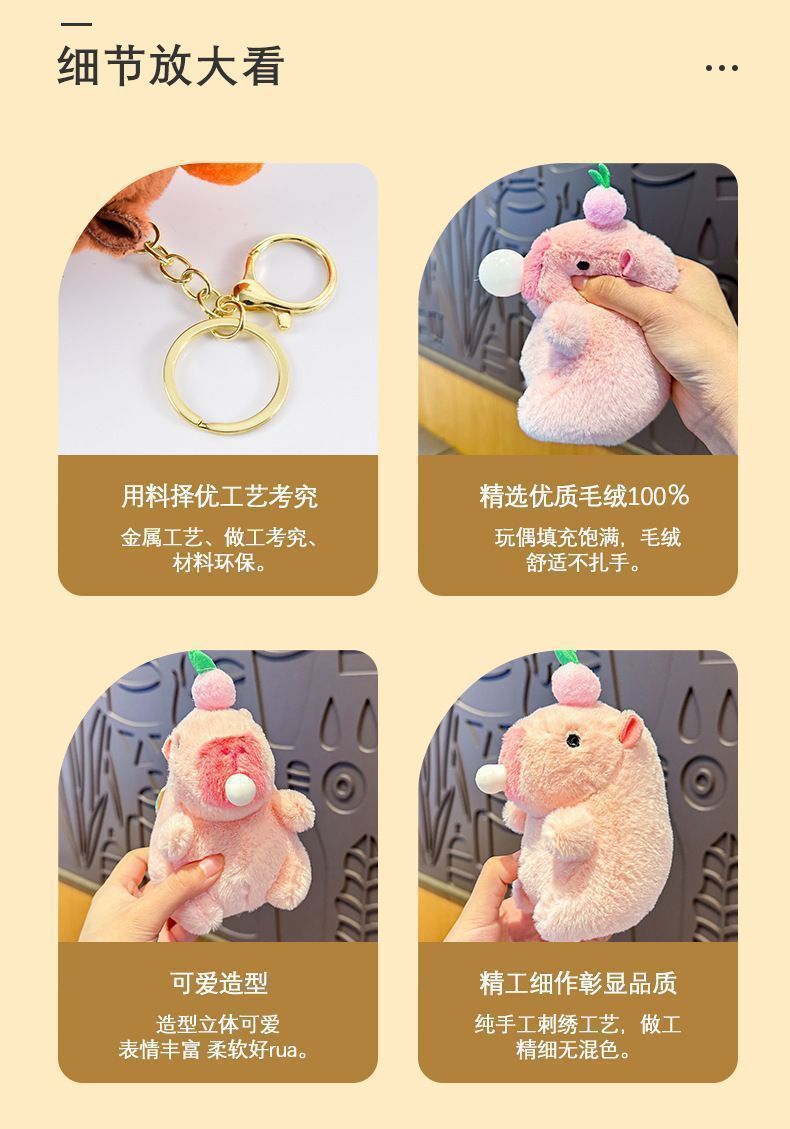 인기 만화 창작 플러시 버블 카피바라 인형 가방 펜던트 귀여운 카피바라 자동차 키스토어 가기