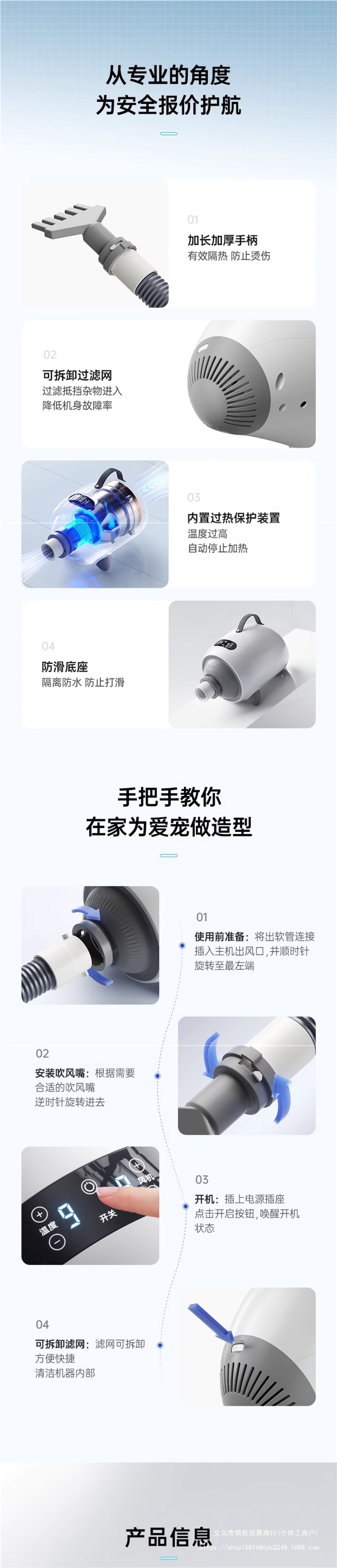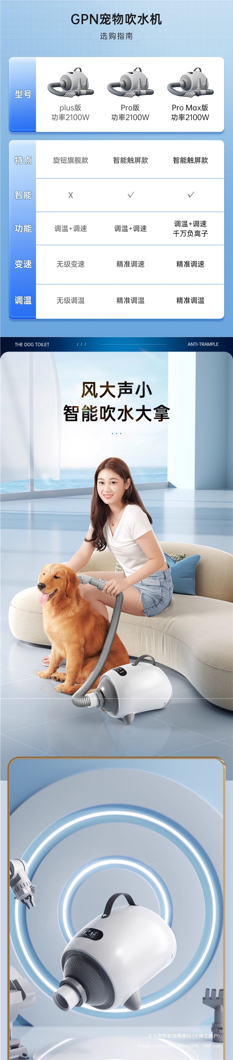 강아지용 헤어드라이어, 애완동물용 헤어드라이어, 목욕용 대형견, 가정용 고양이용 무소음 헤어드라이어, 비붐형스토어 가기