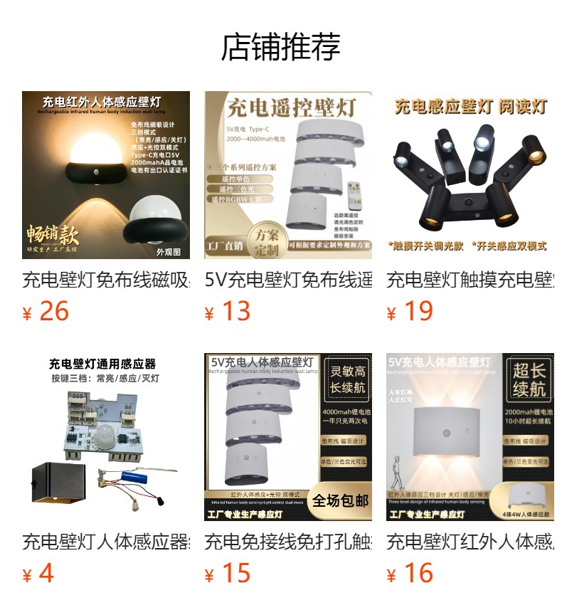 工厂专业研发生产感应系列,感应壁灯系列成品和配件都有销售,可根据要求开发生产。工厂出货所有产品为中性包装,欢迎贴牌加工。