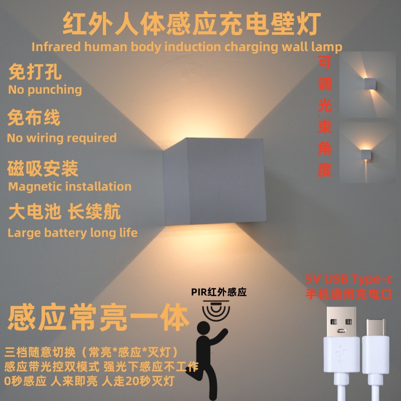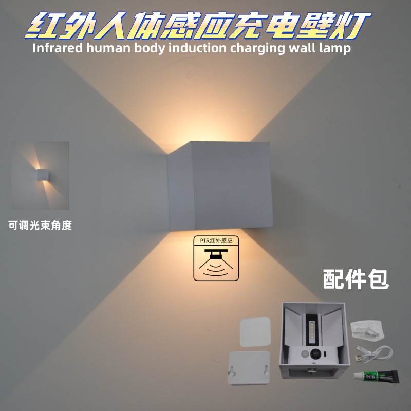 크로스보더 USB 충전식 벽등, 배선 불필요, 적외선 인체감지, 4엽형 도어형 통로등, 이탈리아풍 라이트 럭셔리 스타일스토어 가기