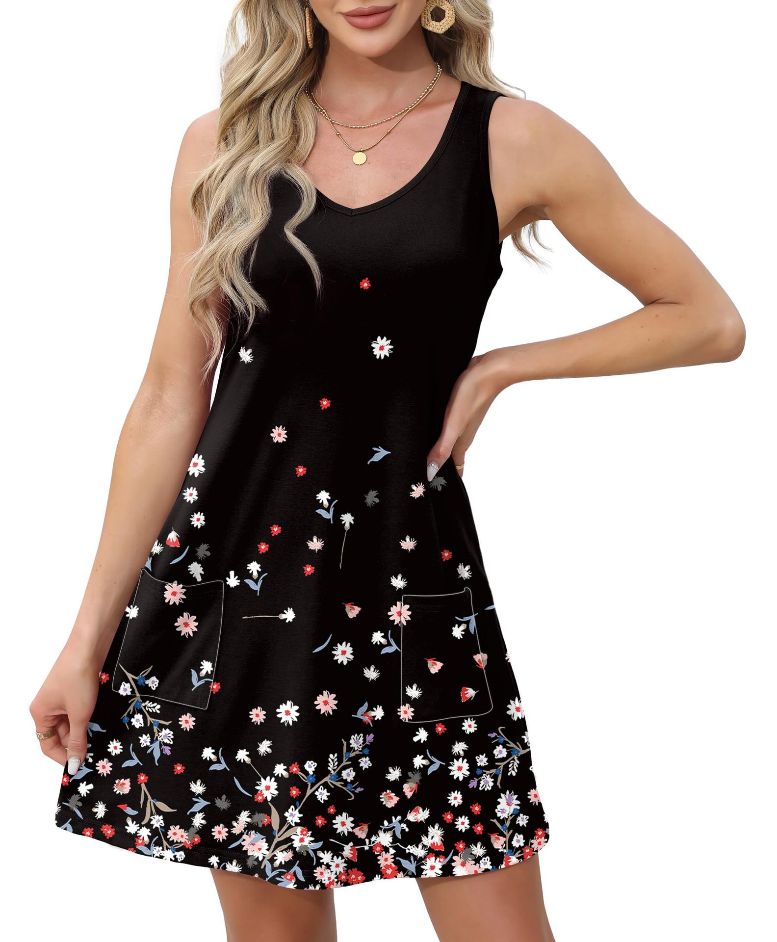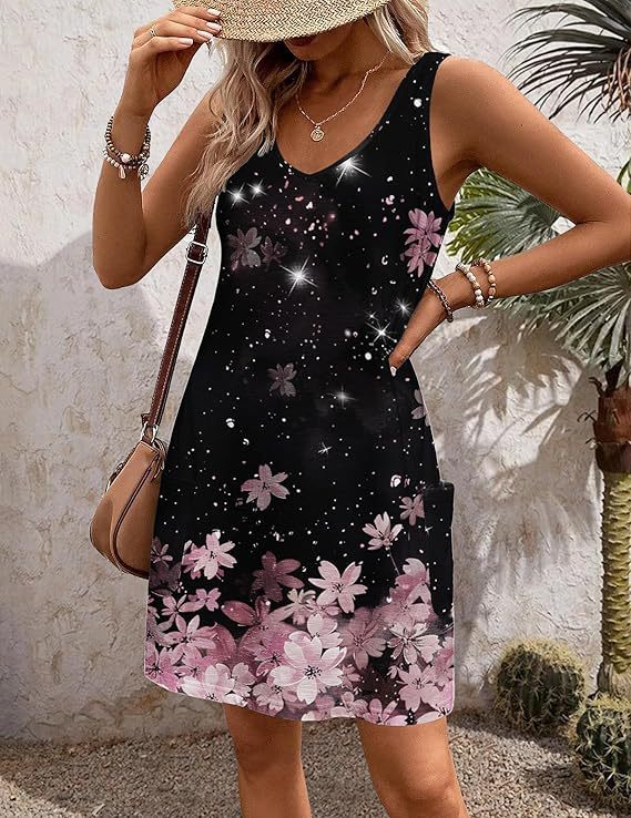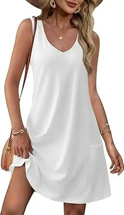 유럽 및 미국 해외직구 2025 아마존 코트 독립형 여름 해변 루즈핏 V넥 민소매 포켓 원피스 조끼