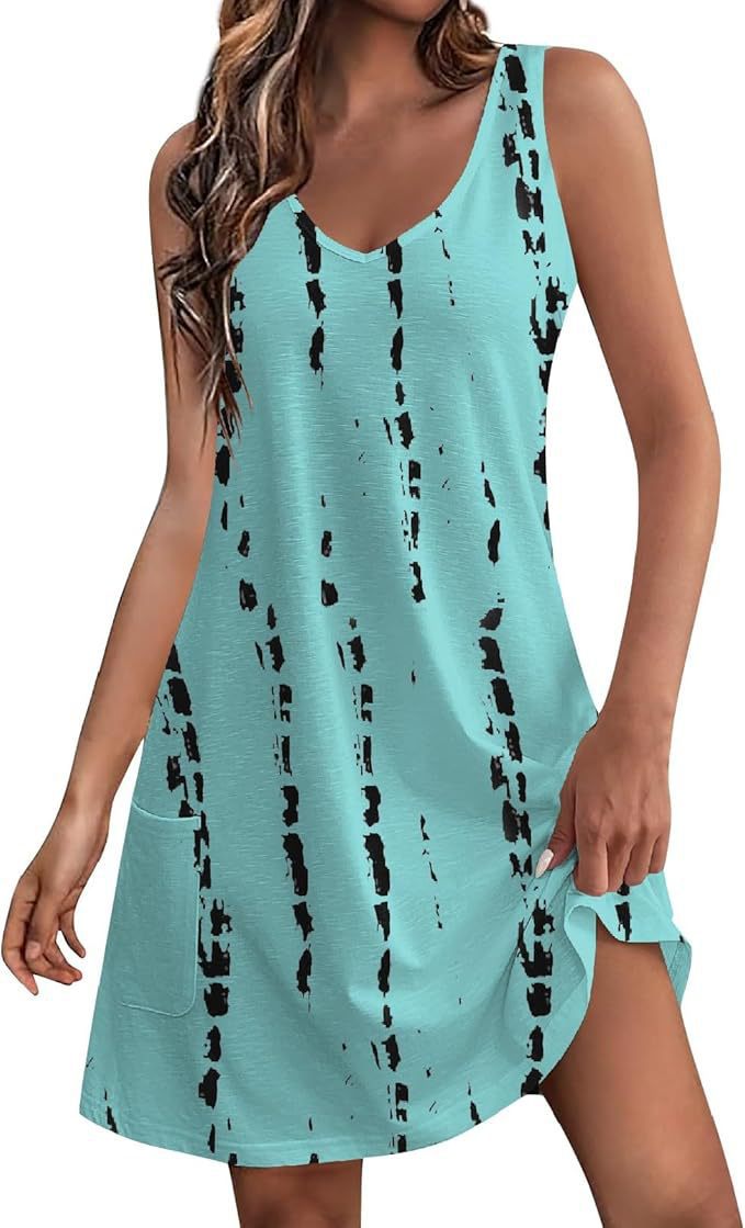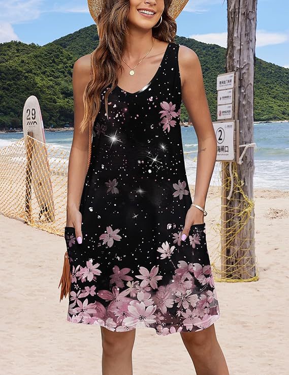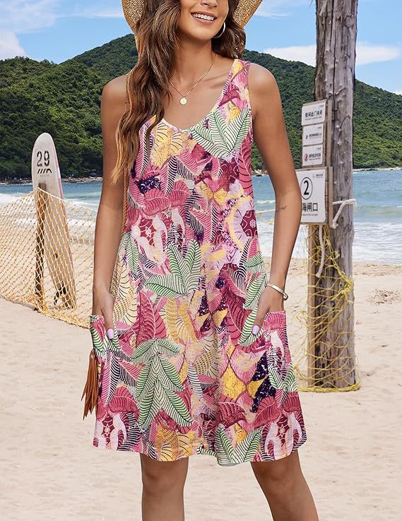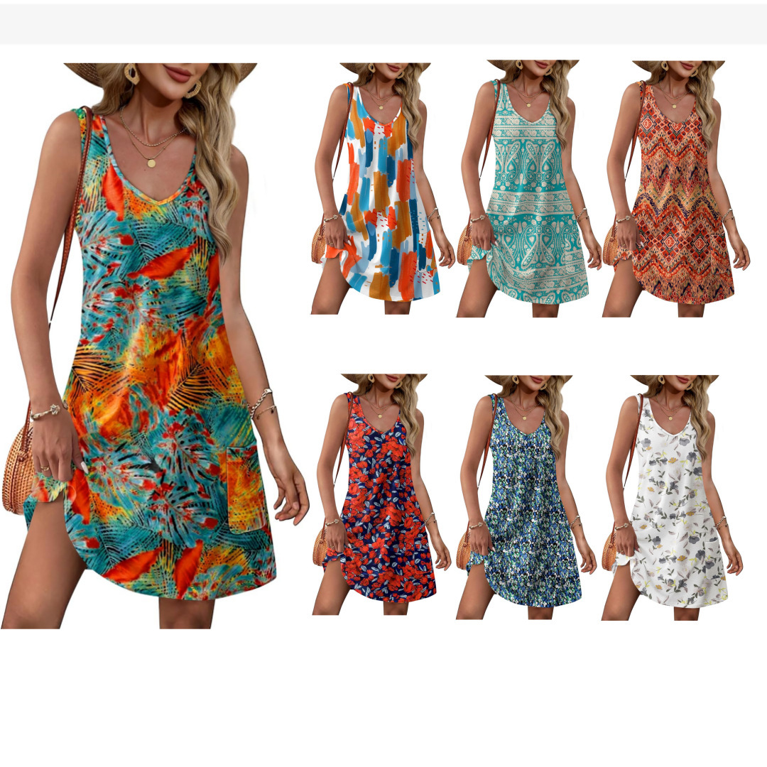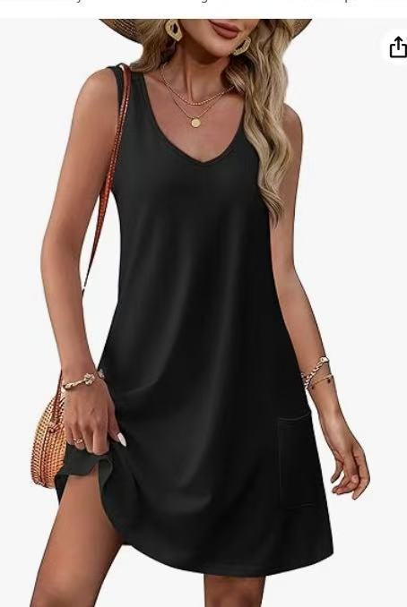 유럽 및 미국 해외직구 2025 아마존 코트 독립형 여름 해변 루즈핏 V넥 민소매 포켓 원피스 조끼스토어 가기