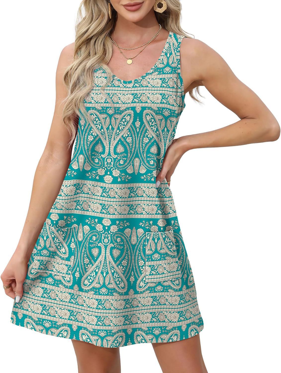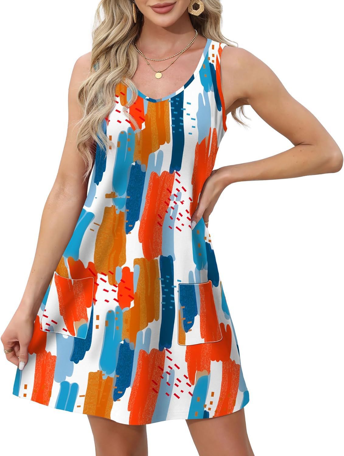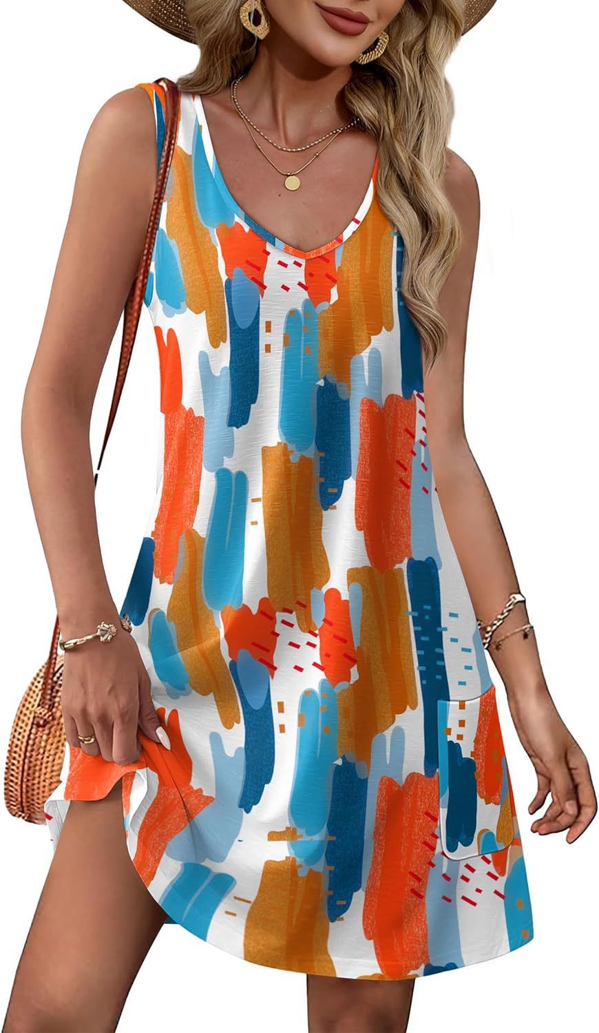 유럽 및 미국 해외직구 2025 아마존 코트 독립형 여름 해변 루즈핏 V넥 민소매 포켓 원피스 조끼스토어 가기