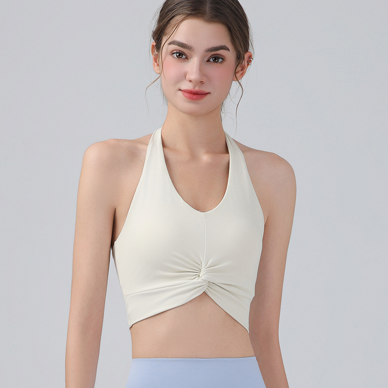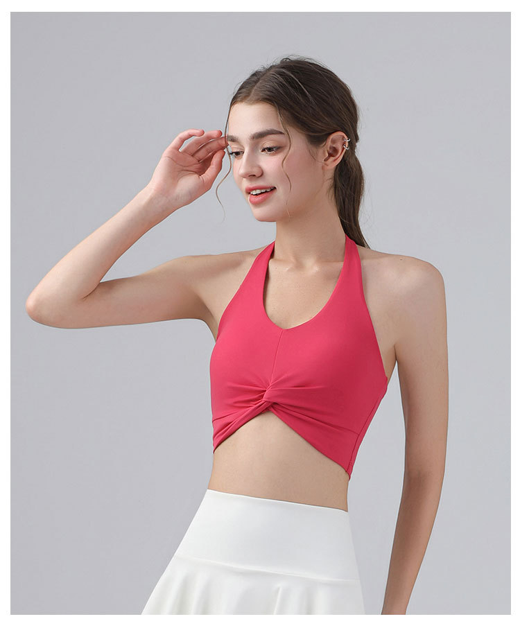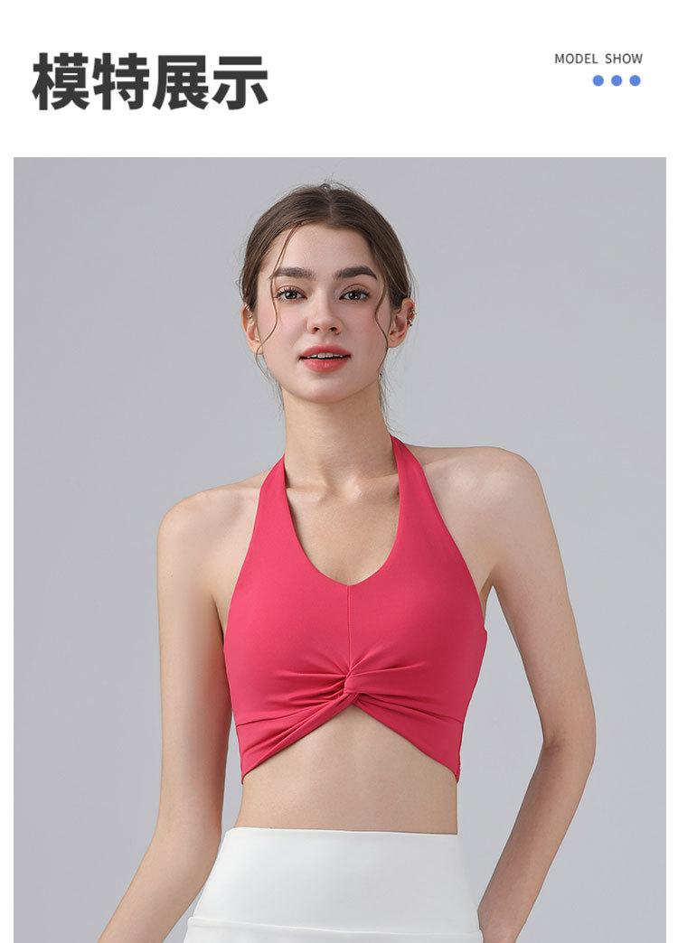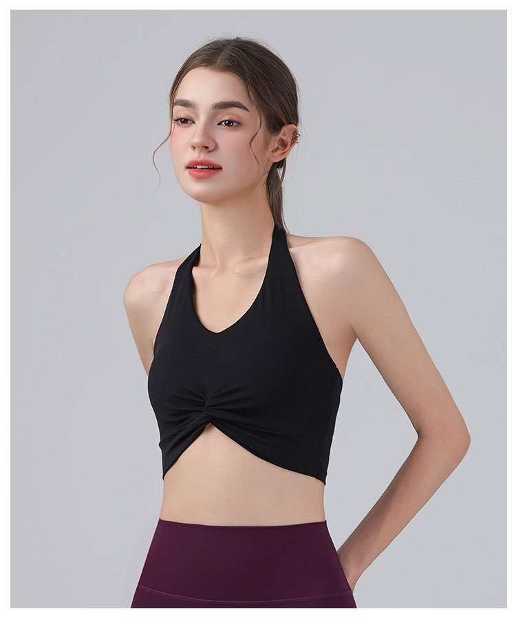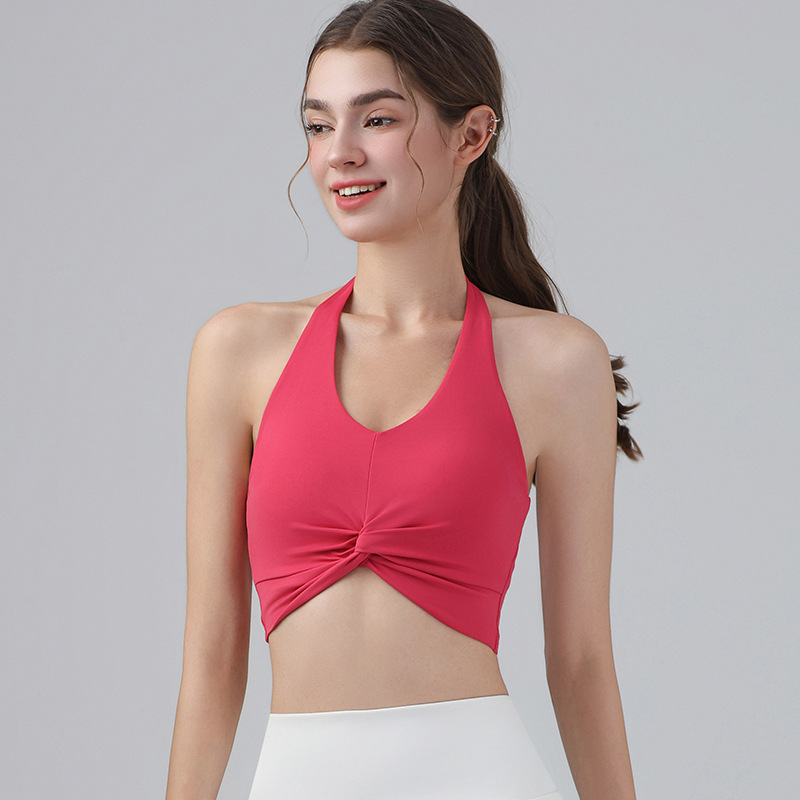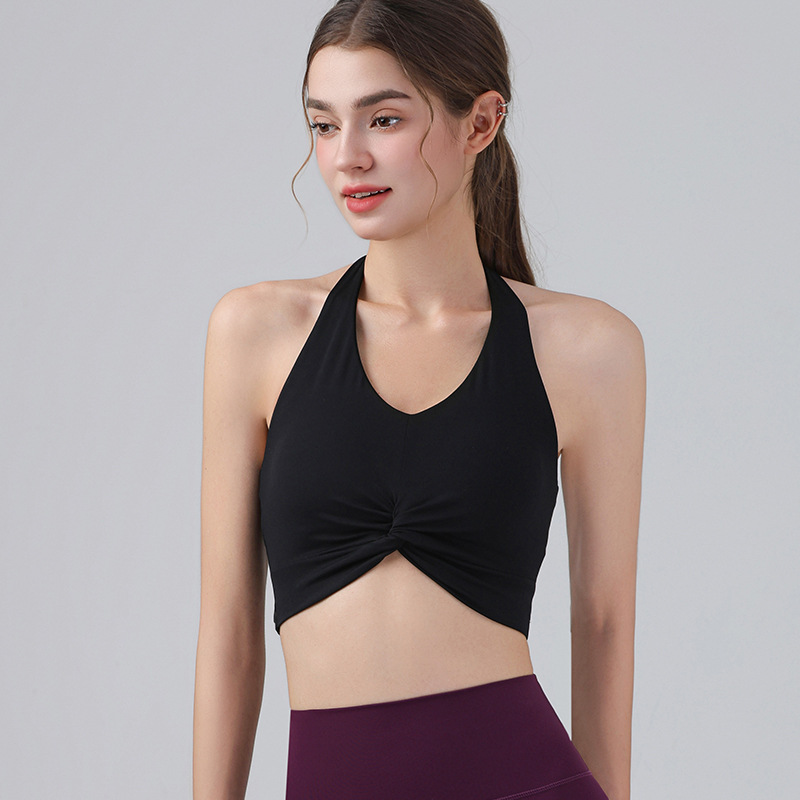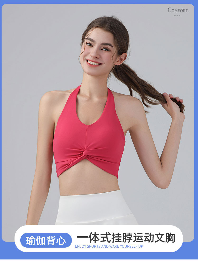 가슴 패드가 있는 홀터넥 스포츠 브라, 런닝 피트니스 충격 방지 조끼, 필라테스 요가복, 아름다운 등 스포츠 브라