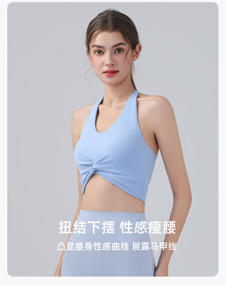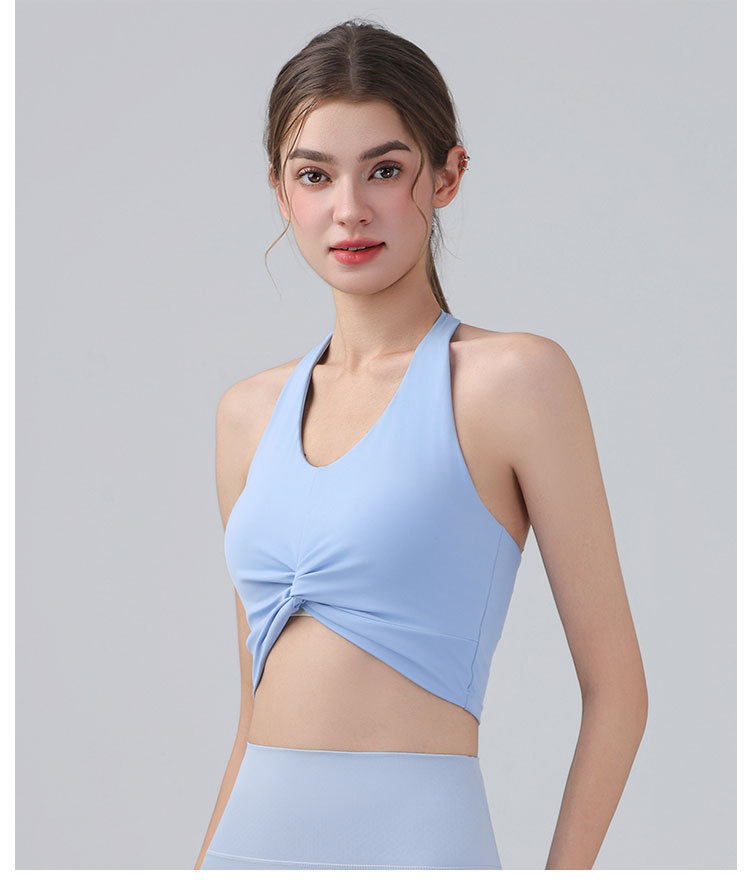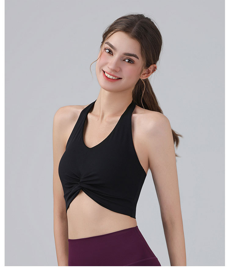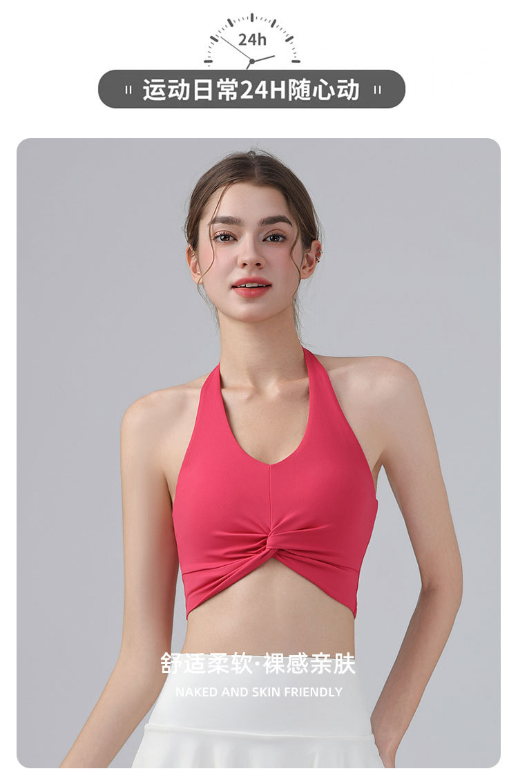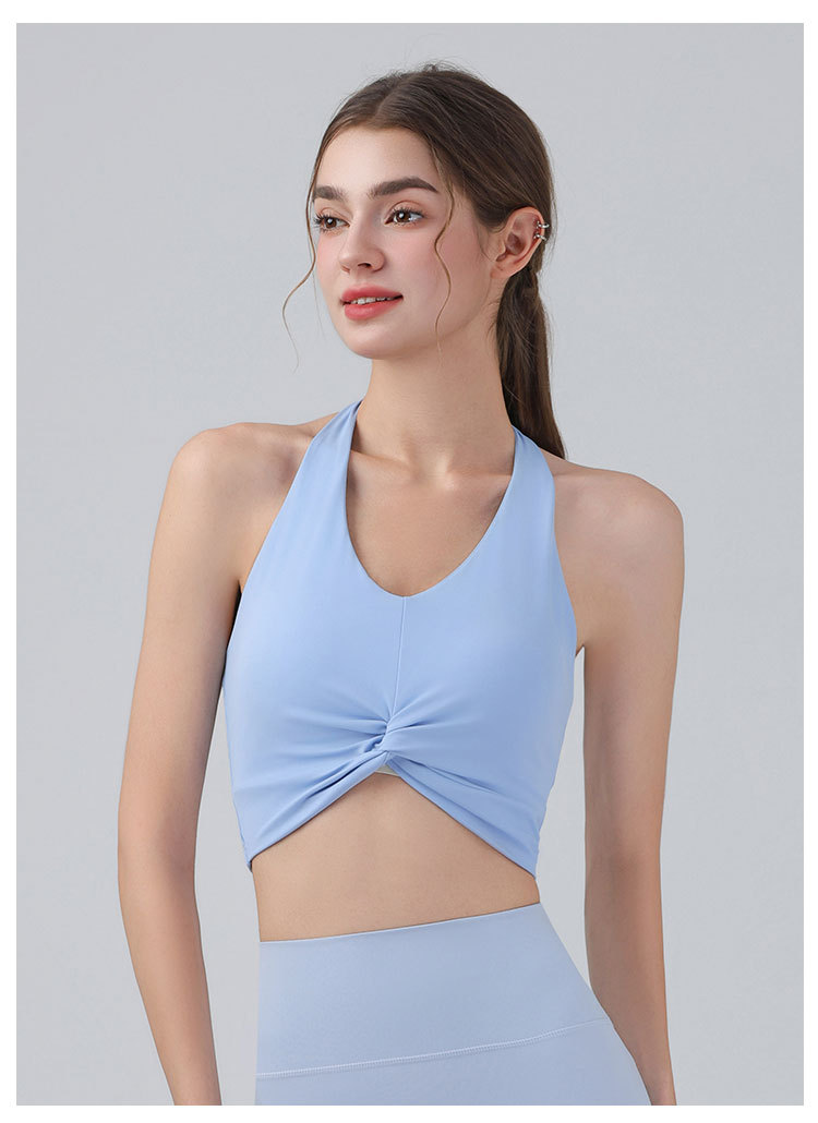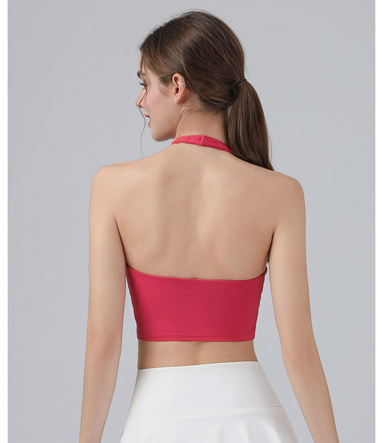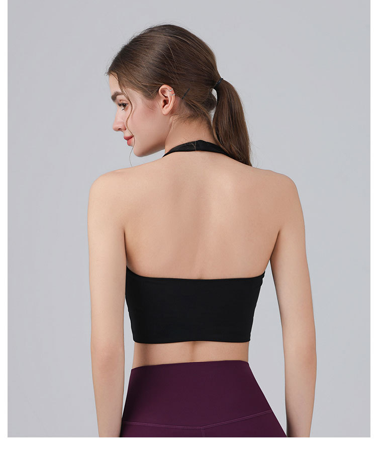 가슴 패드가 있는 홀터넥 스포츠 브라, 런닝 피트니스 충격 방지 조끼, 필라테스 요가복, 아름다운 등 스포츠 브라