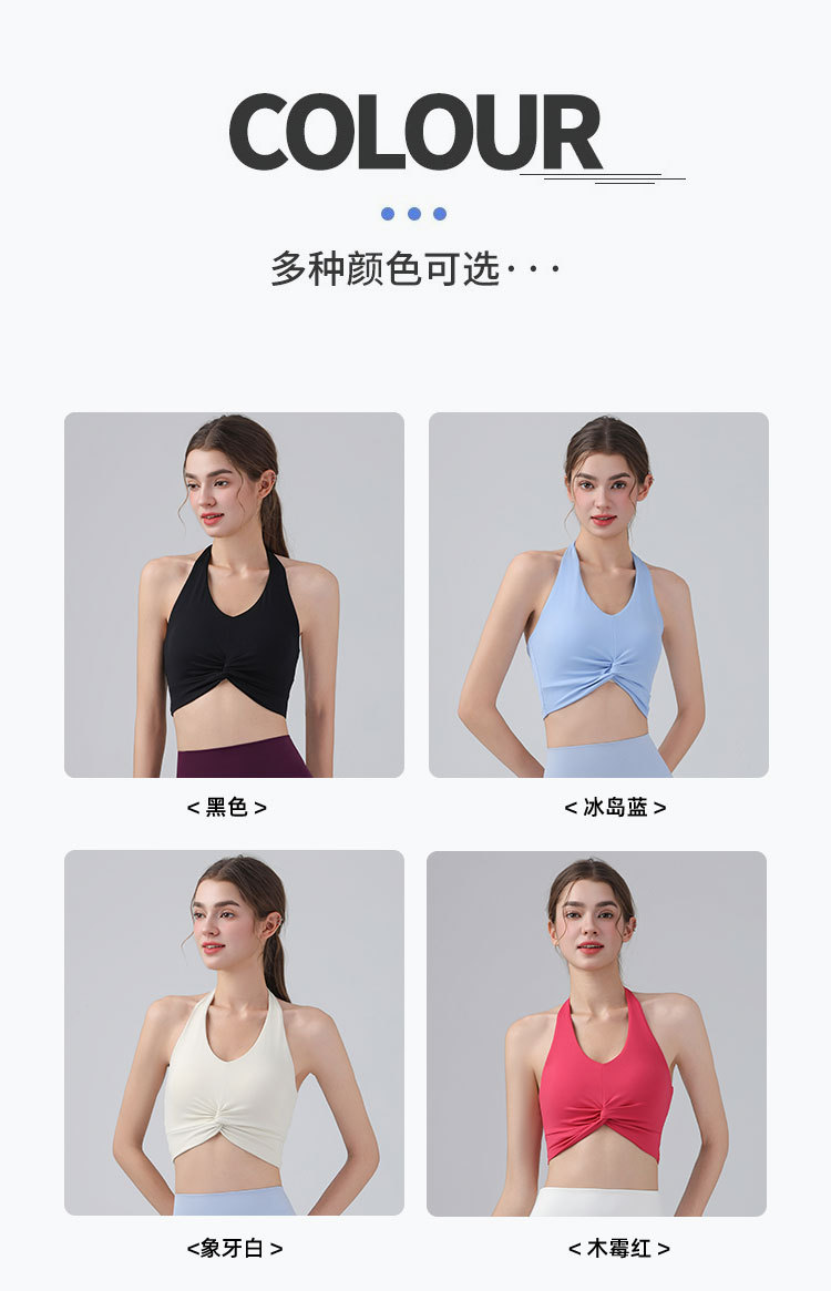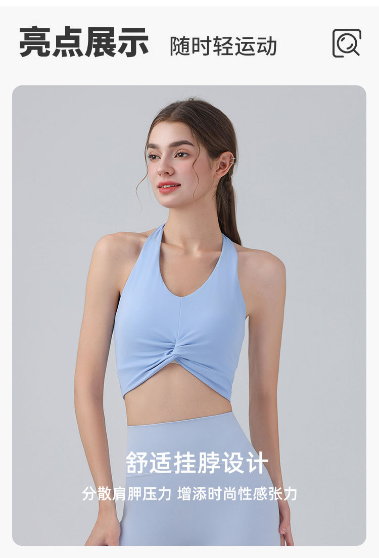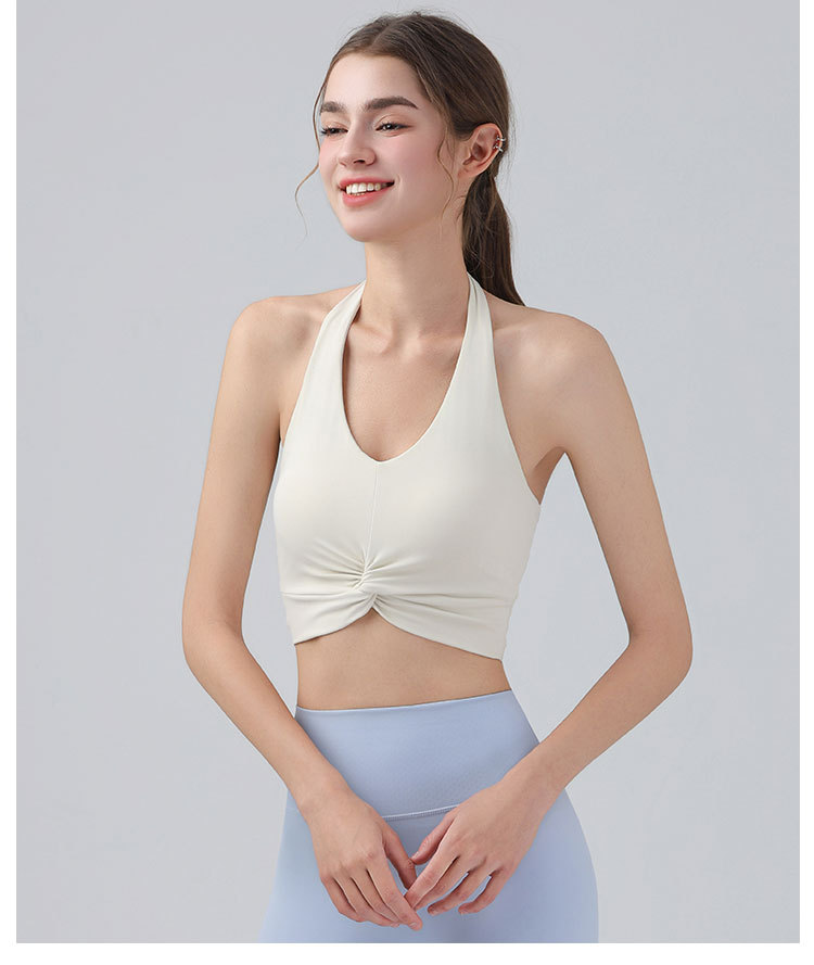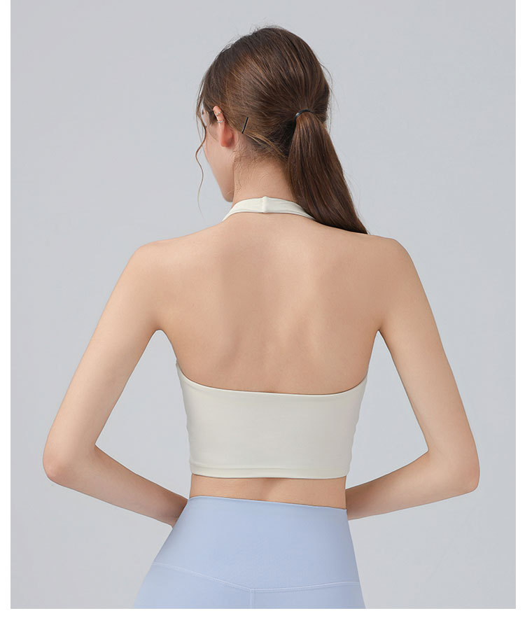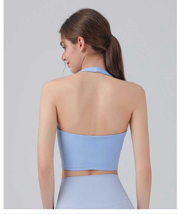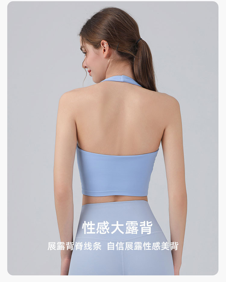 가슴 패드가 있는 홀터넥 스포츠 브라, 런닝 피트니스 충격 방지 조끼, 필라테스 요가복, 아름다운 등 스포츠 브라스토어 가기