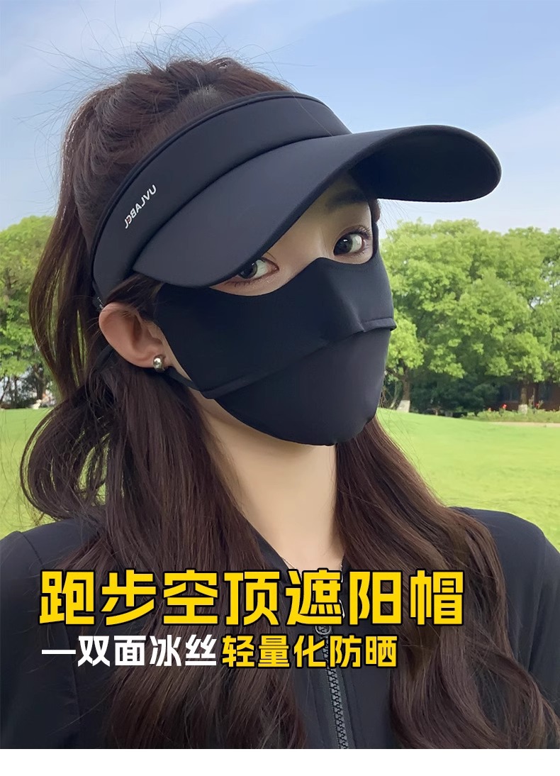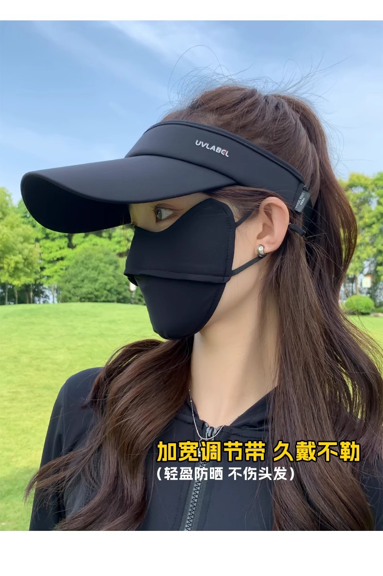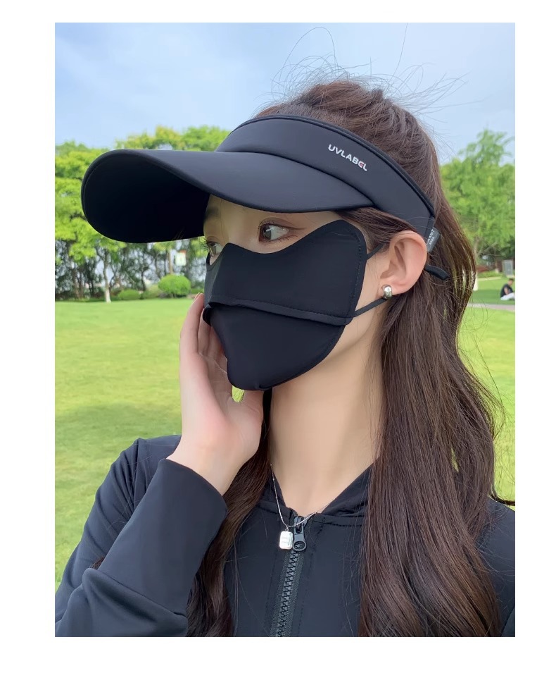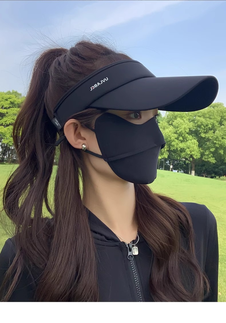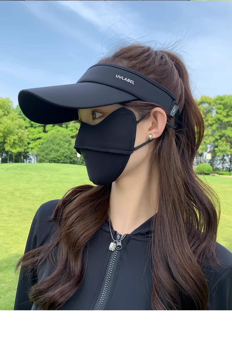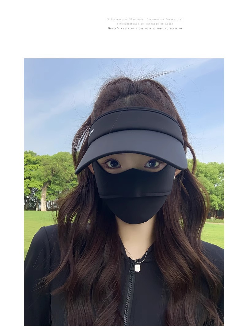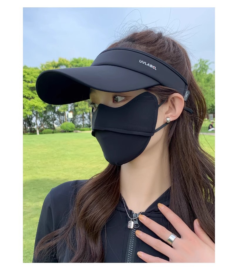 • 아이스 실크 빈 탑 선크림 모자-블랙