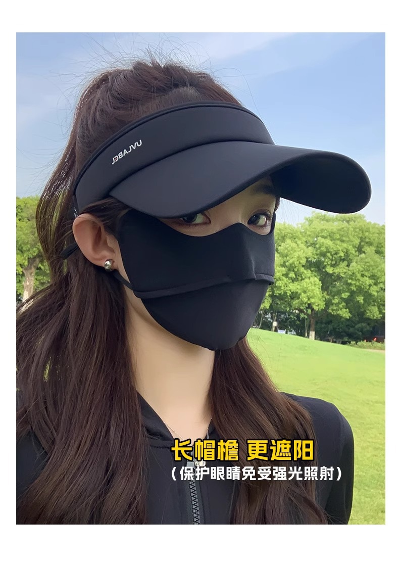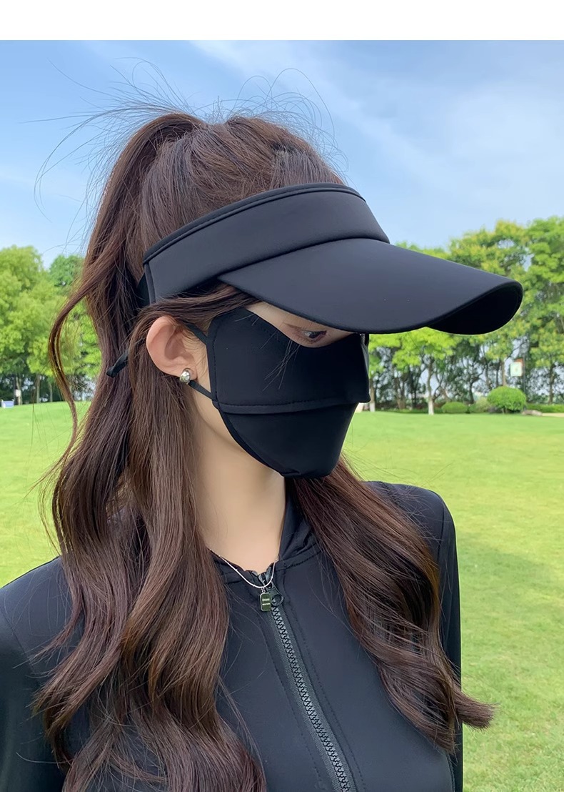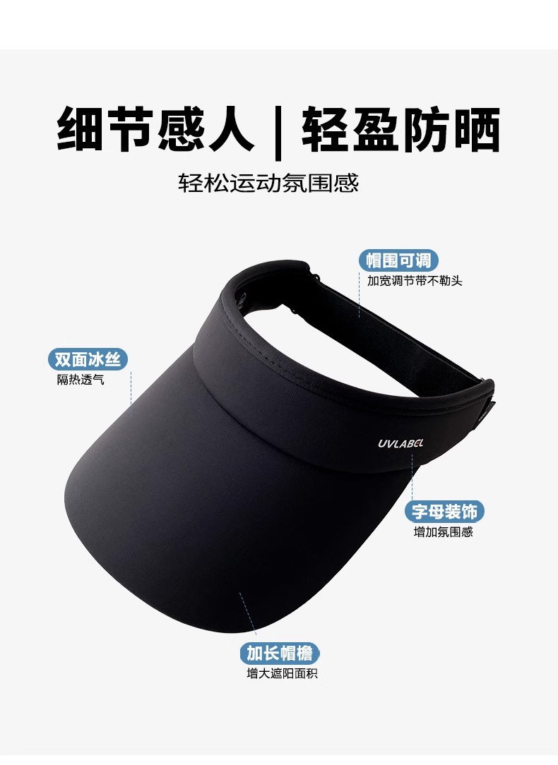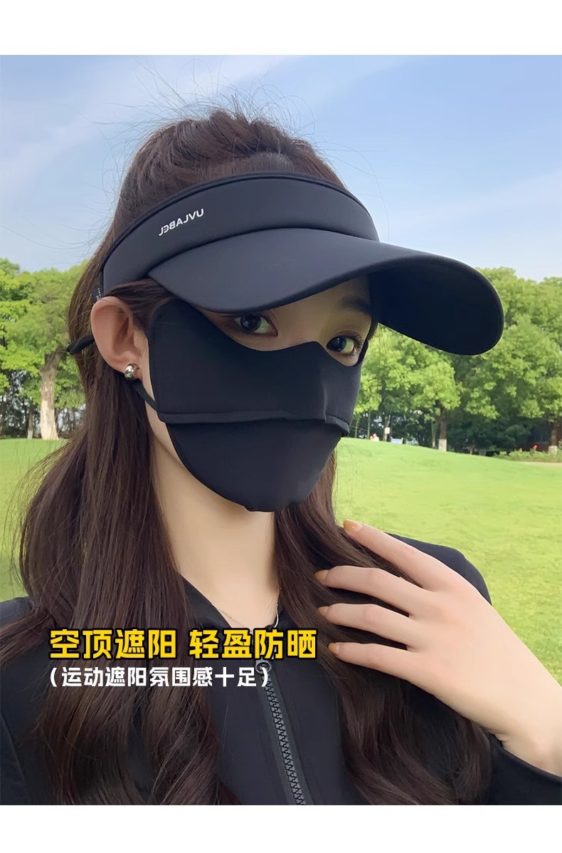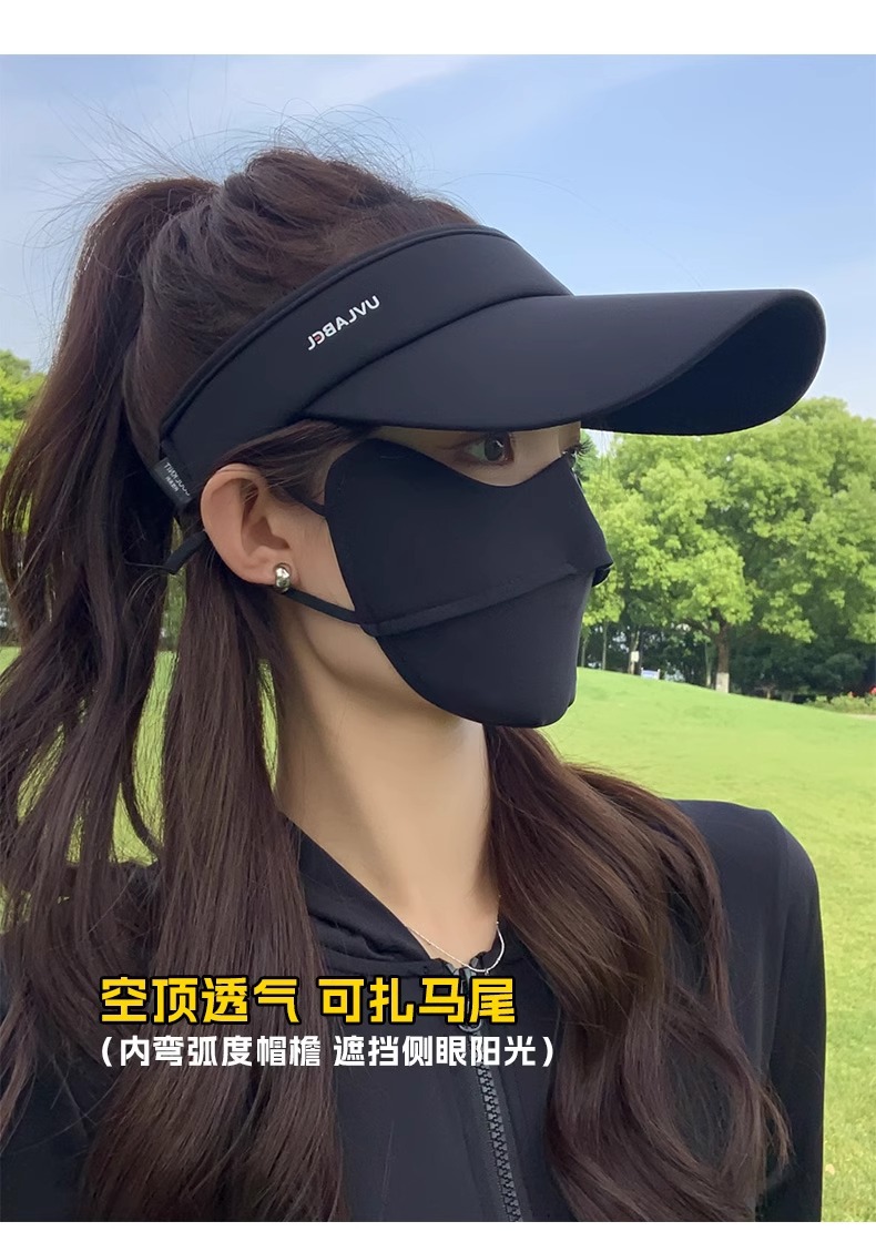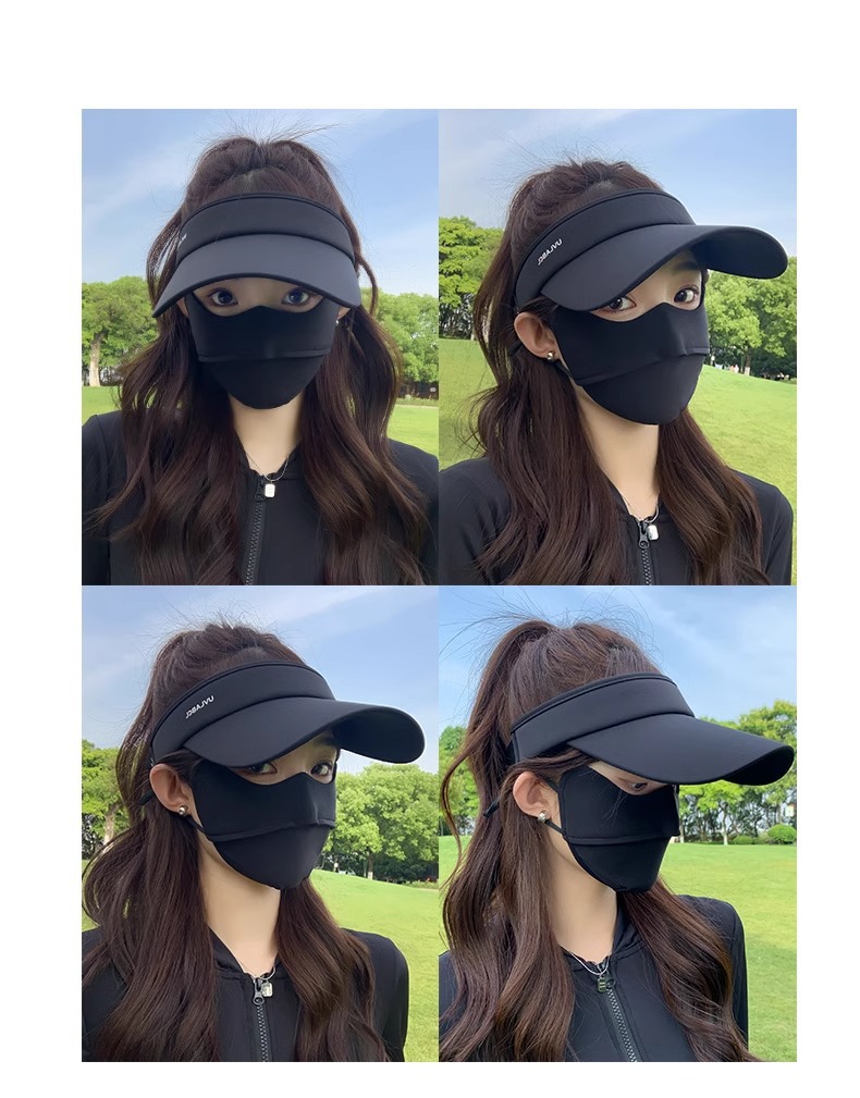 • 아이스 실크 빈 탑 선크림 모자-블랙