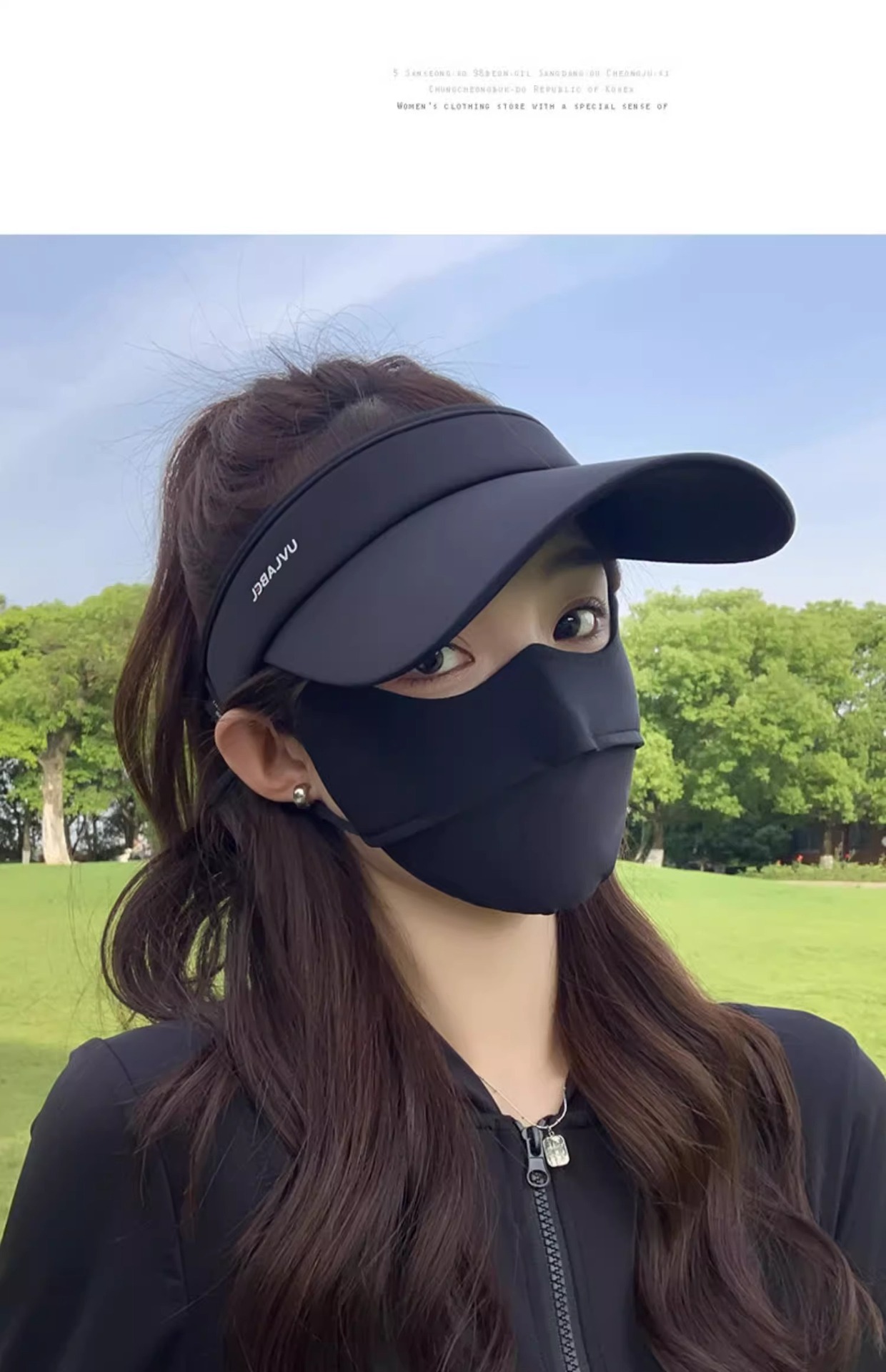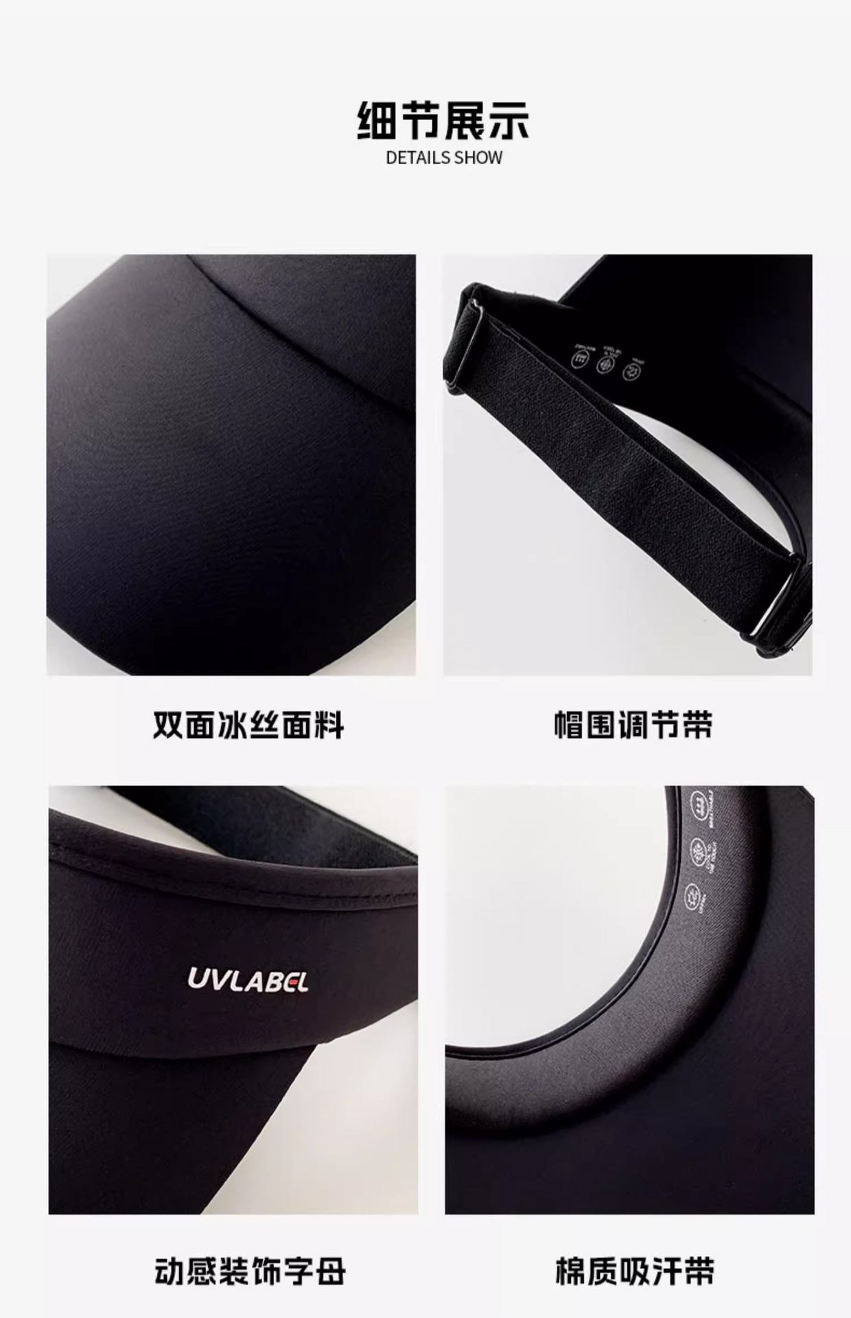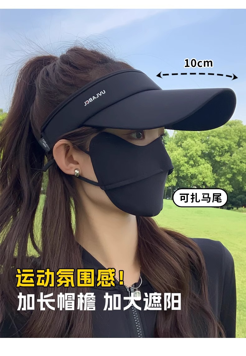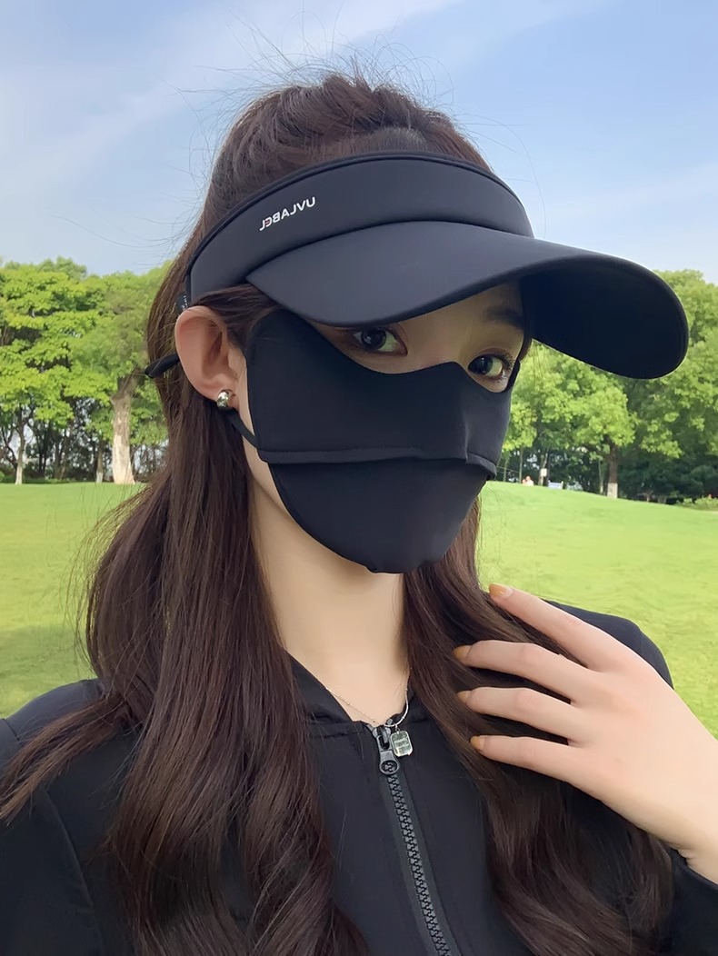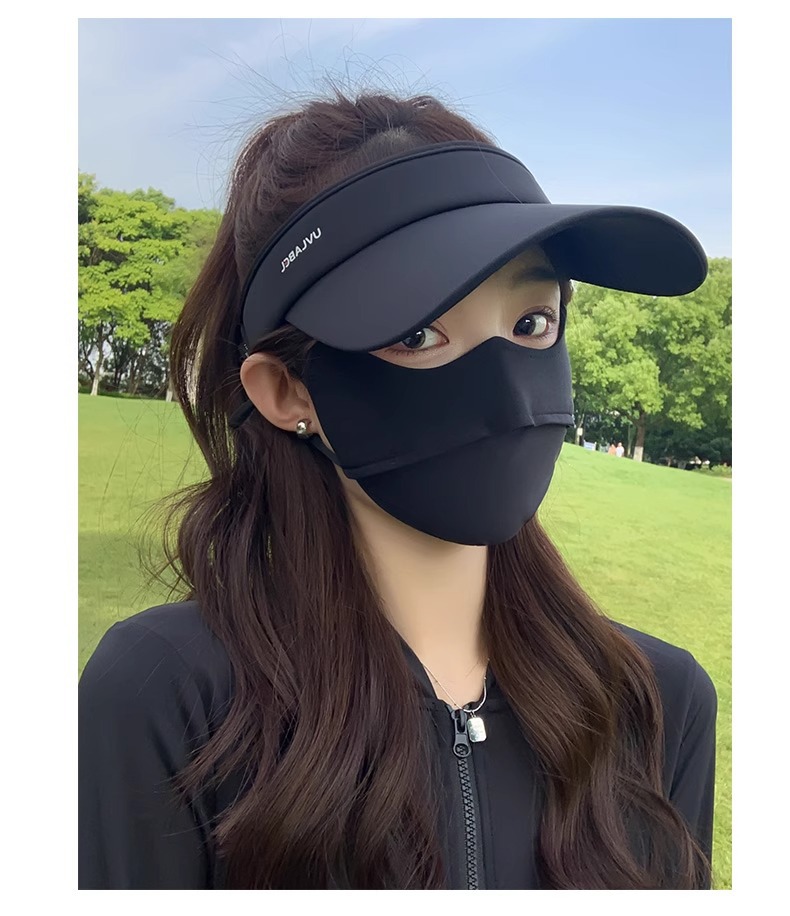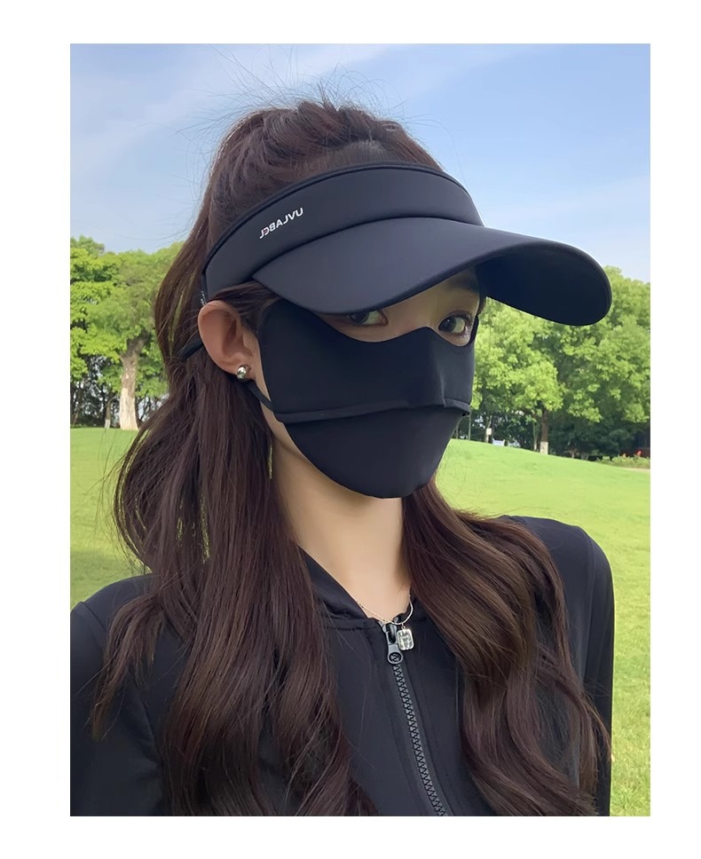• 아이스 실크 빈 탑 선크림 모자-블랙