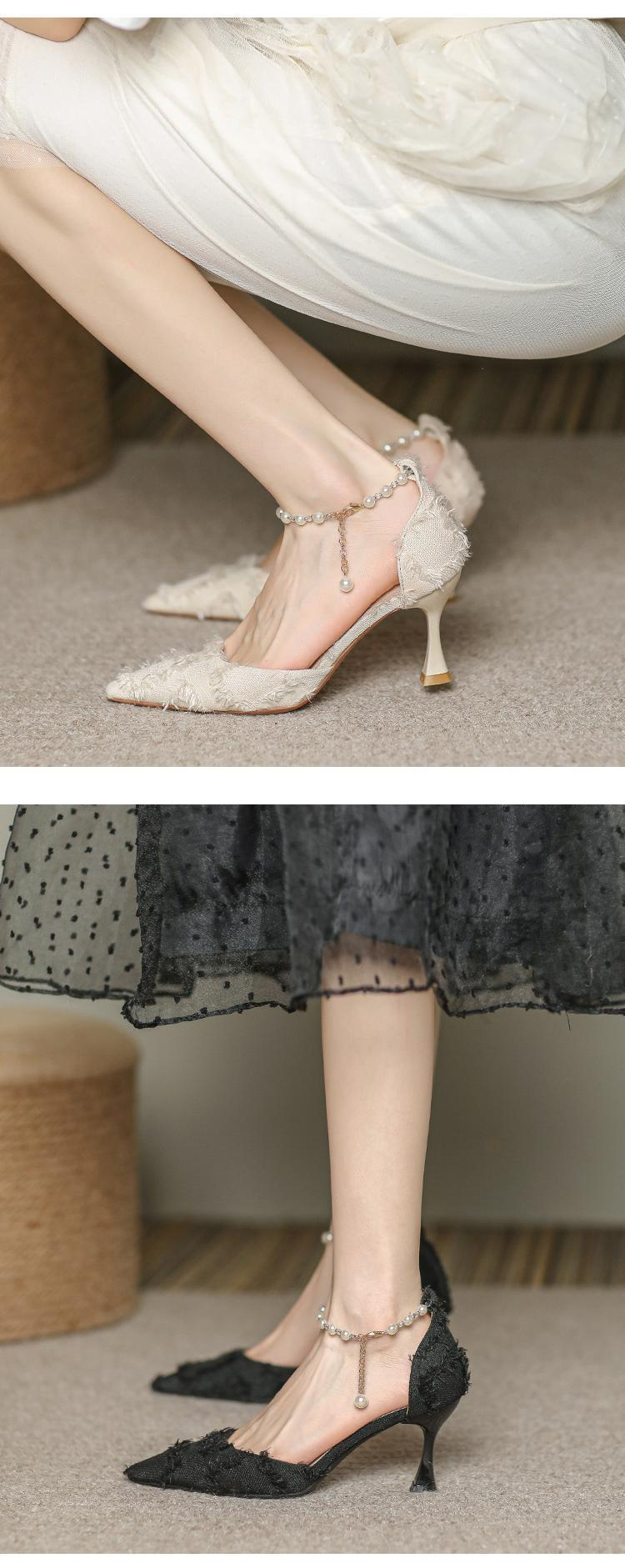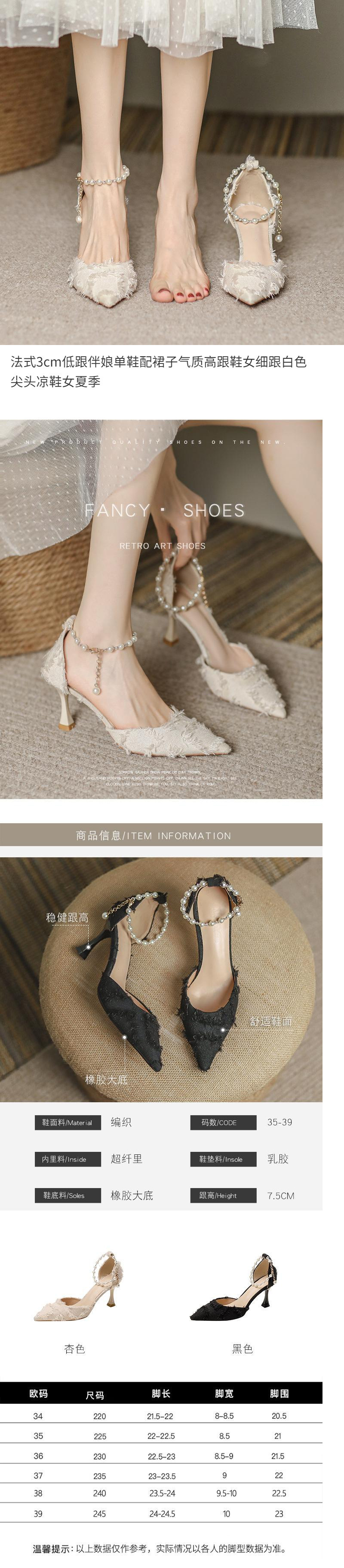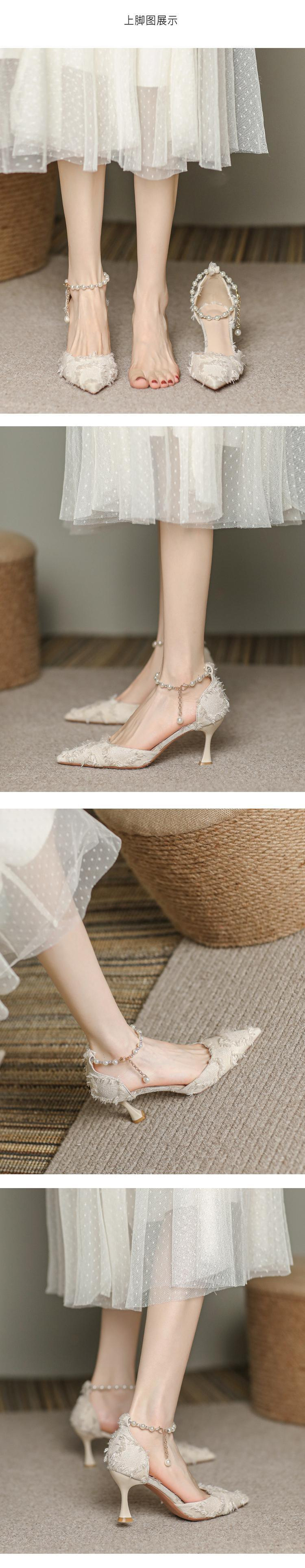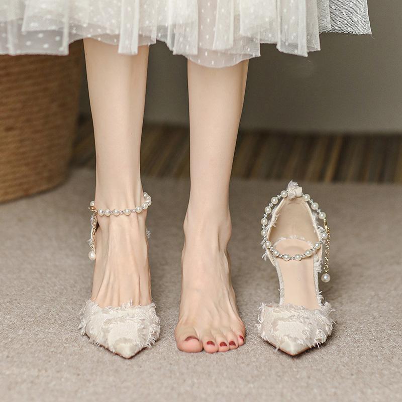 프렌치 스타일 3cm 로우힐 신부 들러리 슈즈와 스커트, 여성용 하이힐, 여성용 스틸레토 화이트 포인티드 토 샌들, 여름스토어 가기
