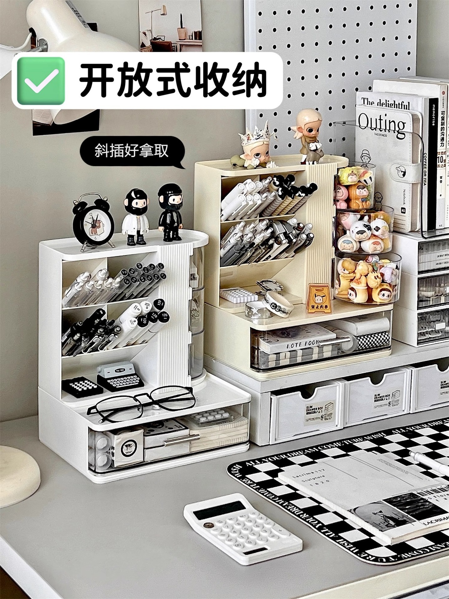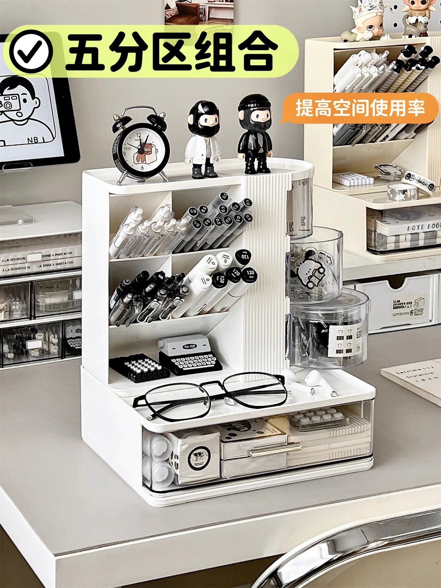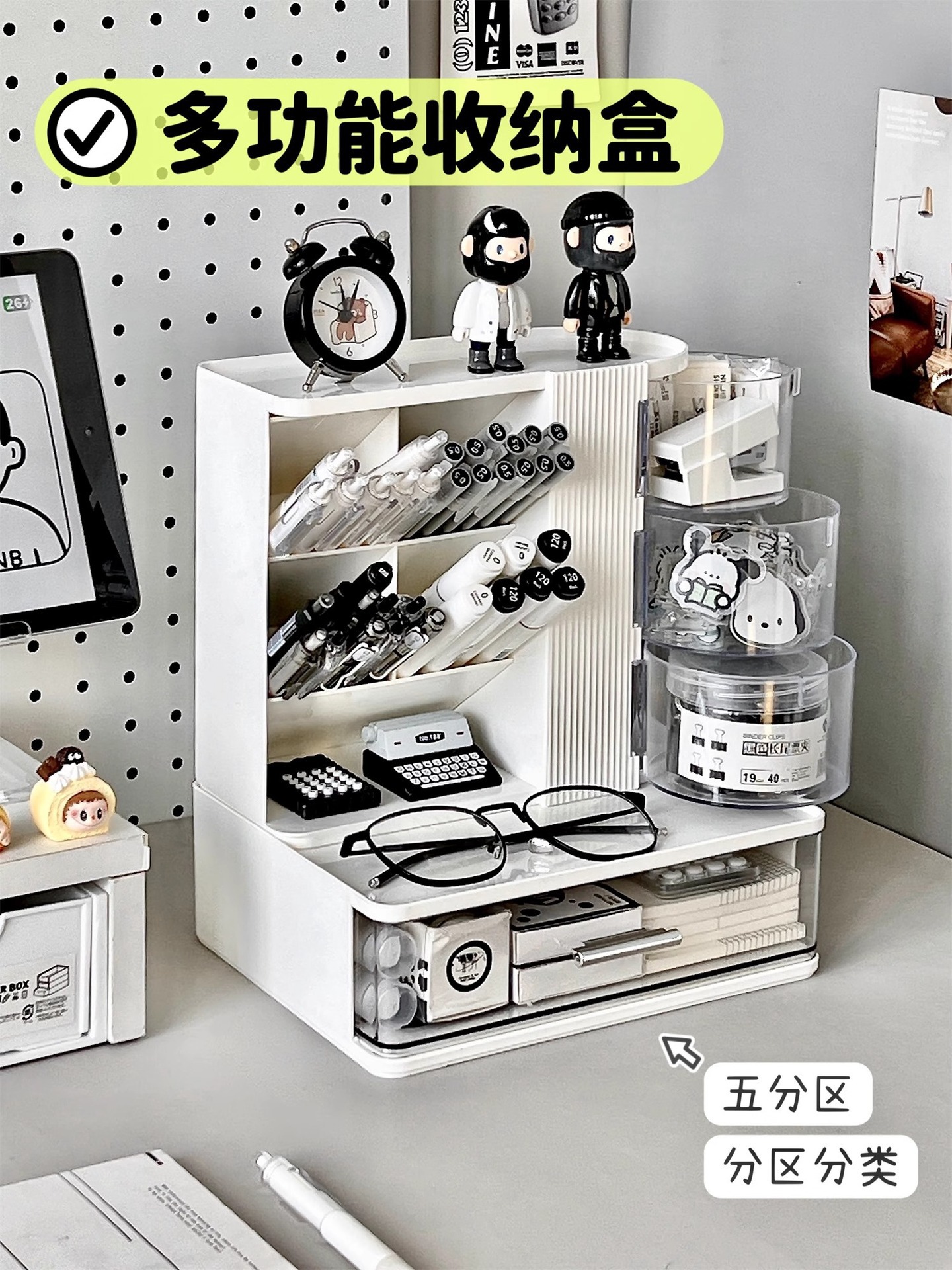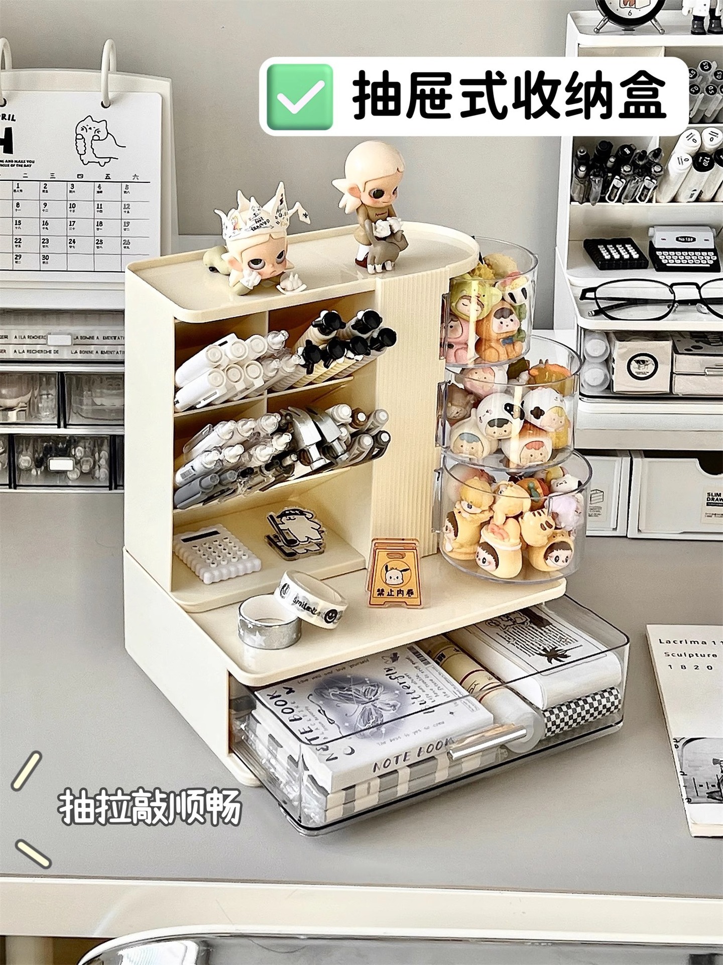桌面收纳盒抽屉式学生书桌透明文具置物架多功能笔筒小杂物整理盒