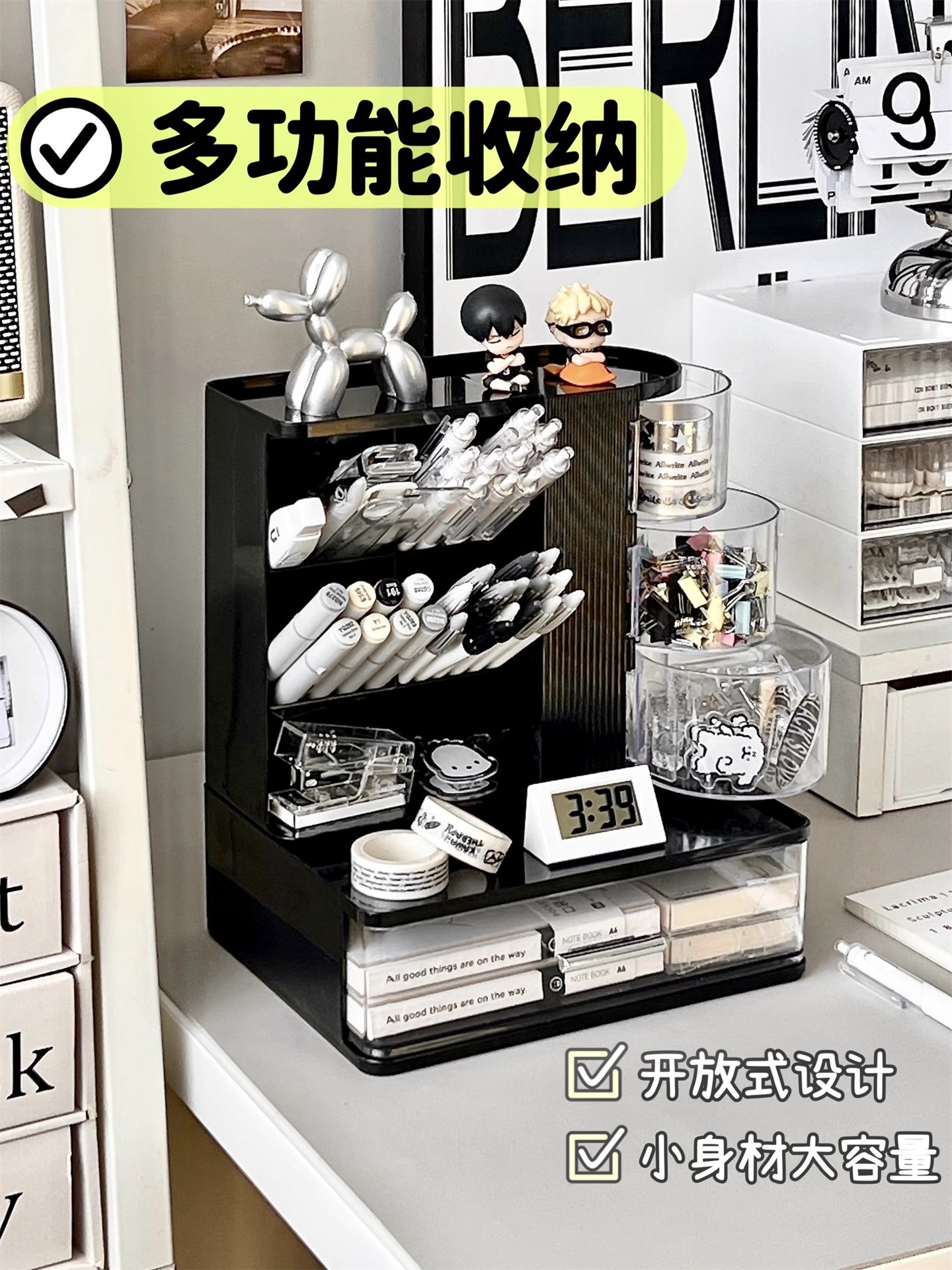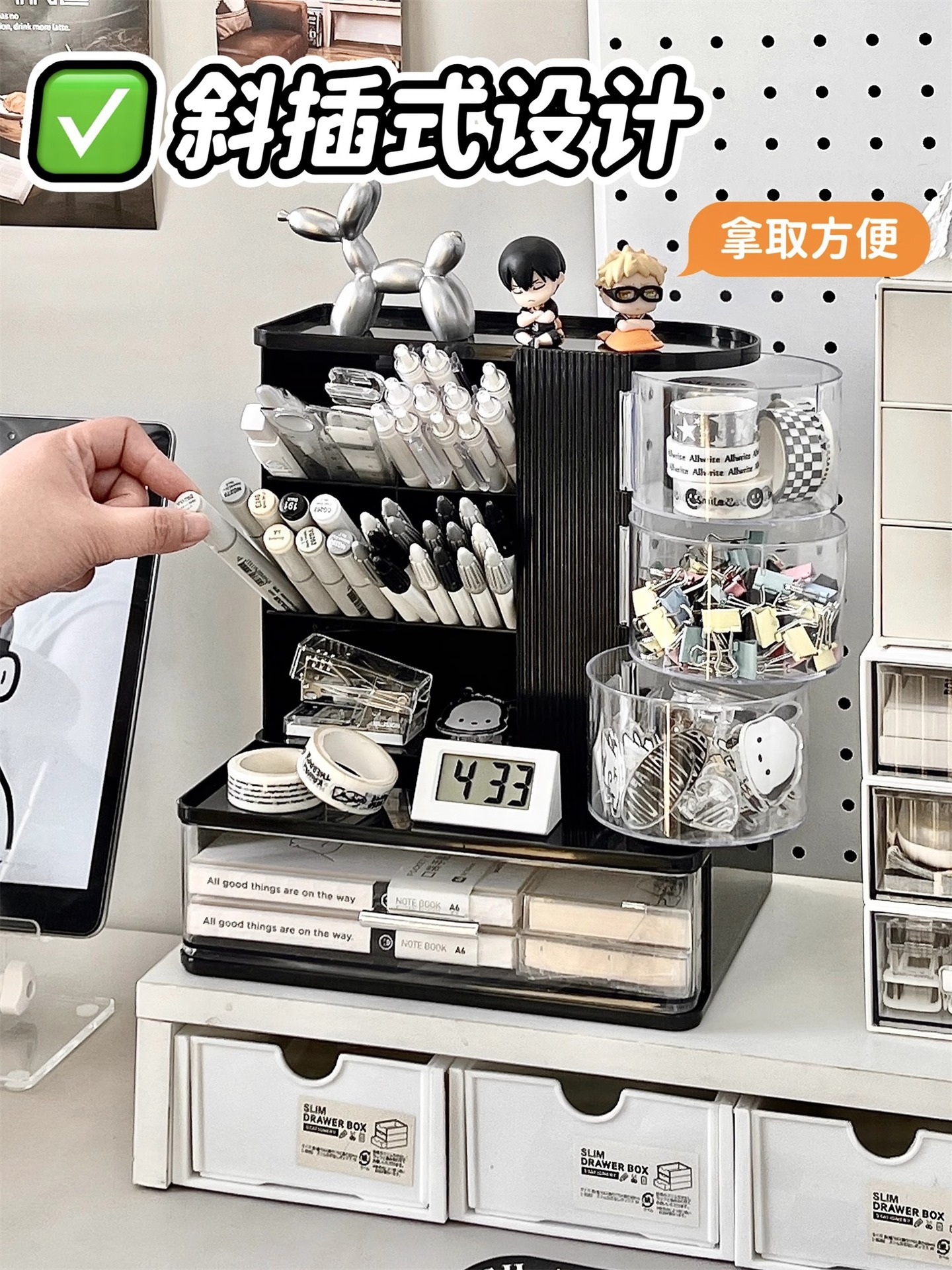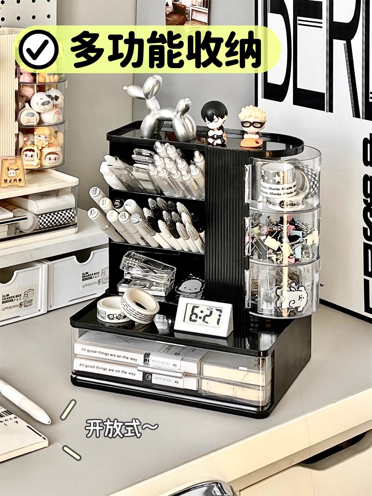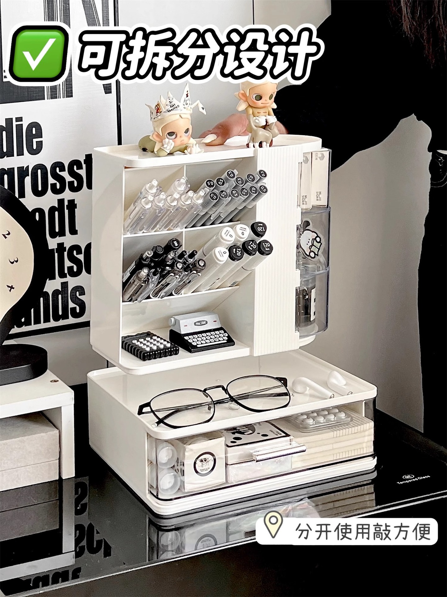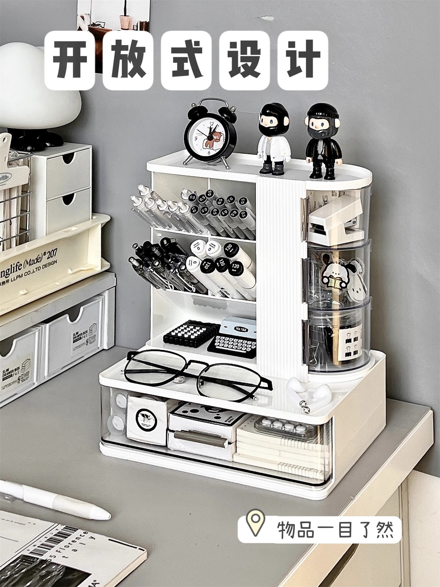 桌面收纳盒抽屉式学生书桌透明文具置物架多功能笔筒小杂物整理盒
