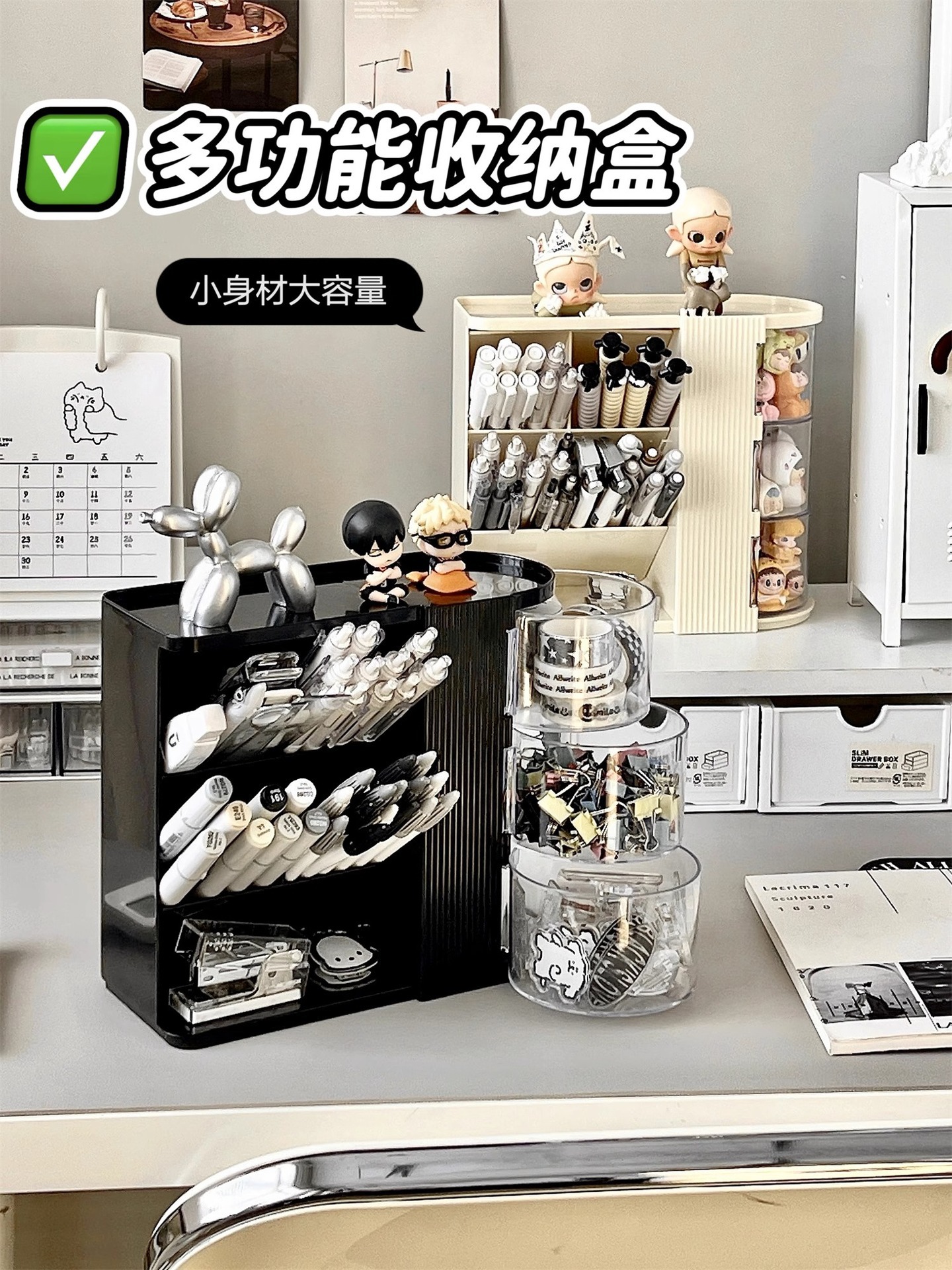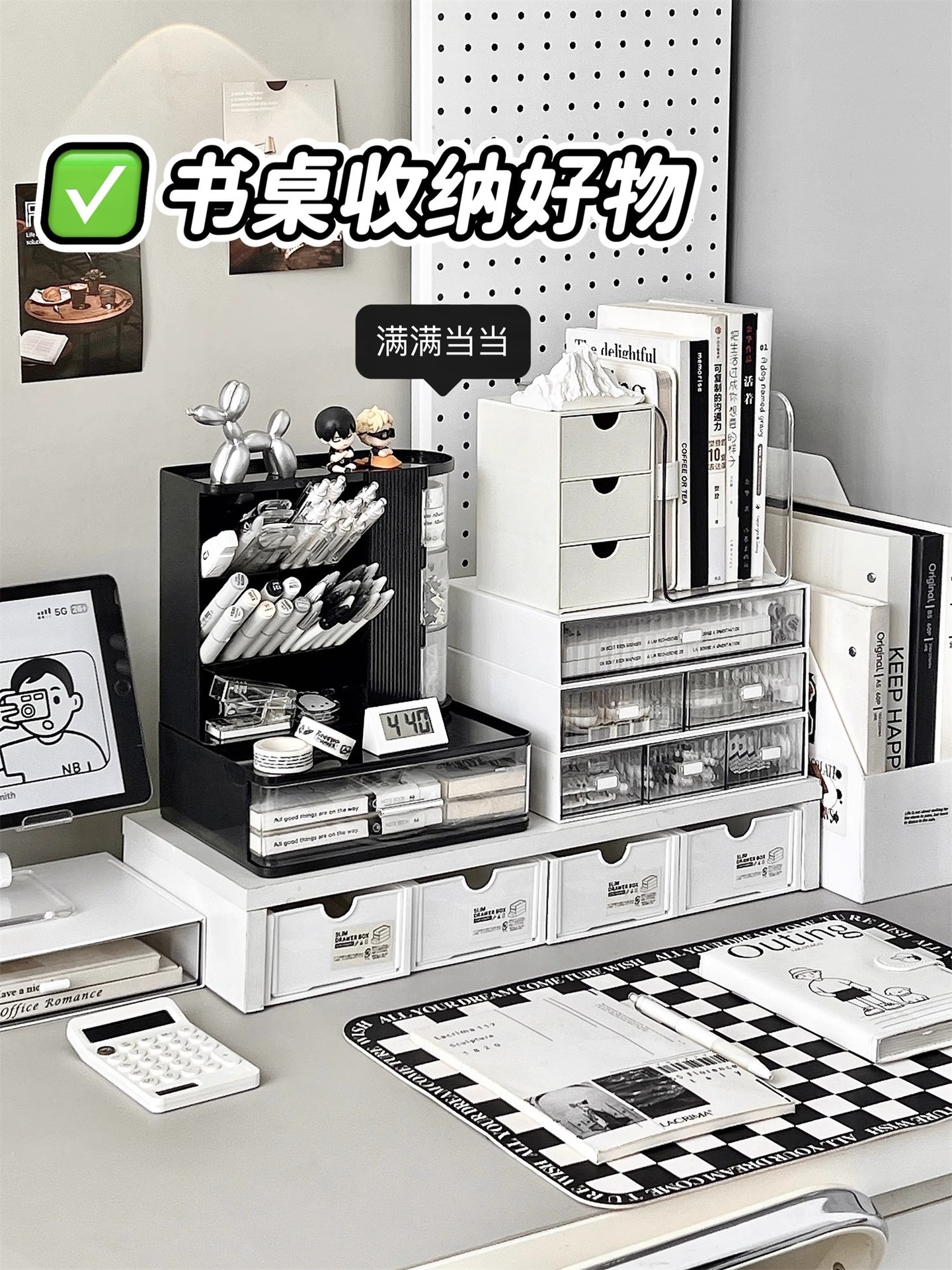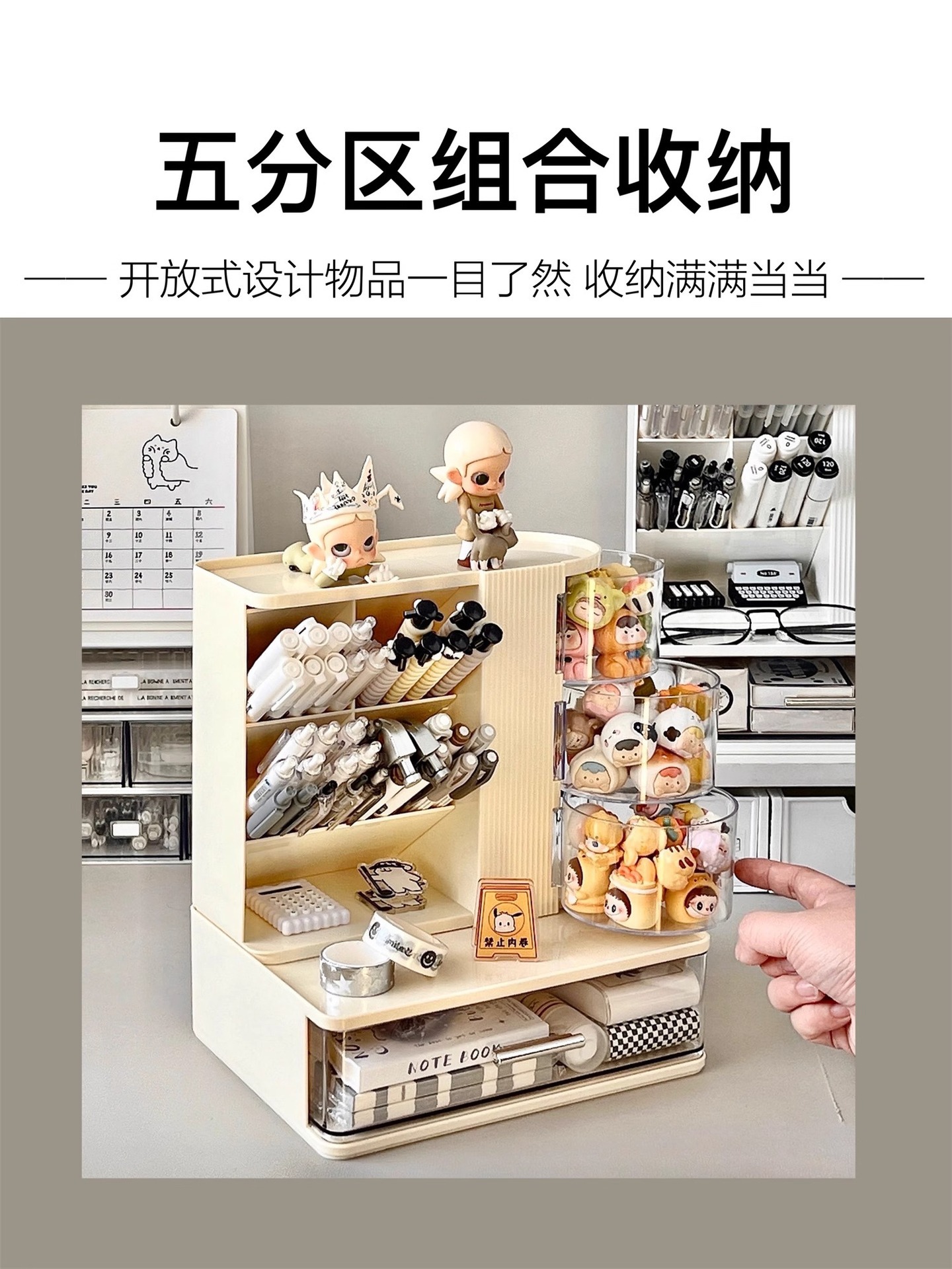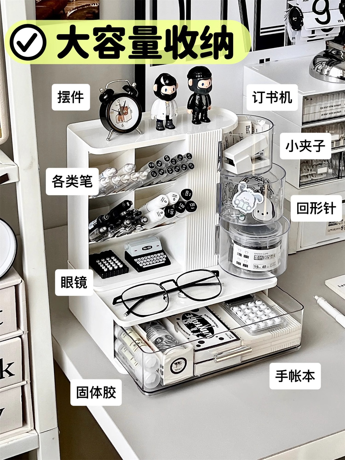 桌面收纳盒抽屉式学生书桌透明文具置物架多功能笔筒小杂物整理盒
