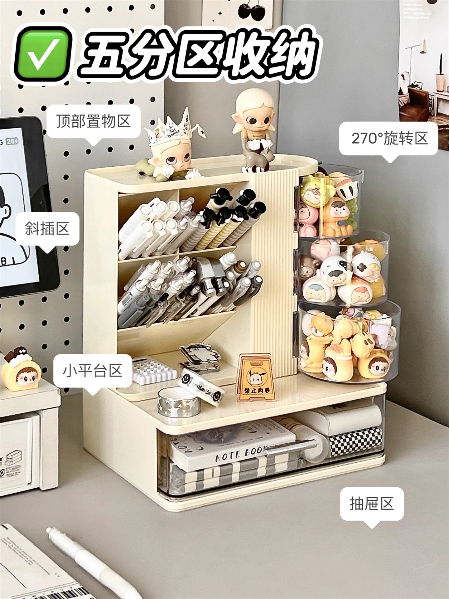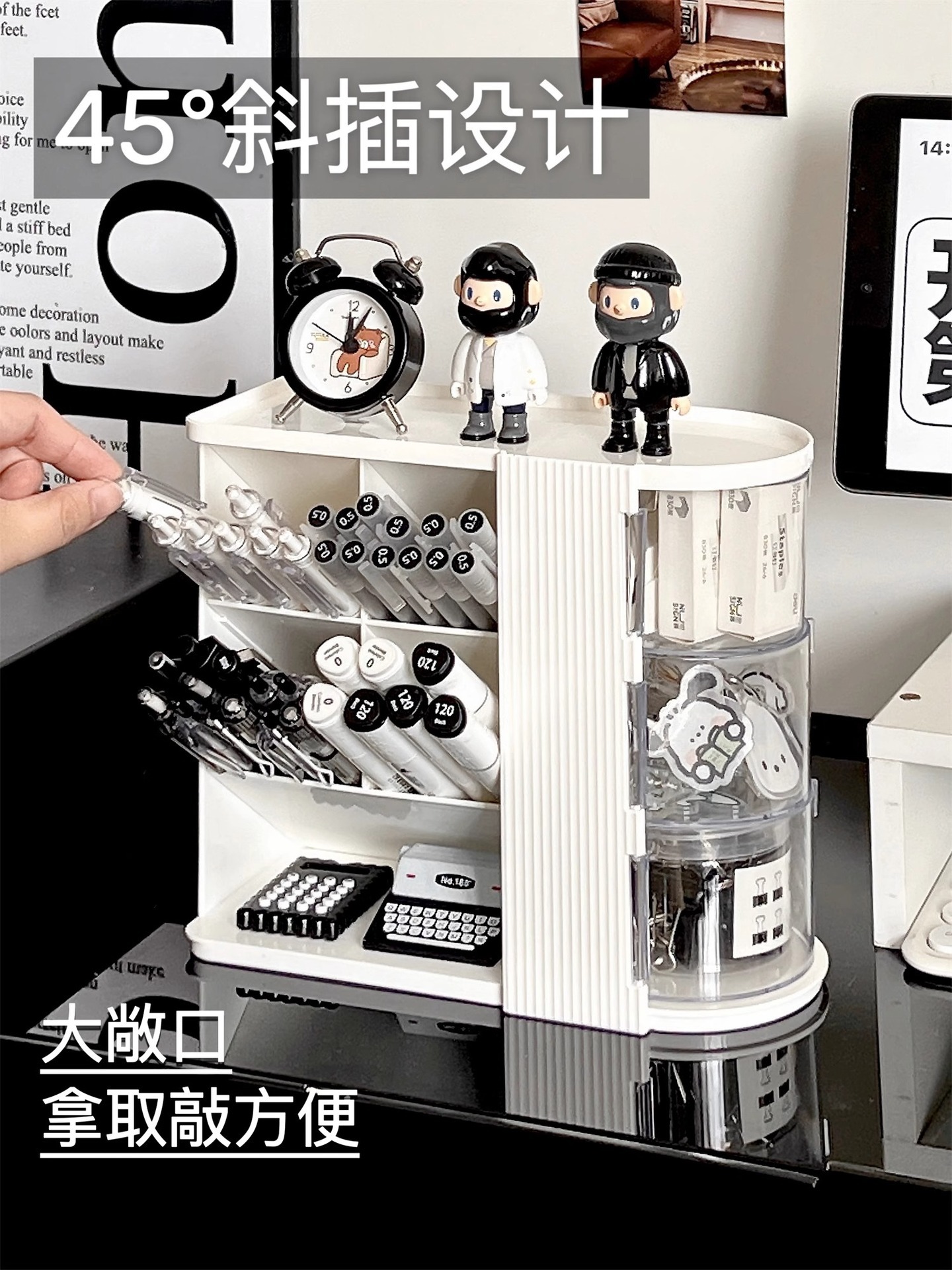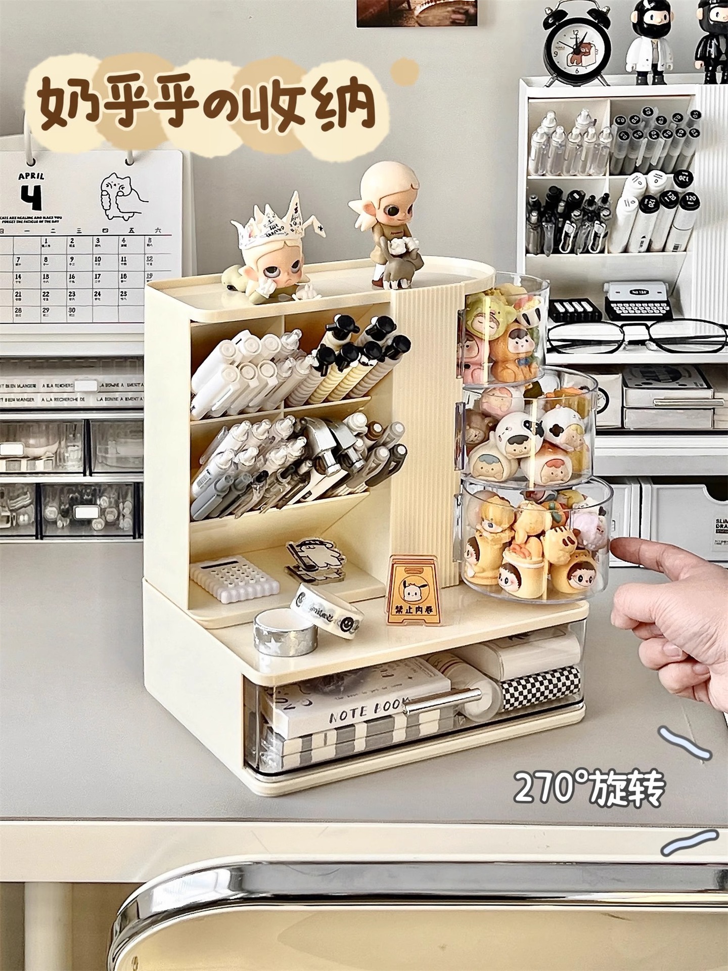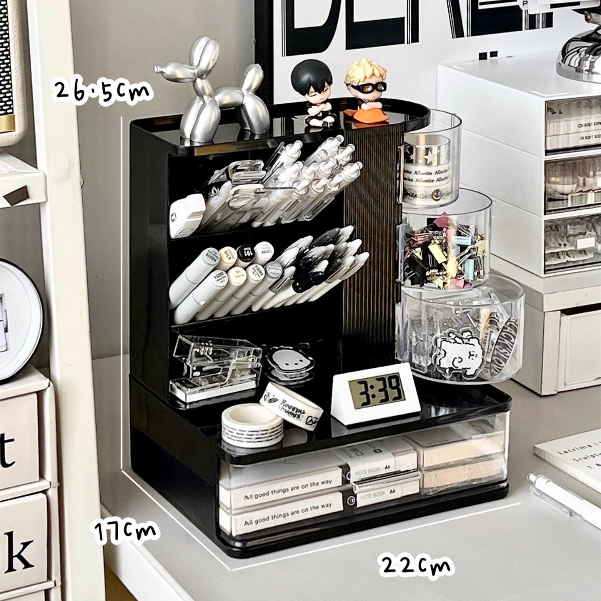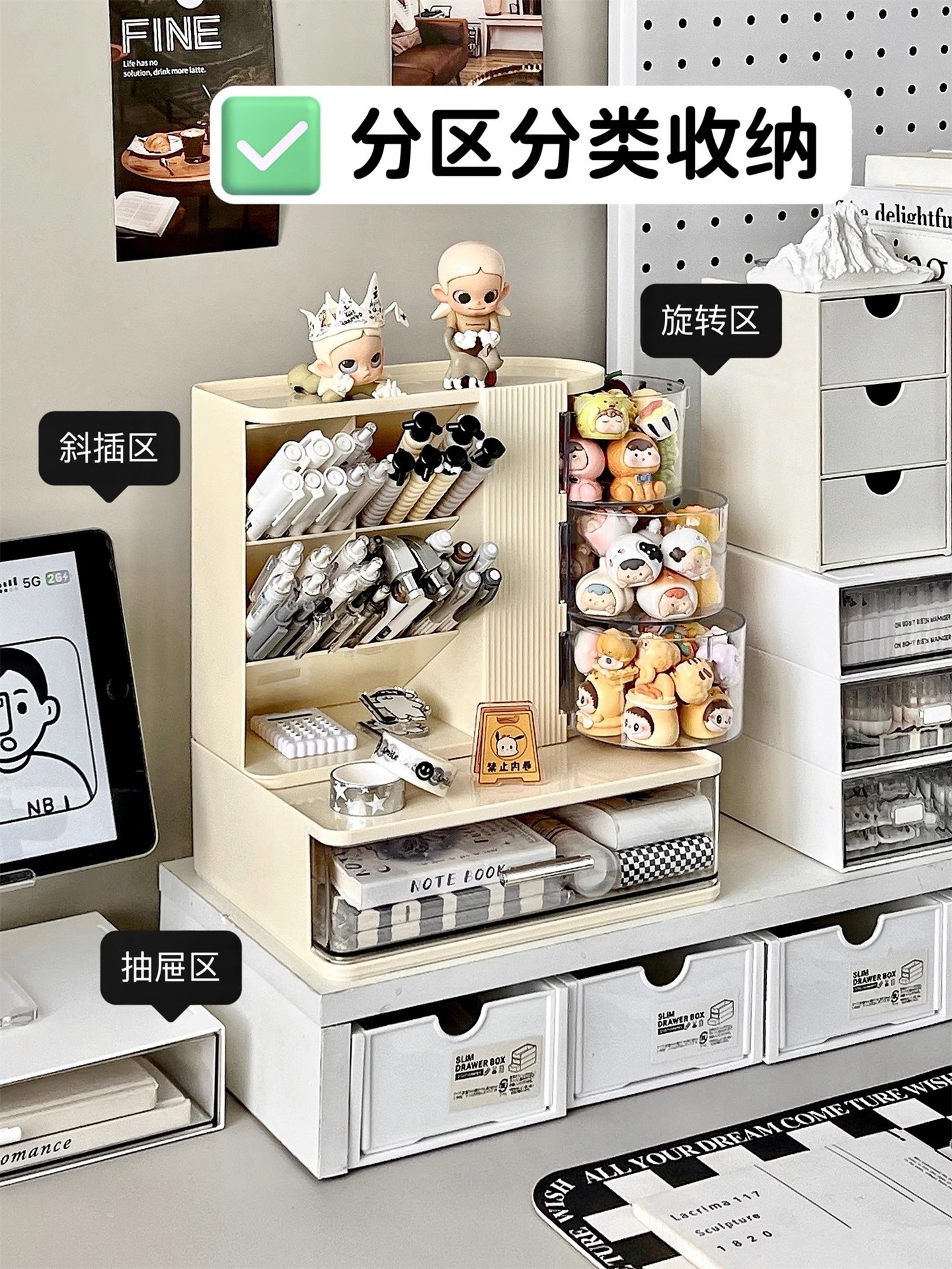 桌面收纳盒抽屉式学生书桌透明文具置物架多功能笔筒小杂物整理盒