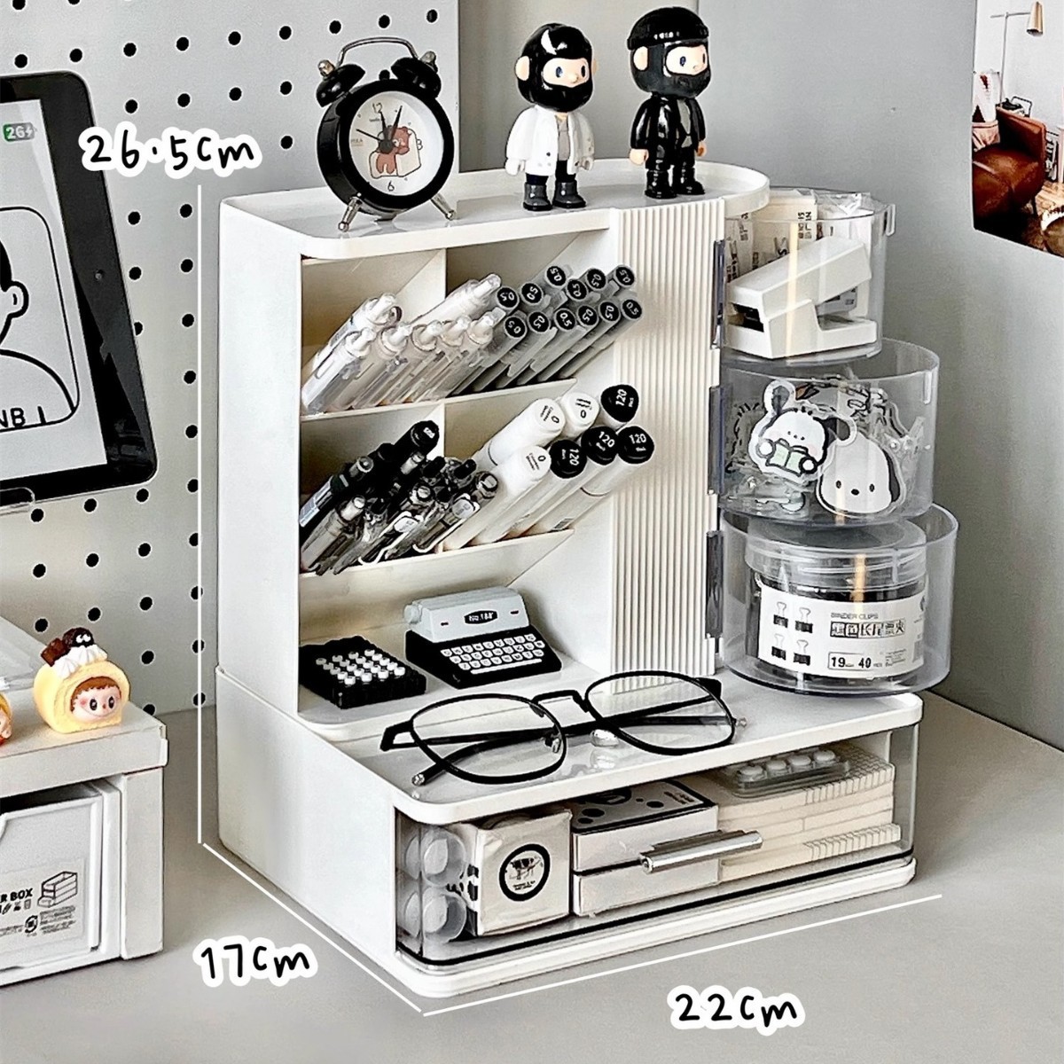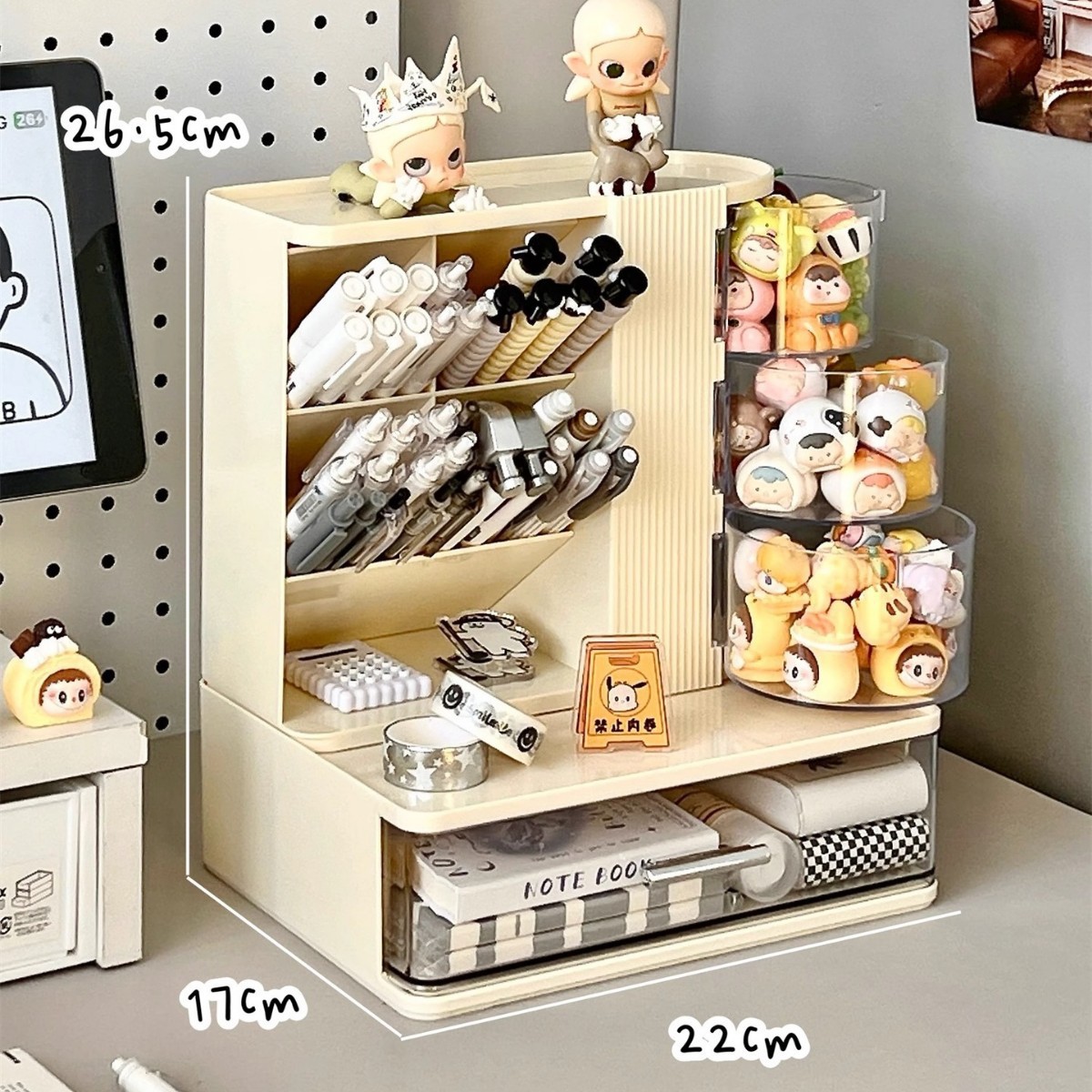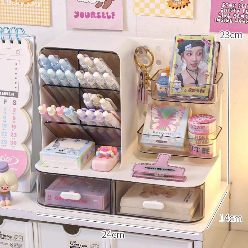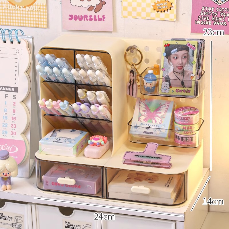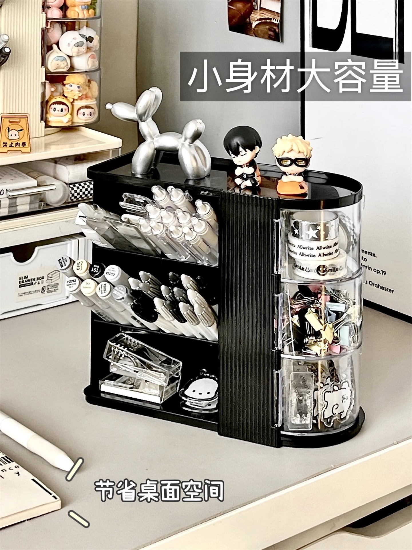 桌面收纳盒抽屉式学生书桌透明文具置物架多功能笔筒小杂物整理盒