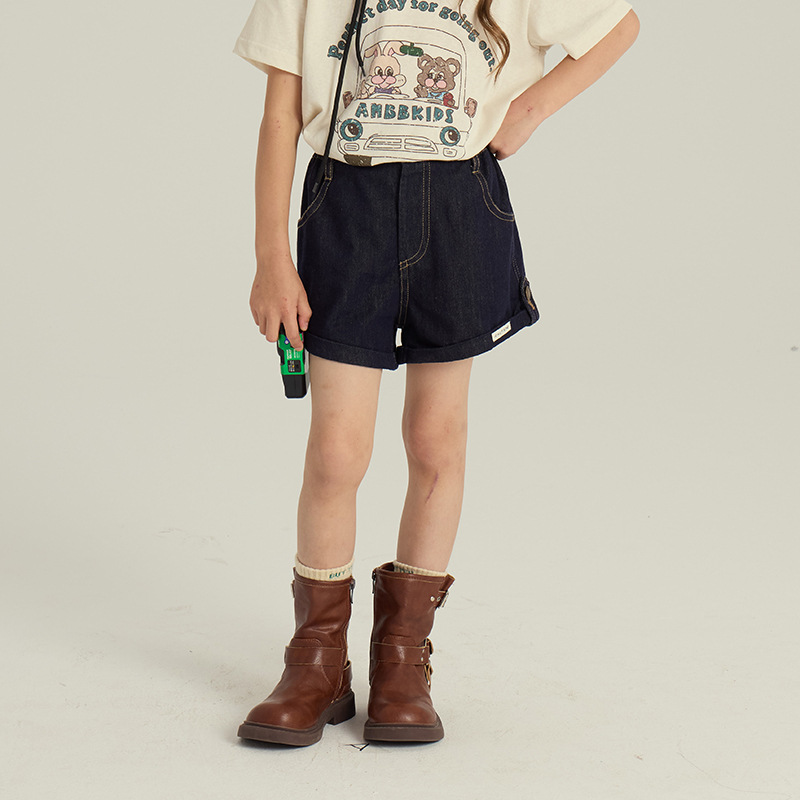 Elmo Beibei Girls 한국 패션 컬링 데님 반바지 2025 여름 어린이 캐주얼 다목적 라벨 핫팬츠스토어 가기