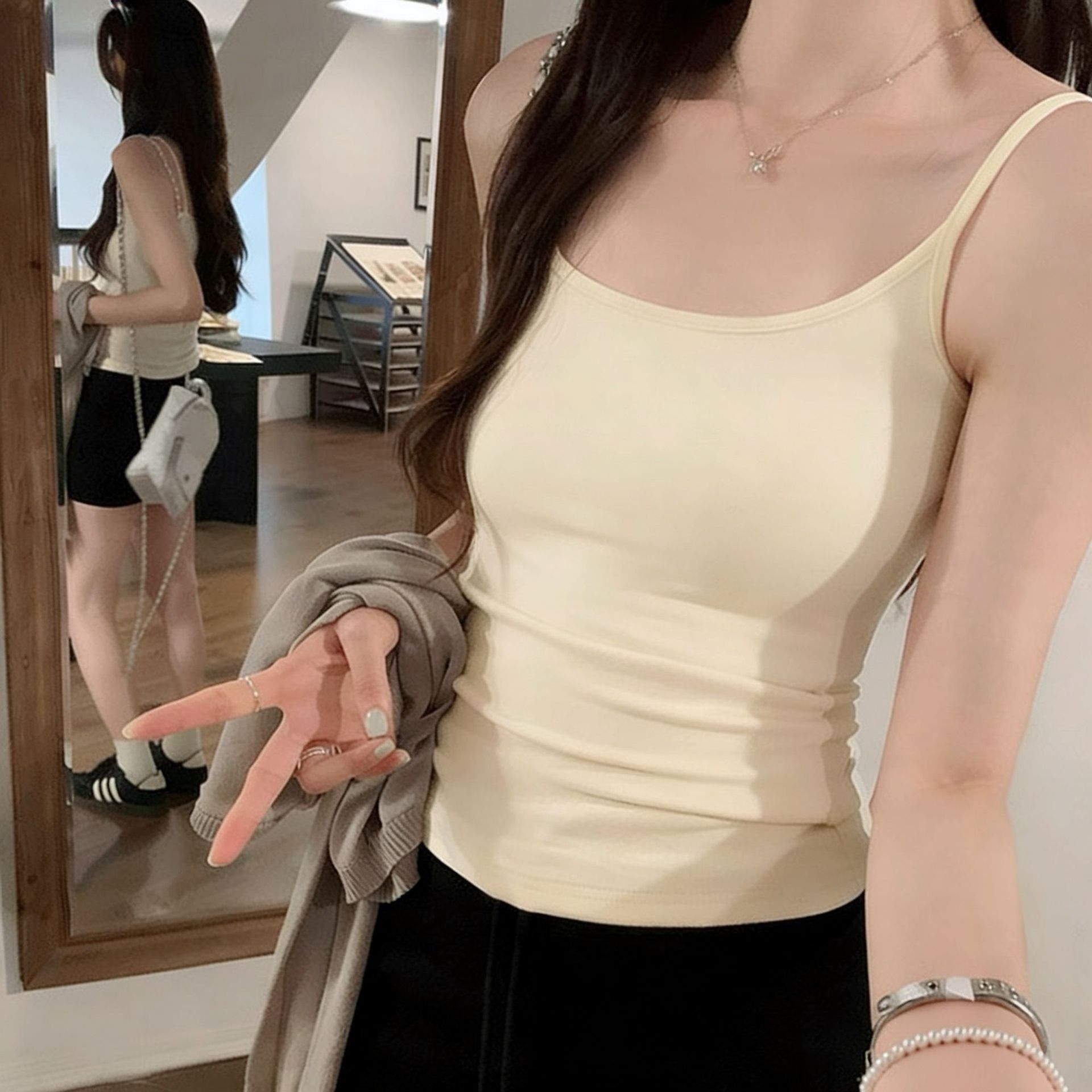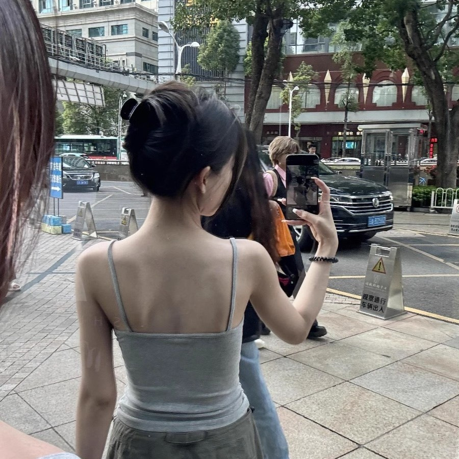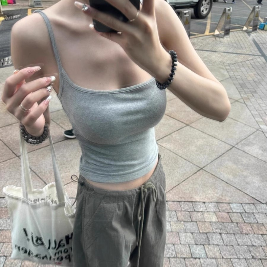 가슴 패드를 가진 순수한 향신료 소녀 작은 카미솔 여성의 여름 외부 착용 아름다운 등 슬림 적합 내베이스 아름다운 민소매 탑스토어 가기