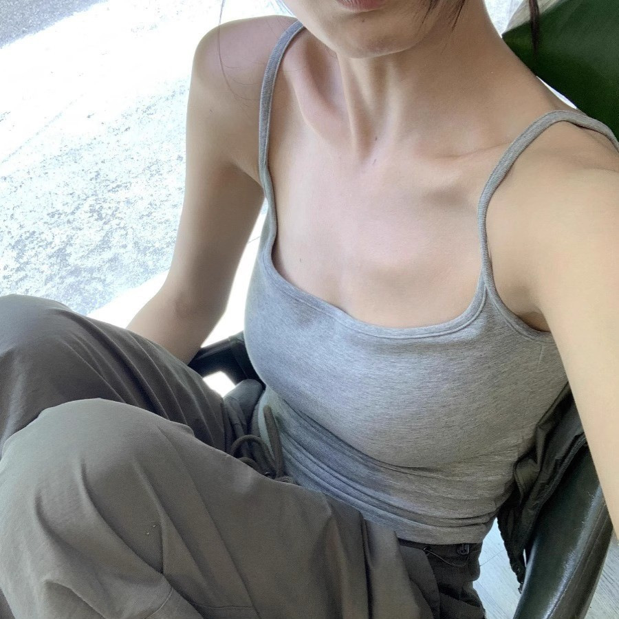가슴 패드를 가진 순수한 향신료 소녀 작은 카미솔 여성의 여름 외부 착용 아름다운 등 슬림 적합 내베이스 아름다운 민소매 탑
