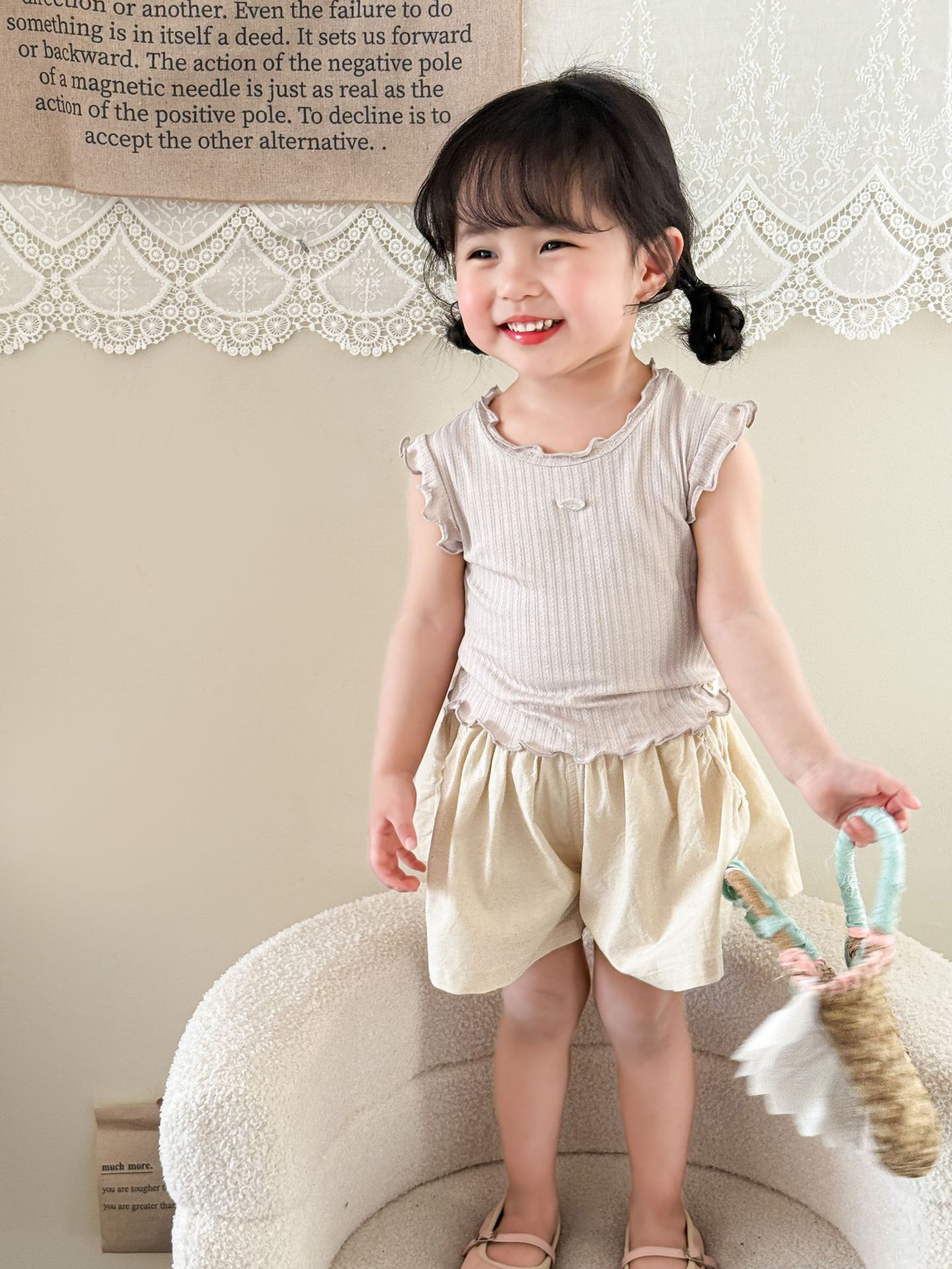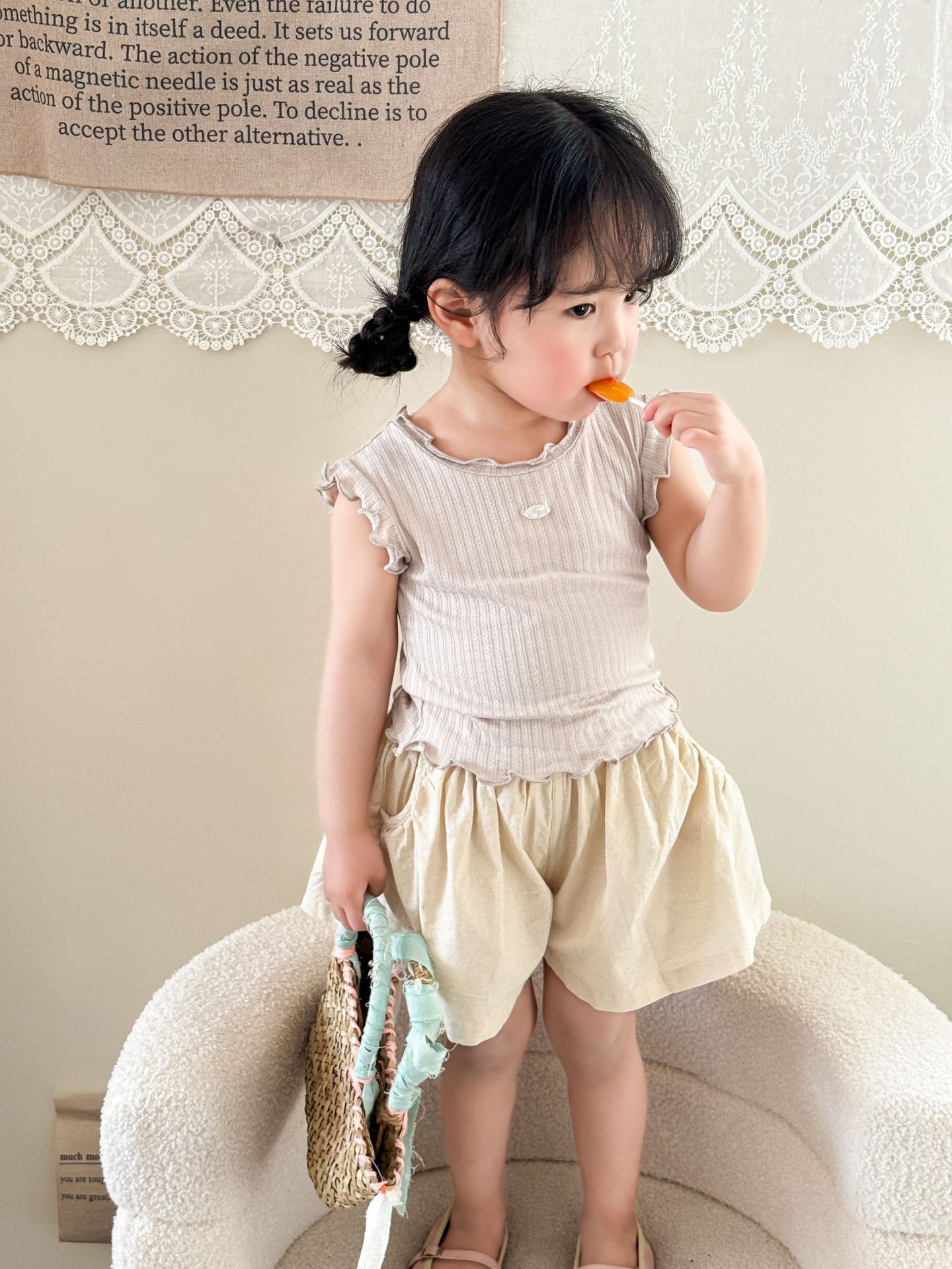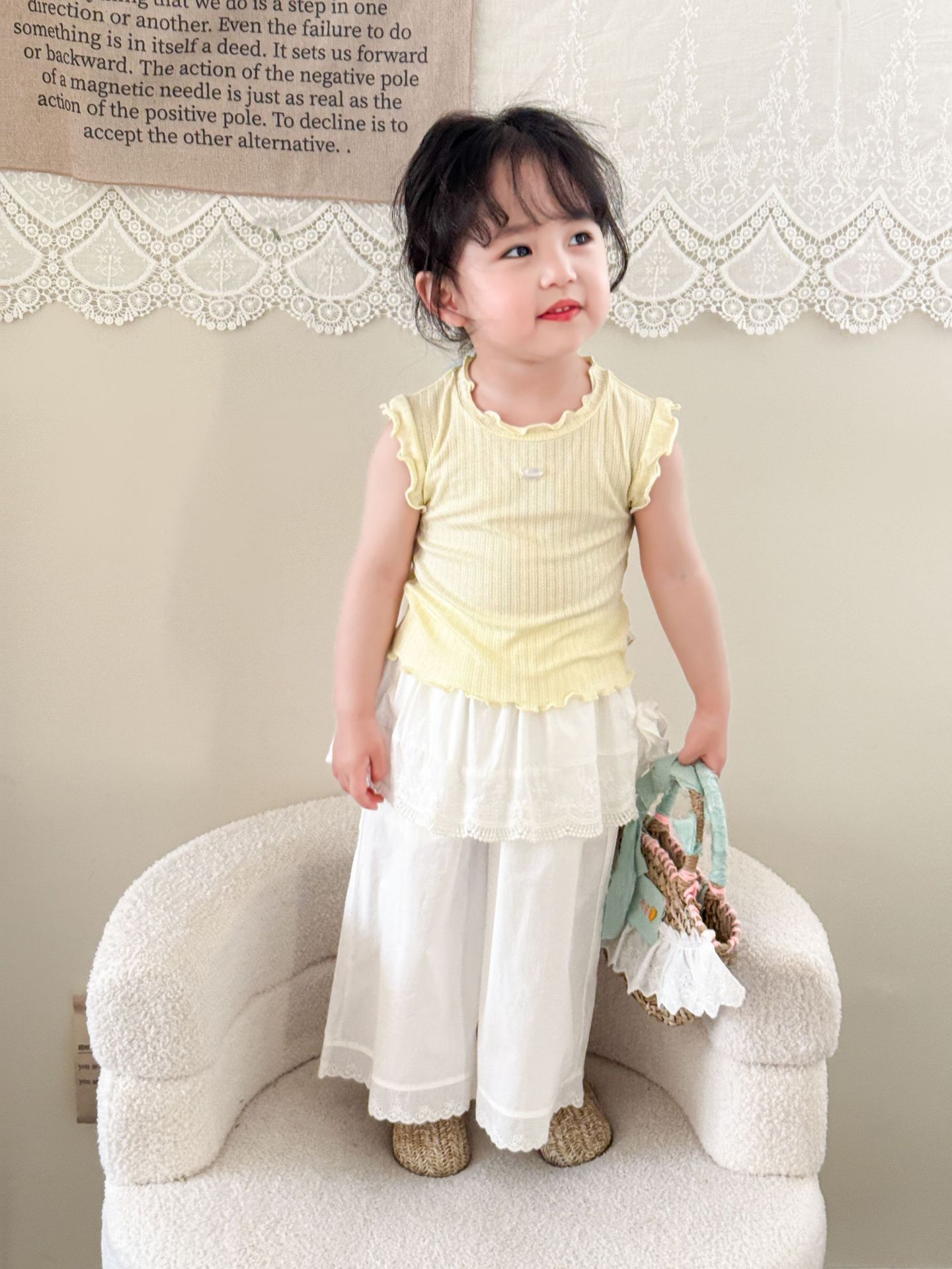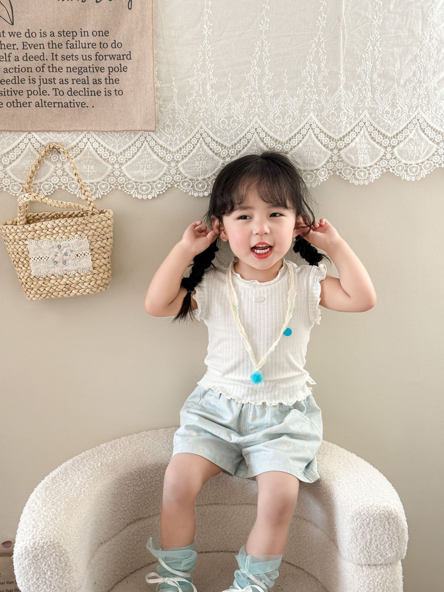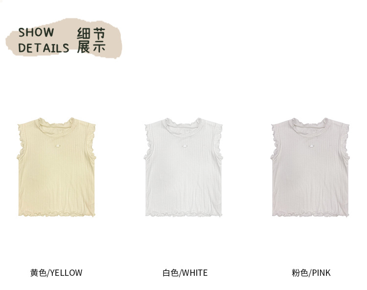 사탕 수수 배 아동복 여름 얇은 2025 새로운 어린이 귀 테두리 최고 아기 클래스 아기 옷스토어 가기