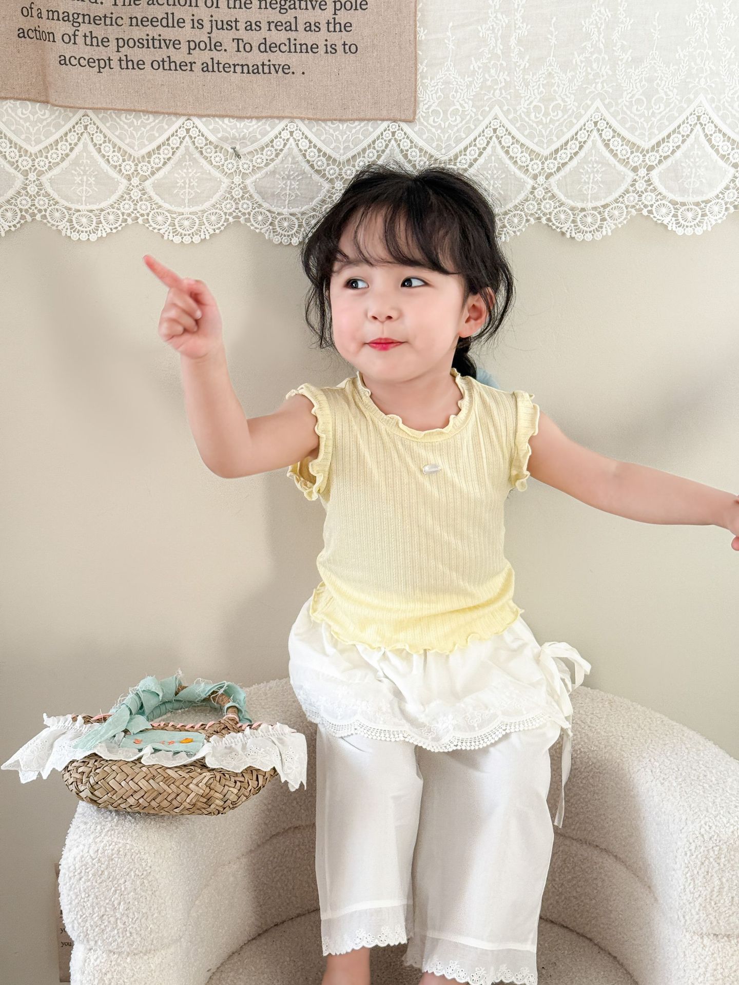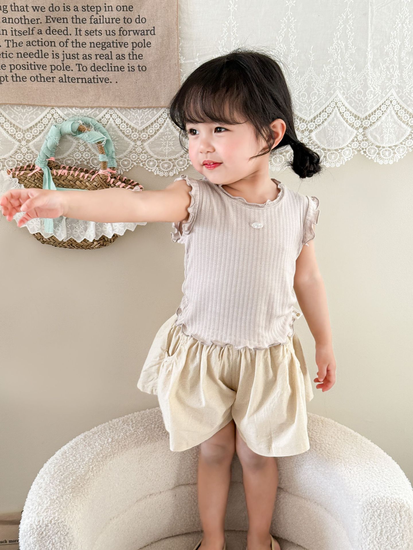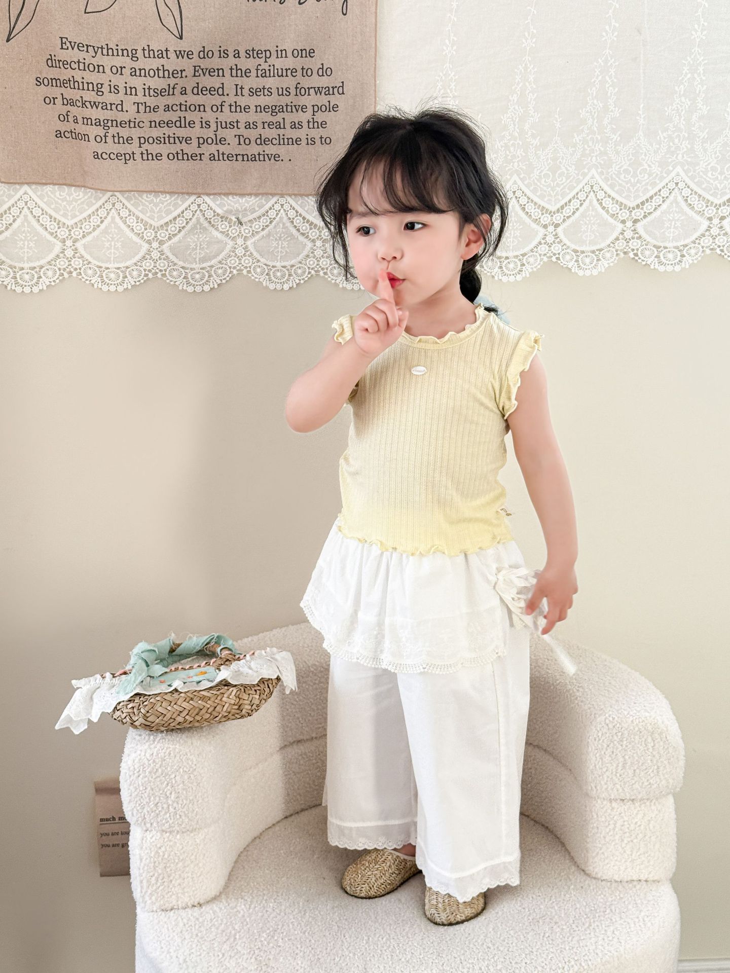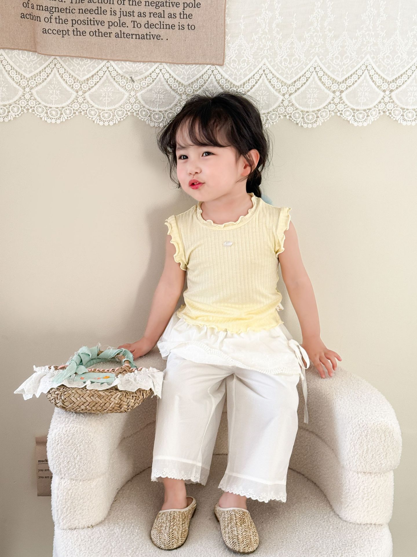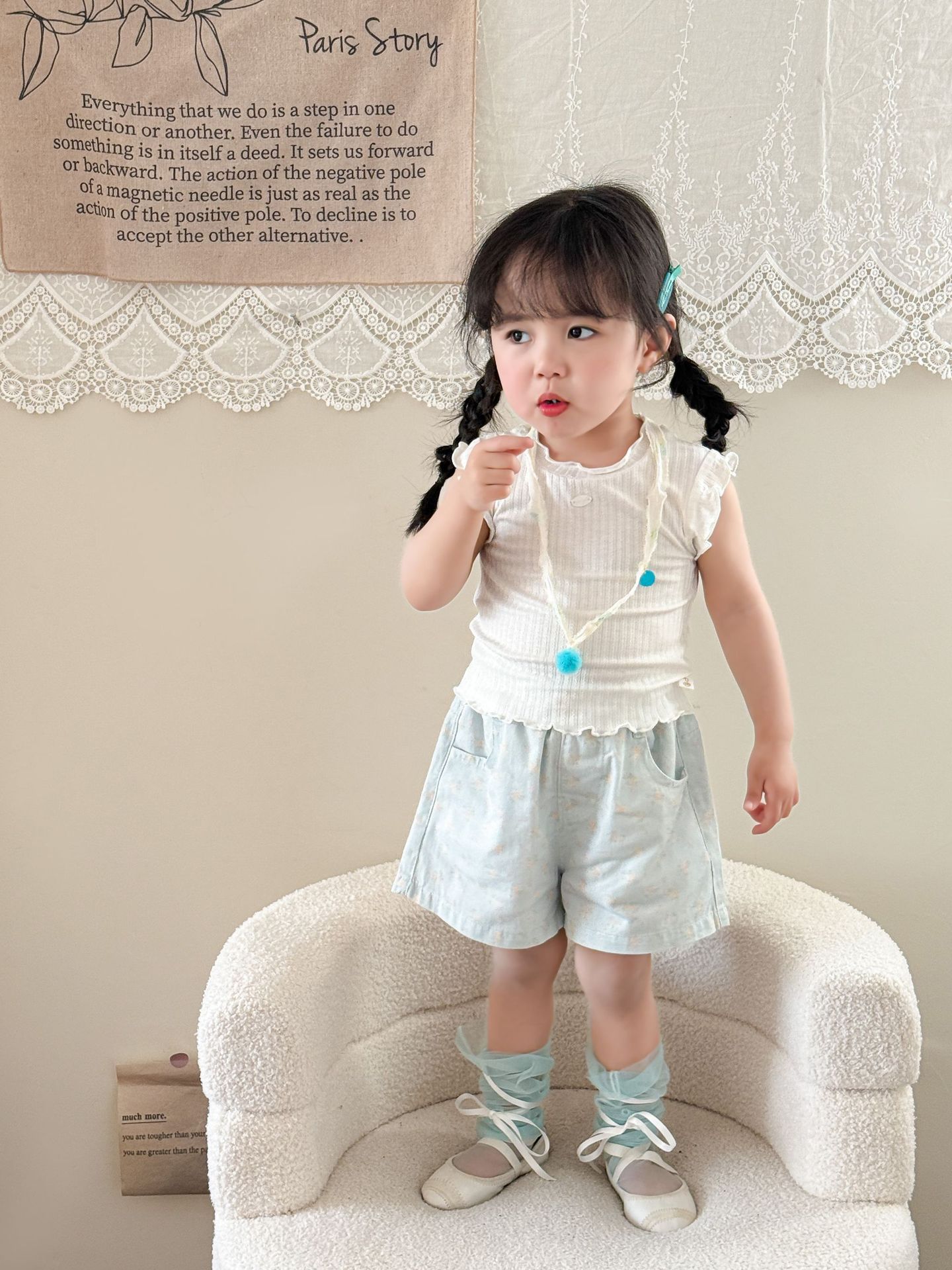 사탕 수수 배 아동복 여름 얇은 2025 새로운 어린이 귀 테두리 최고 아기 클래스 아기 옷스토어 가기