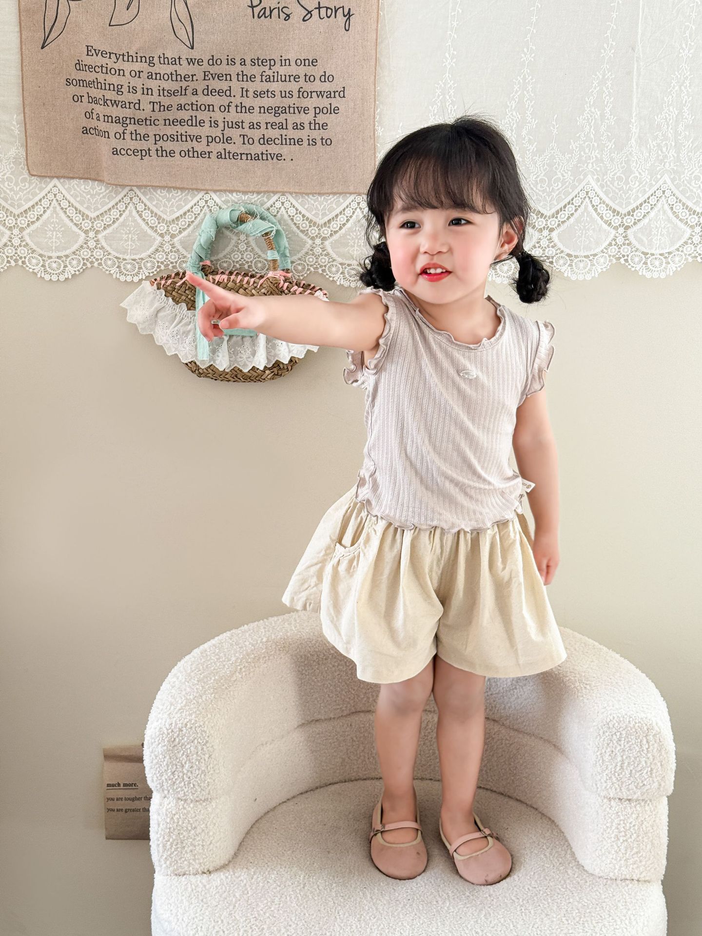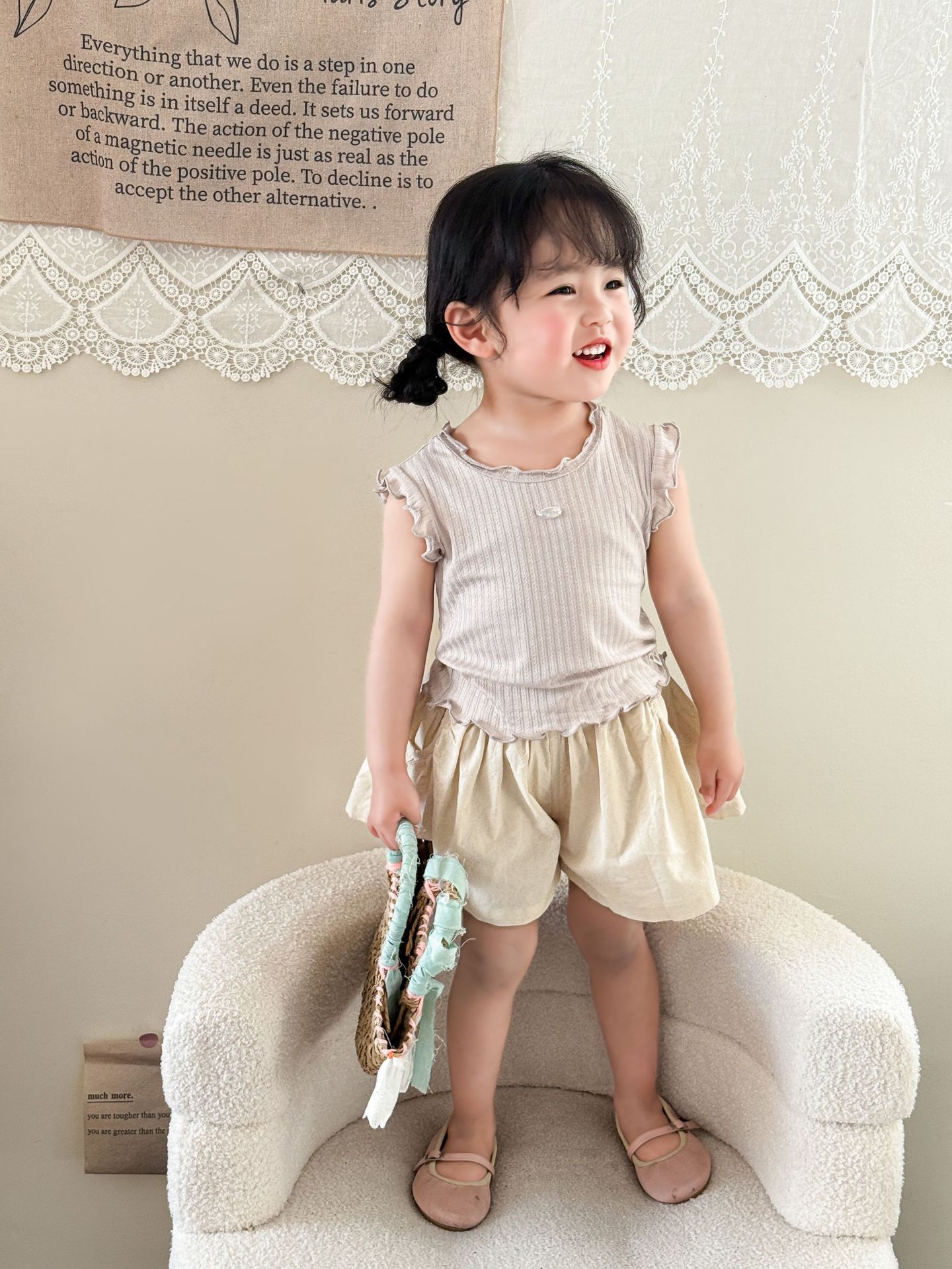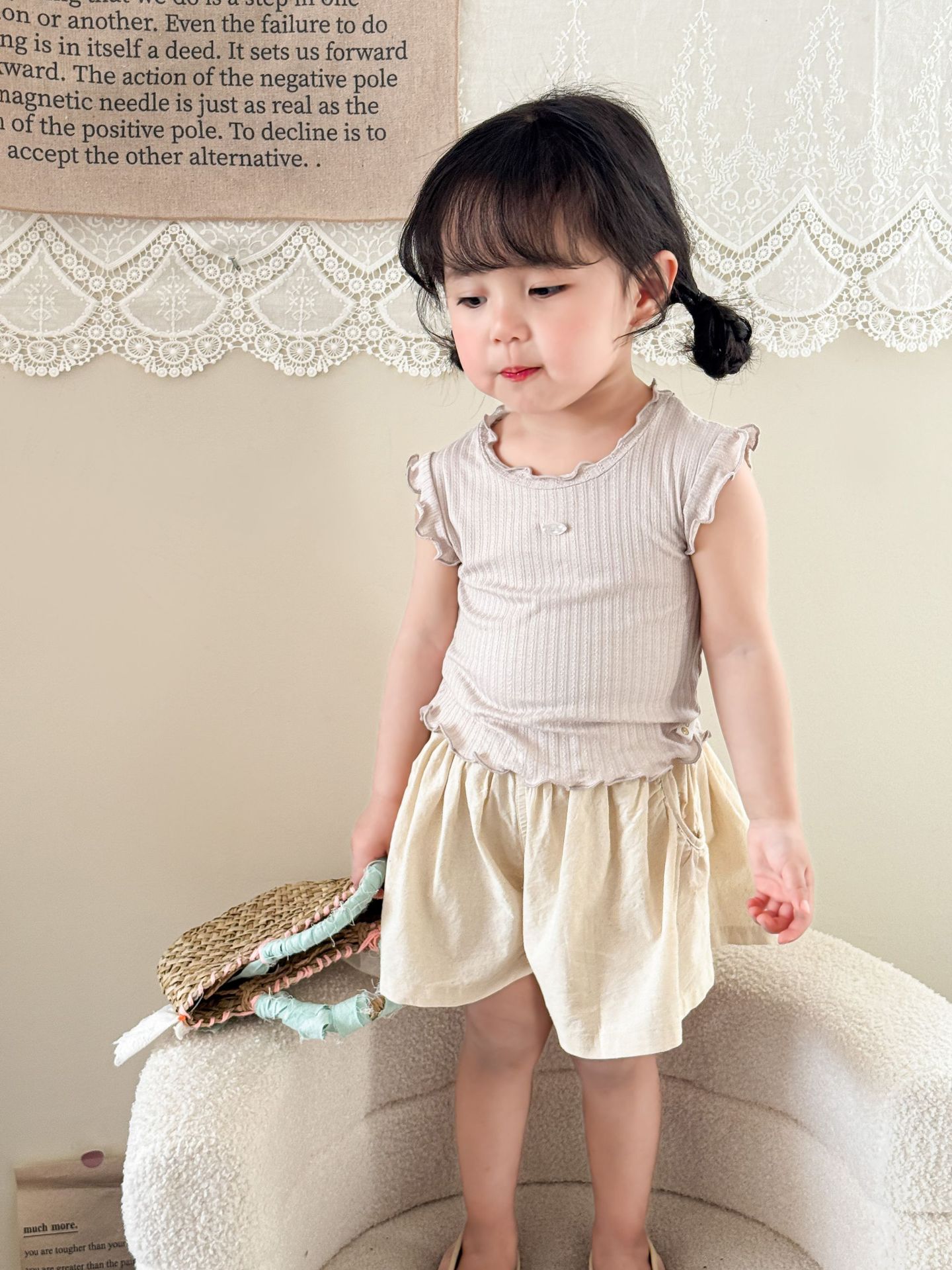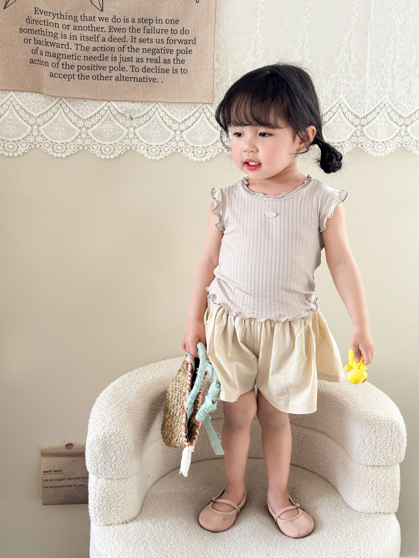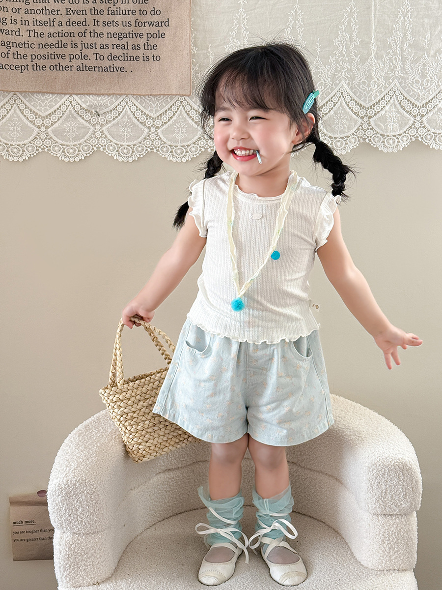 사탕 수수 배 아동복 여름 얇은 2025 새로운 어린이 귀 테두리 최고 아기 클래스 아기 옷스토어 가기