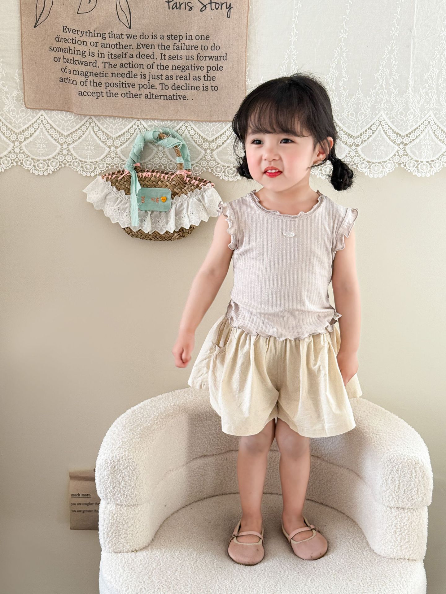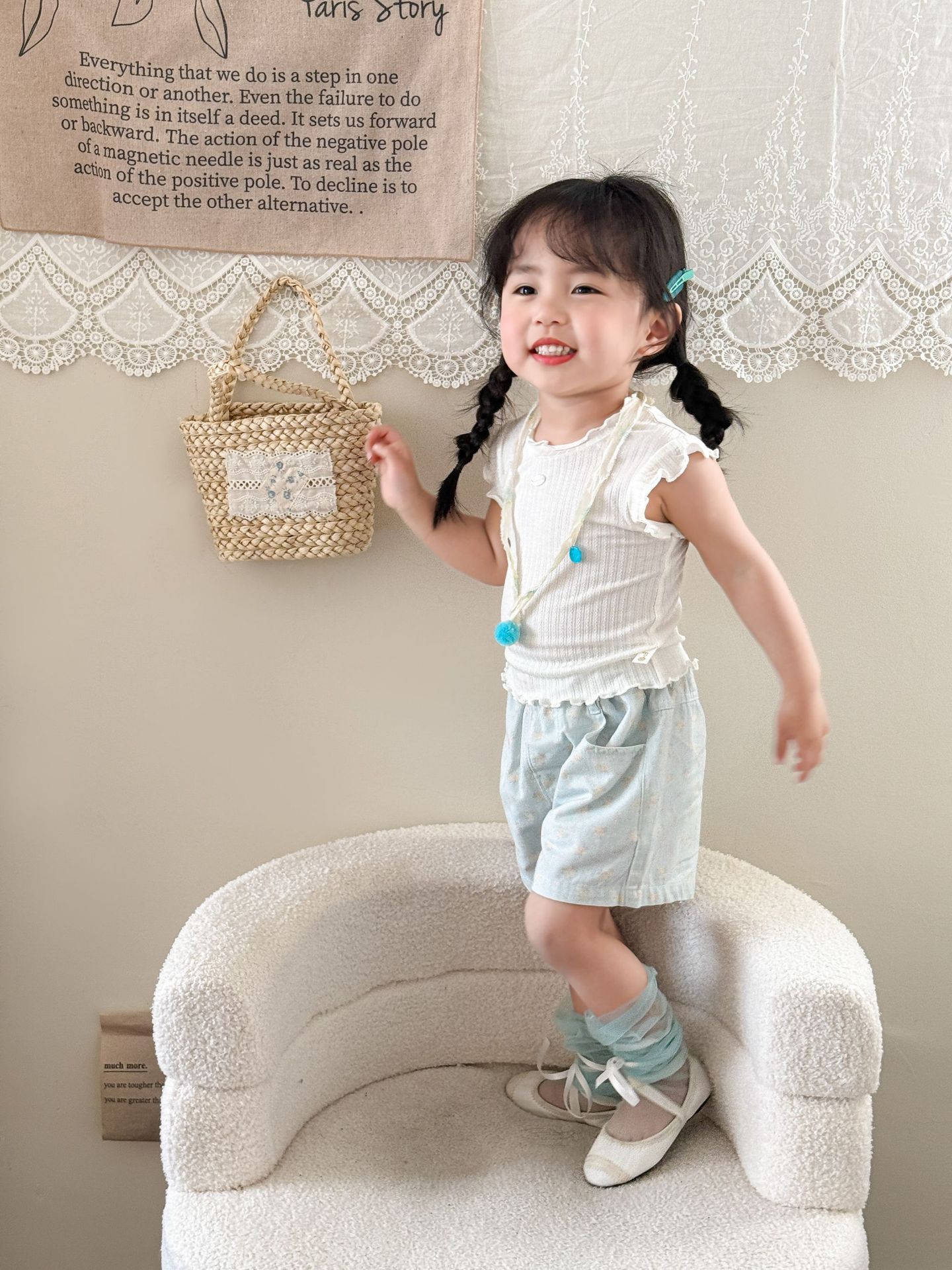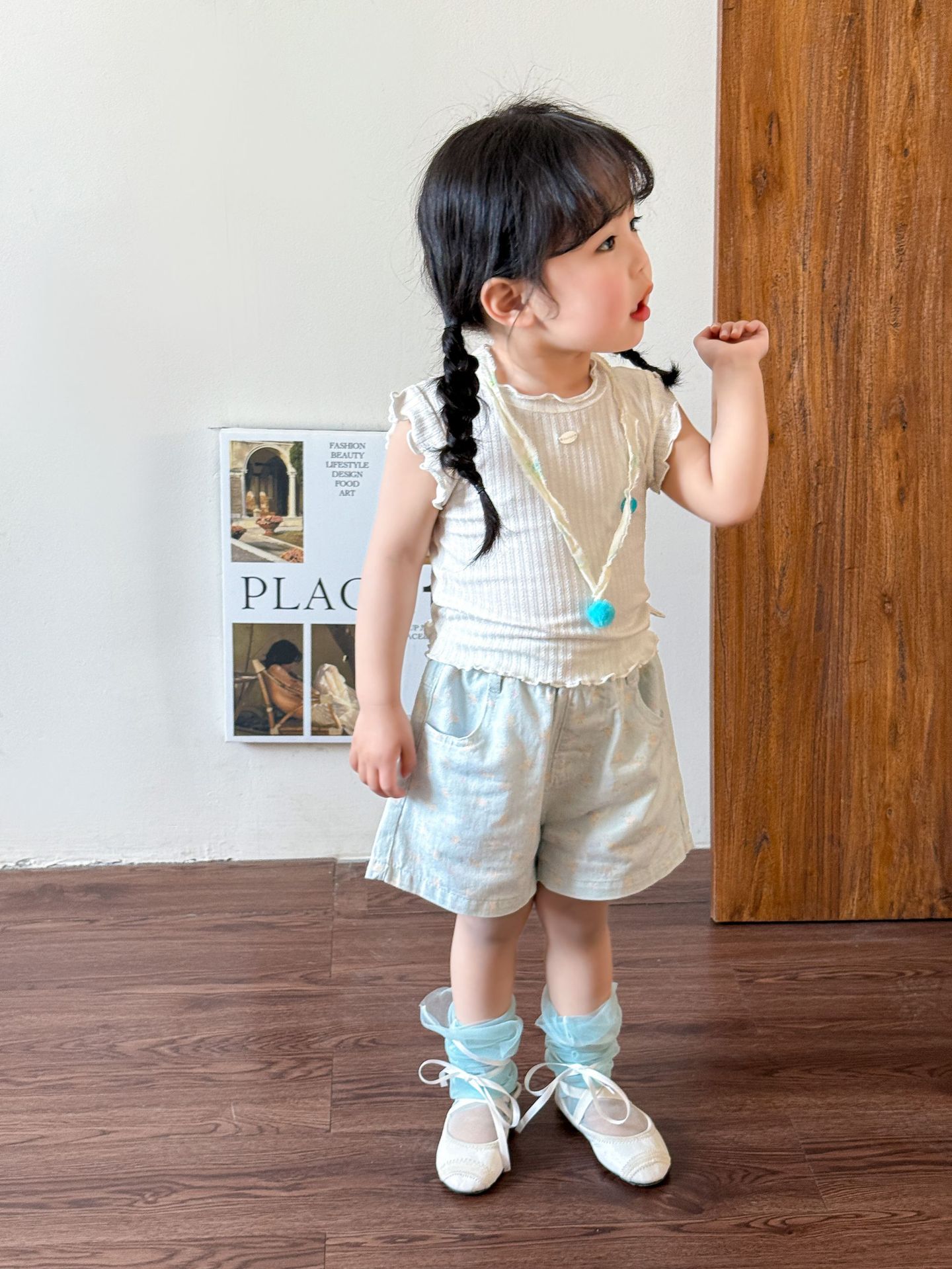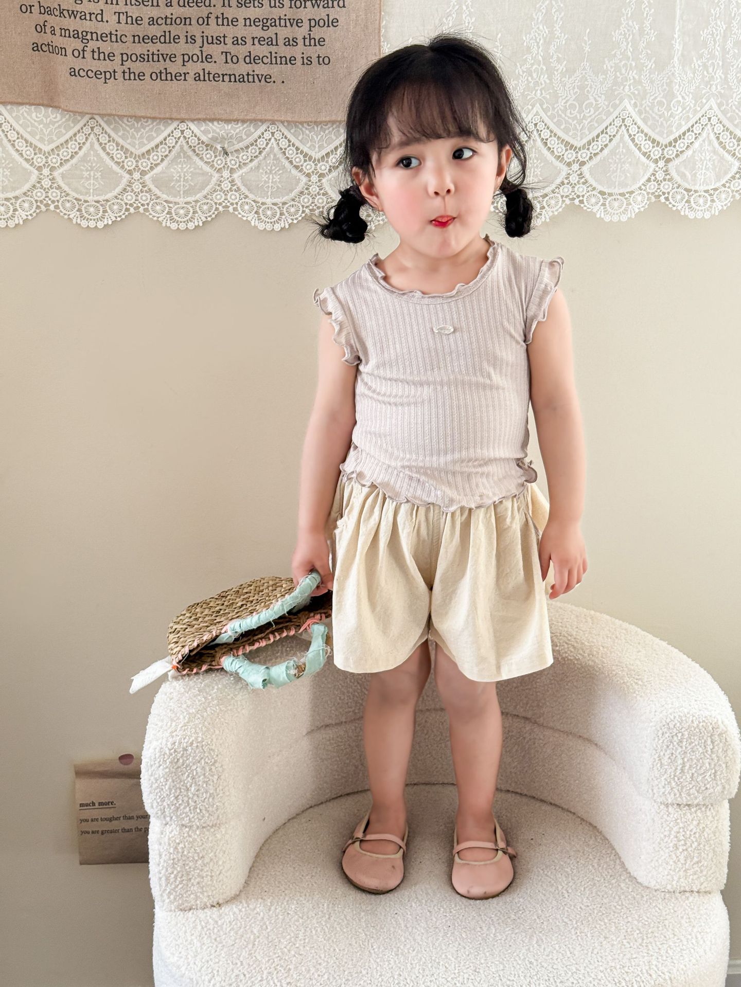사탕 수수 배 아동복 여름 얇은 2025 새로운 어린이 귀 테두리 최고 아기 클래스 아기 옷스토어 가기