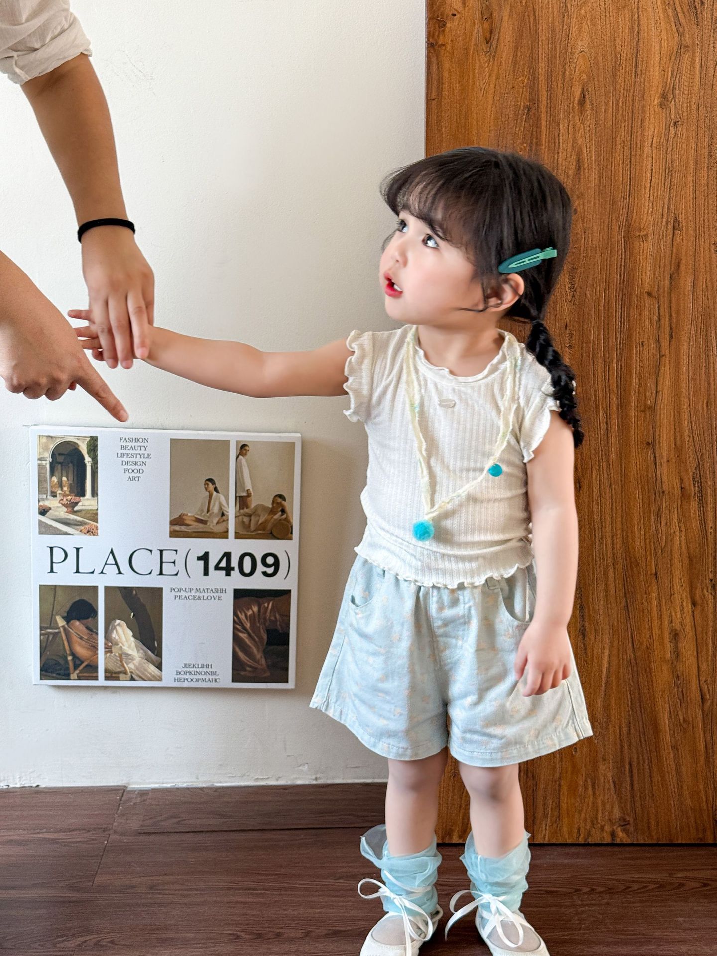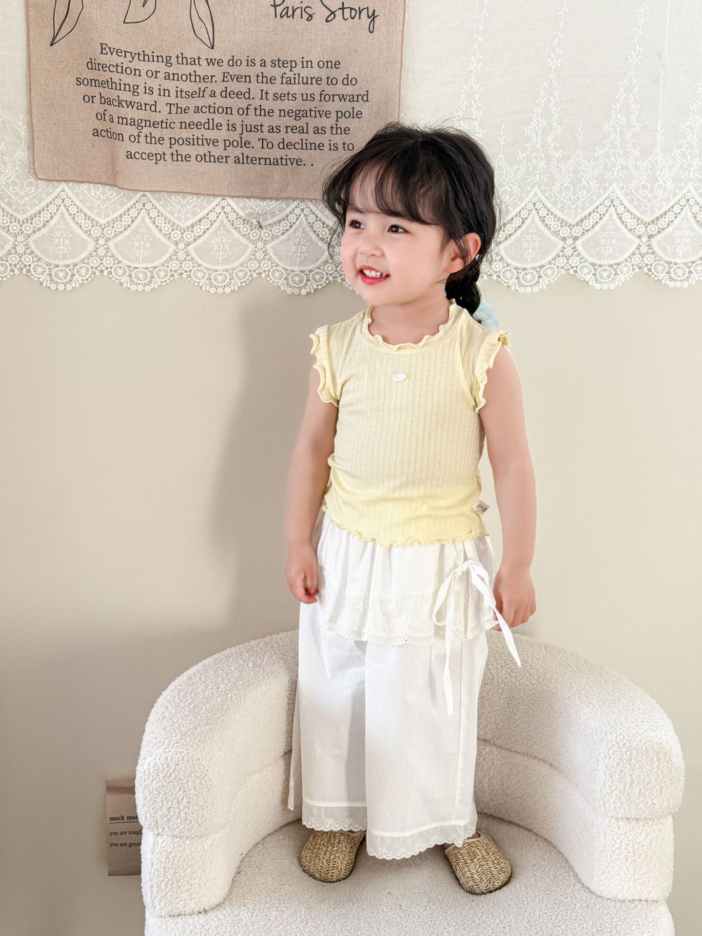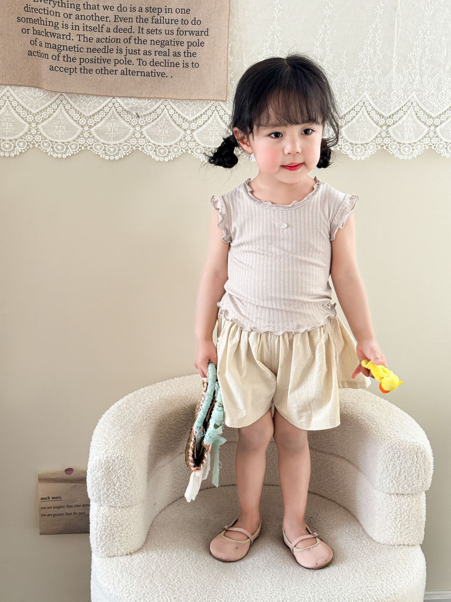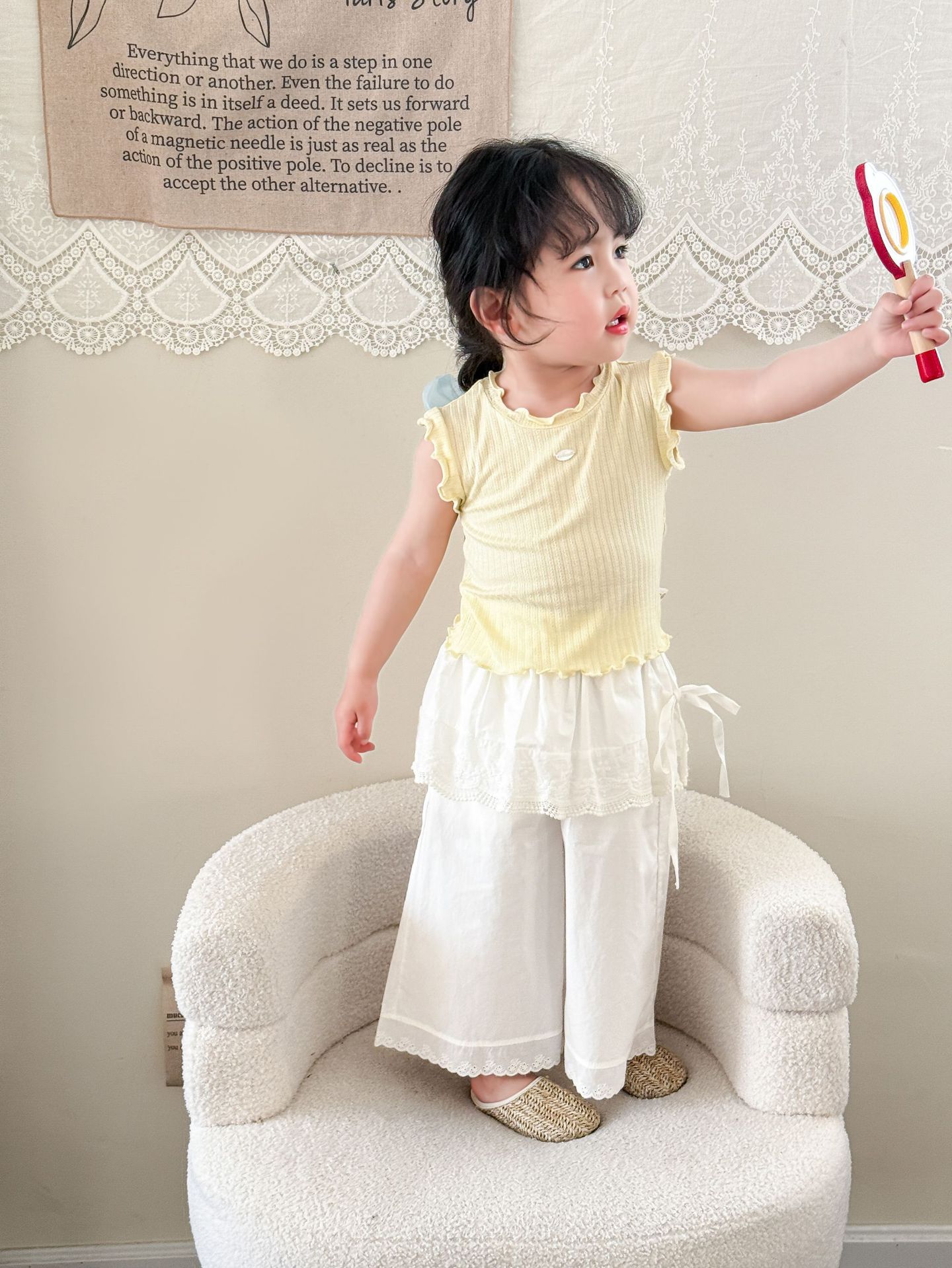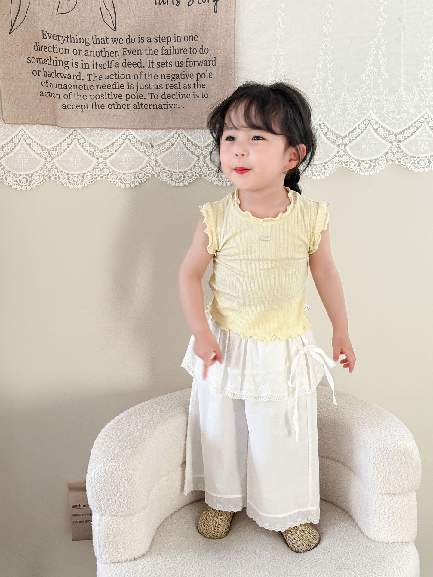 사탕 수수 배 아동복 여름 얇은 2025 새로운 어린이 귀 테두리 최고 아기 클래스 아기 옷스토어 가기