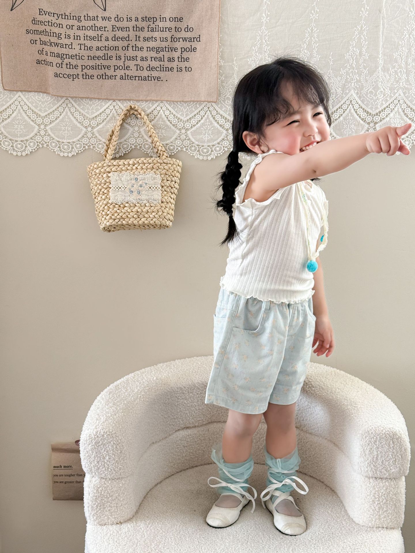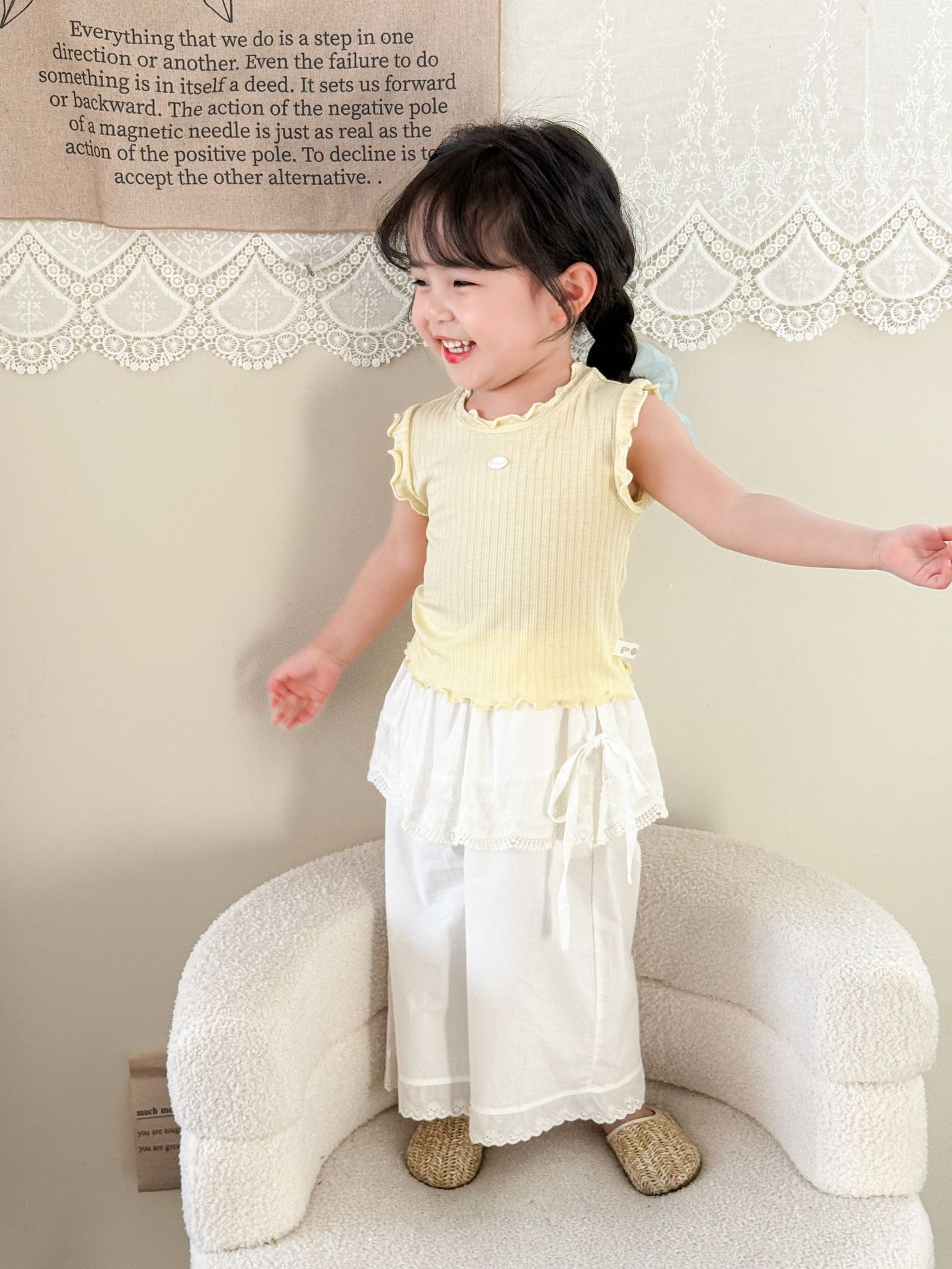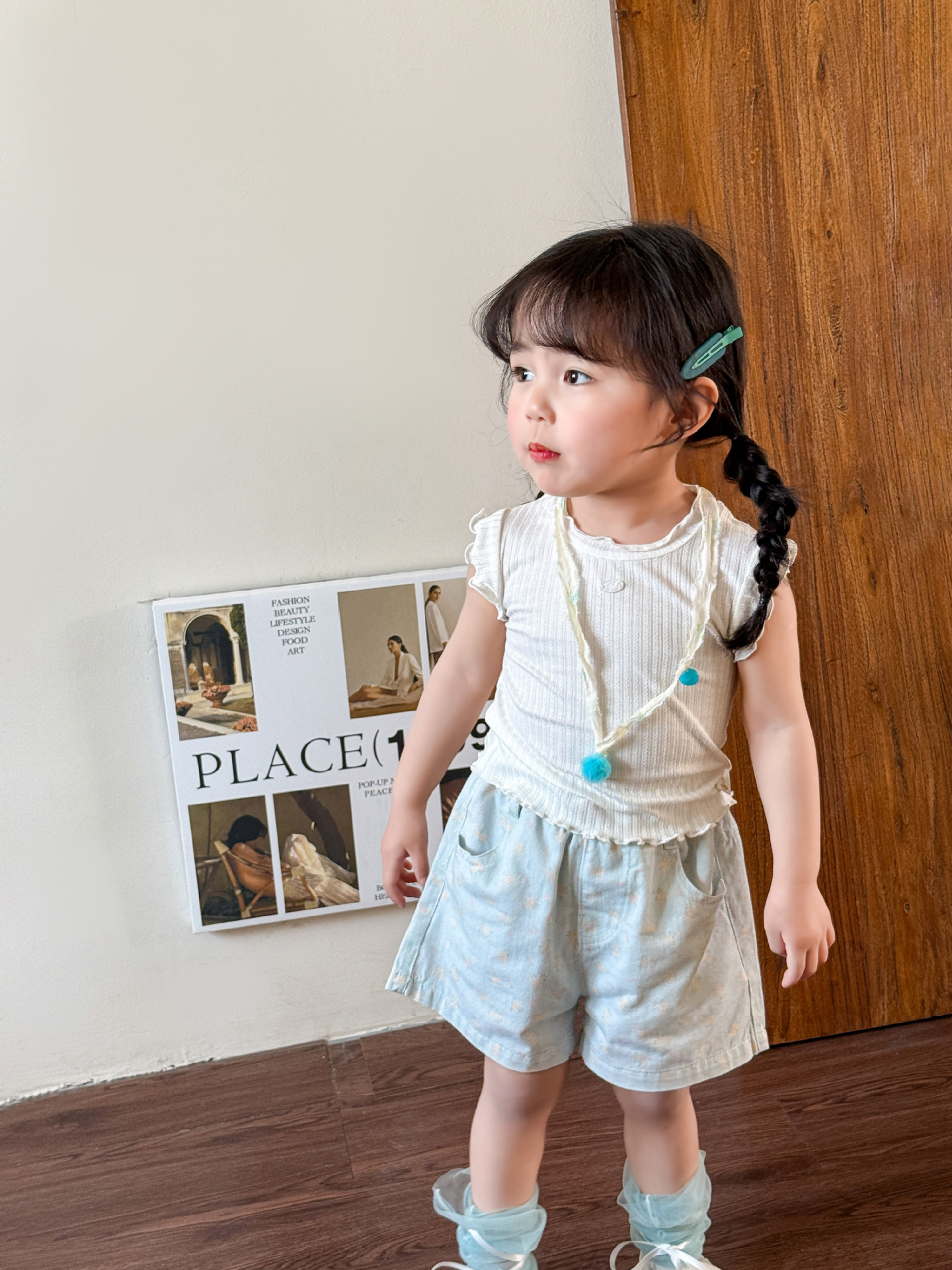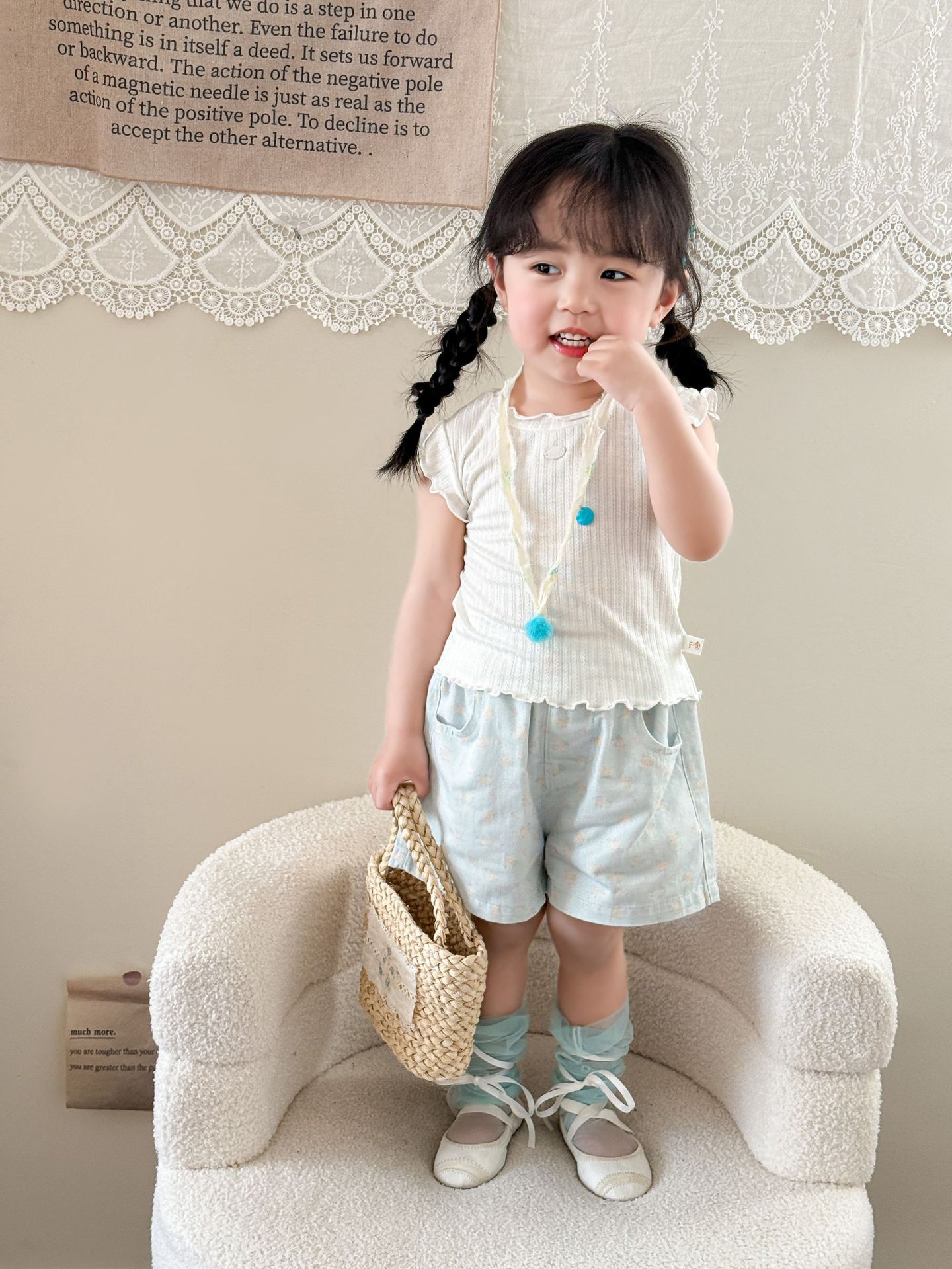 사탕 수수 배 아동복 여름 얇은 2025 새로운 어린이 귀 테두리 최고 아기 클래스 아기 옷스토어 가기
