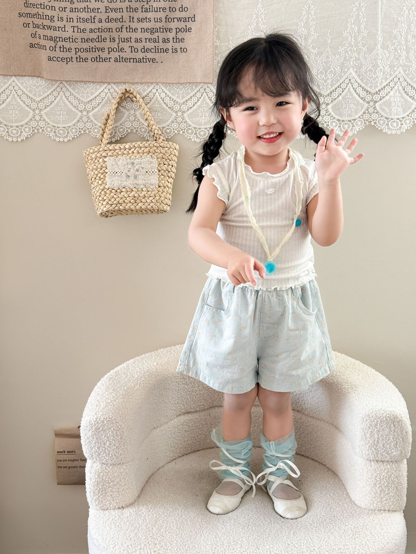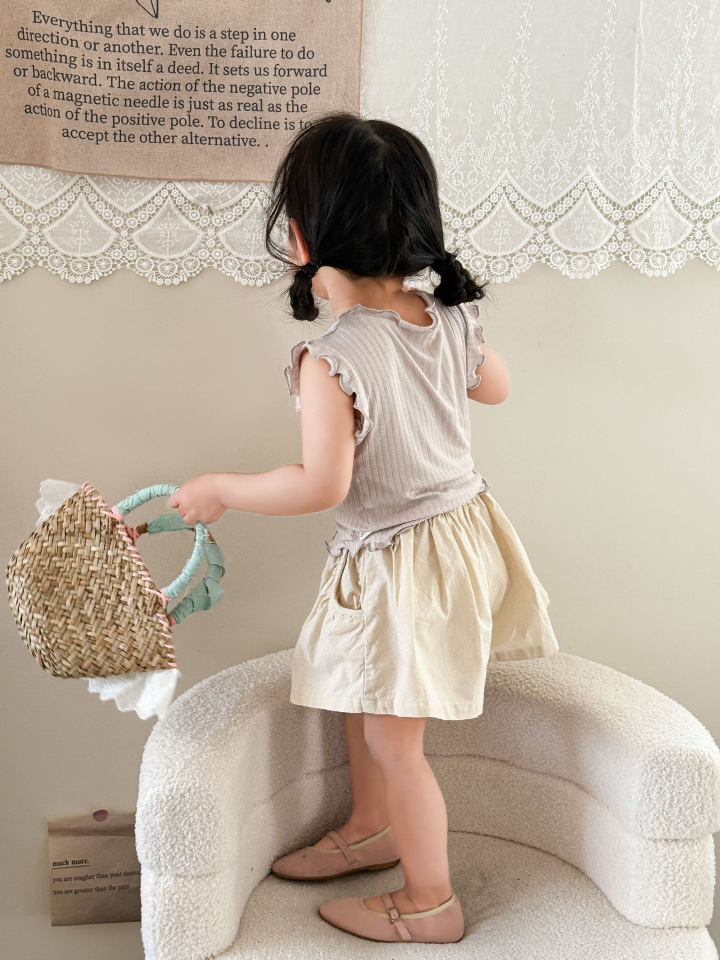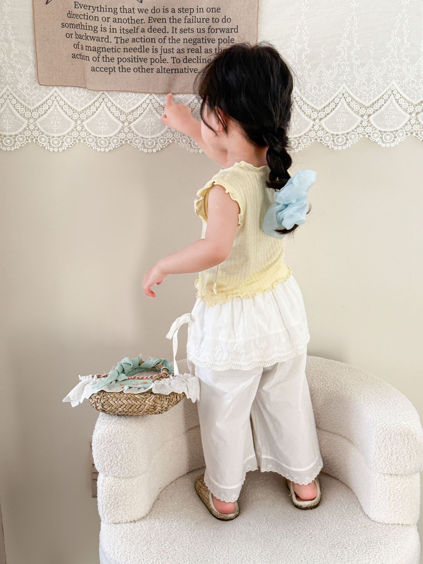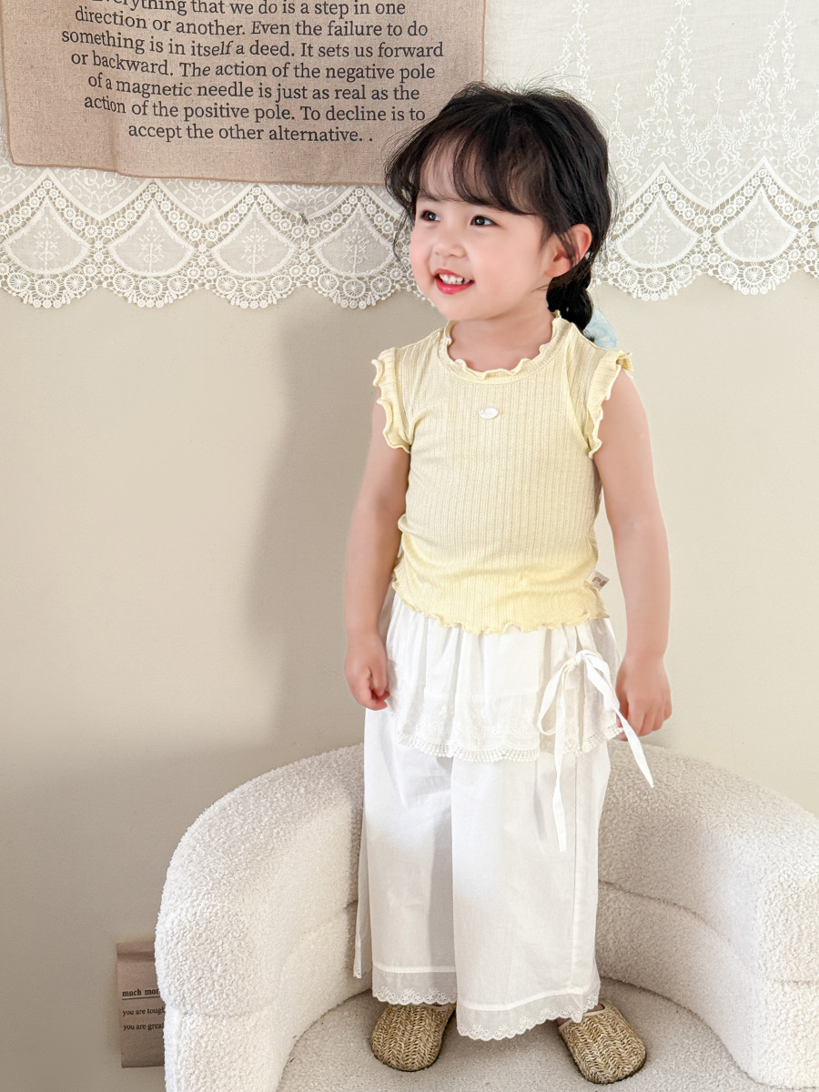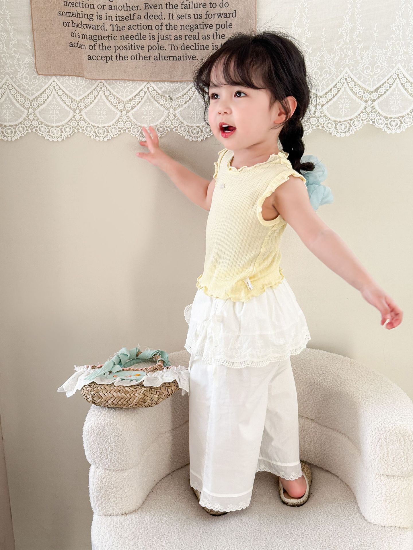 사탕 수수 배 아동복 여름 얇은 2025 새로운 어린이 귀 테두리 최고 아기 클래스 아기 옷스토어 가기