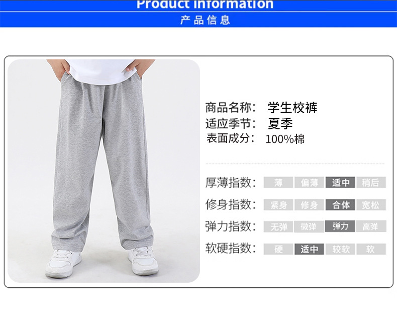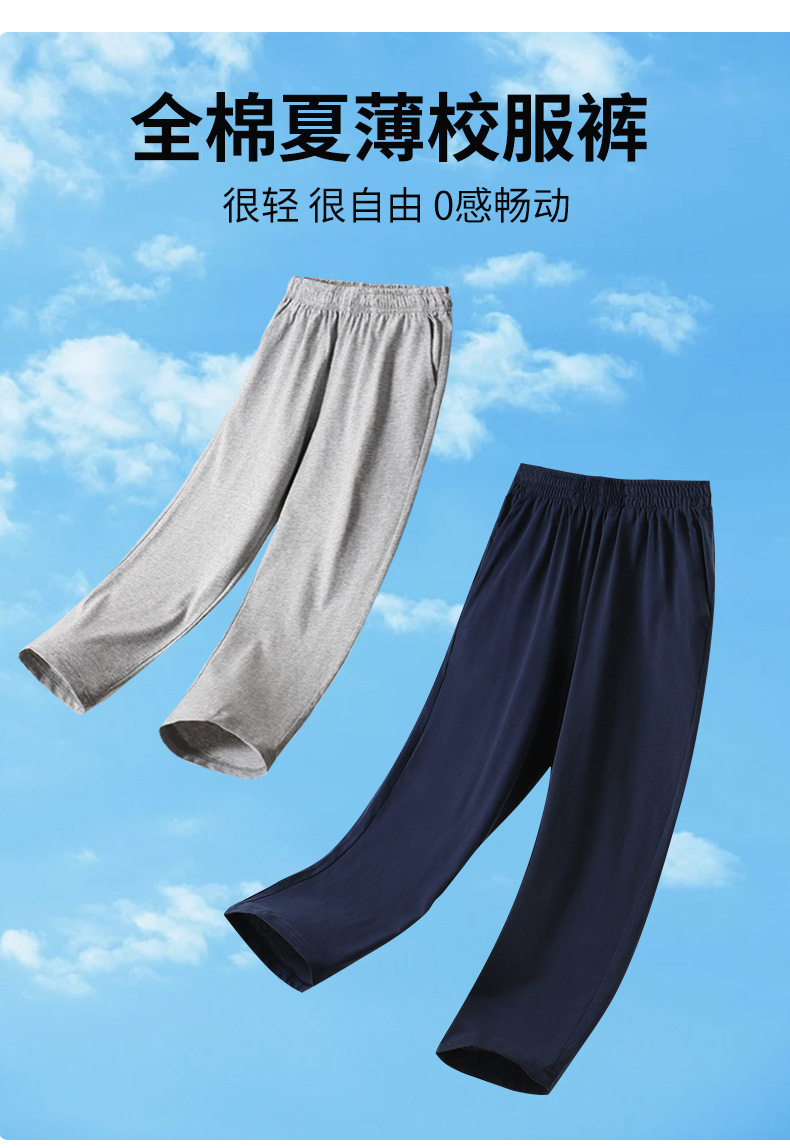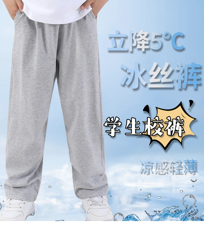 소년 소녀 어린이 학교 바지 여름 얇은 면 아이스 실크 학교 유니폼 바지 네이비 라이트 그레이 학교 바지 교복 바지