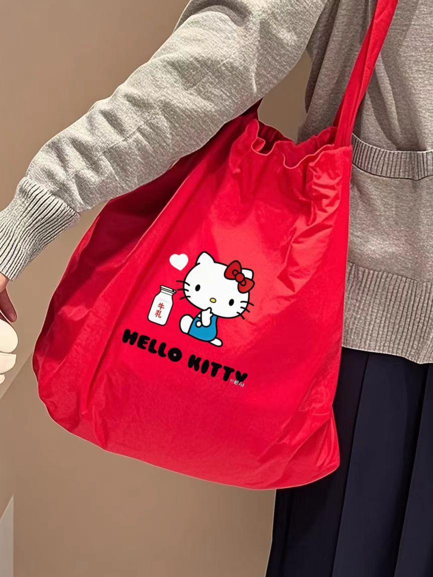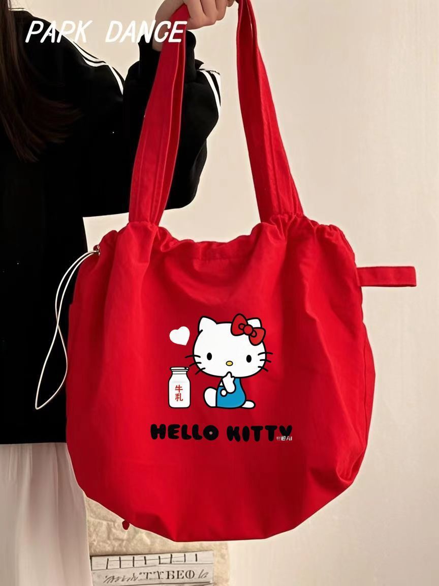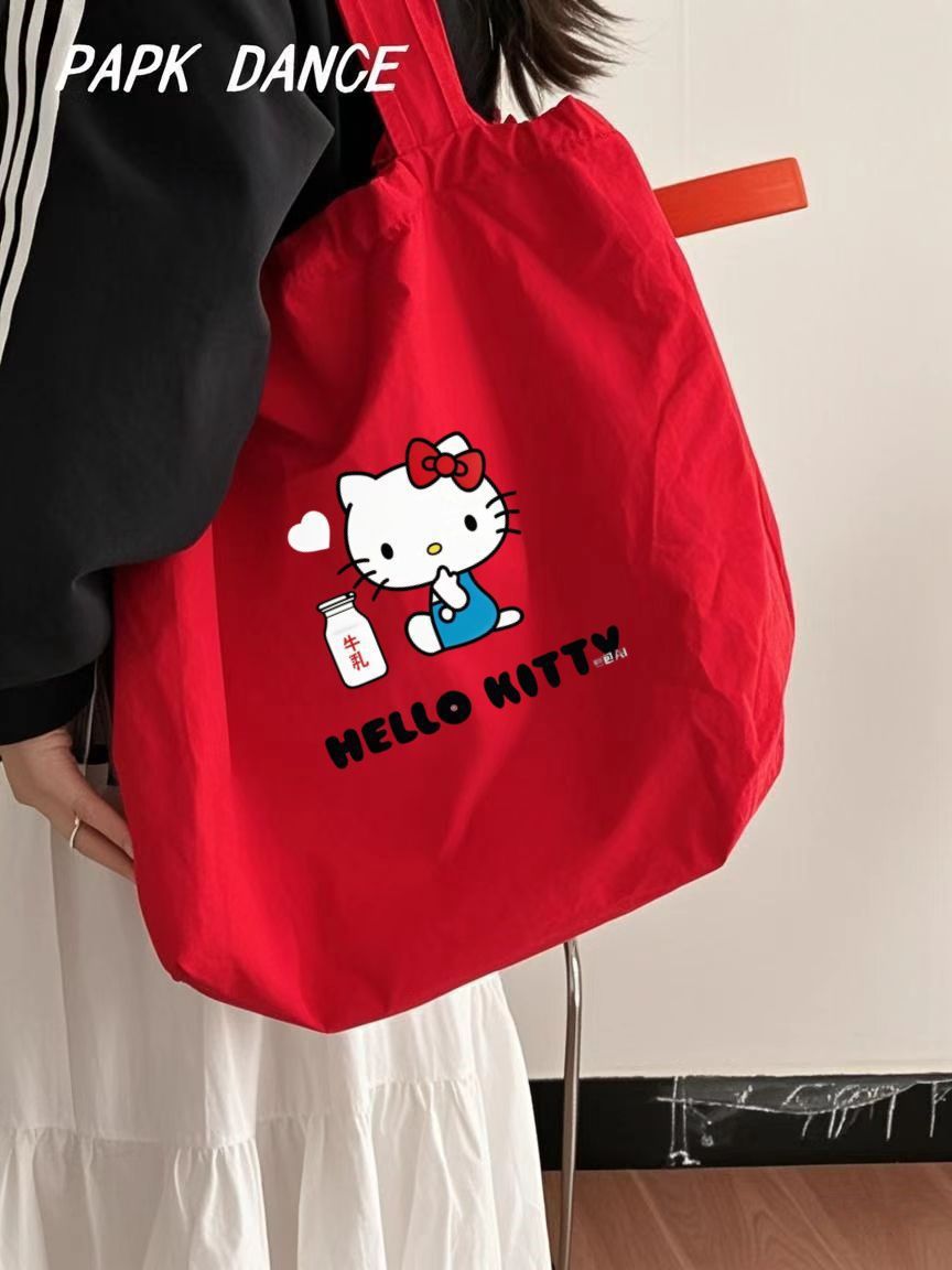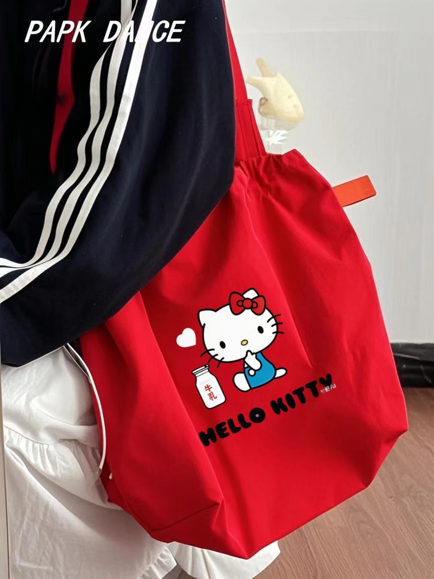 만화 빨간 캔버스 가방 게으른 스타일 일본식 귀여운 학생 가방 작업 핸드백 대용량 토트 백스토어 가기